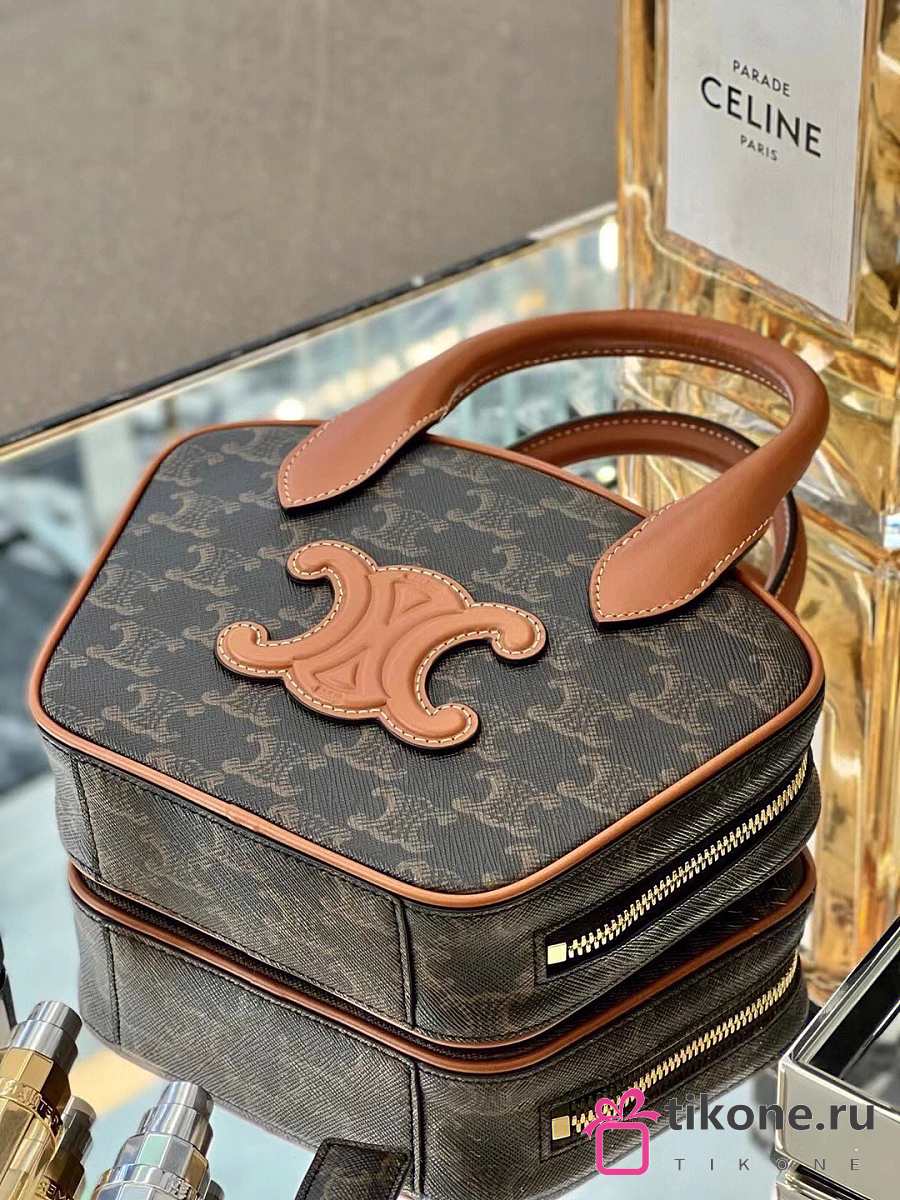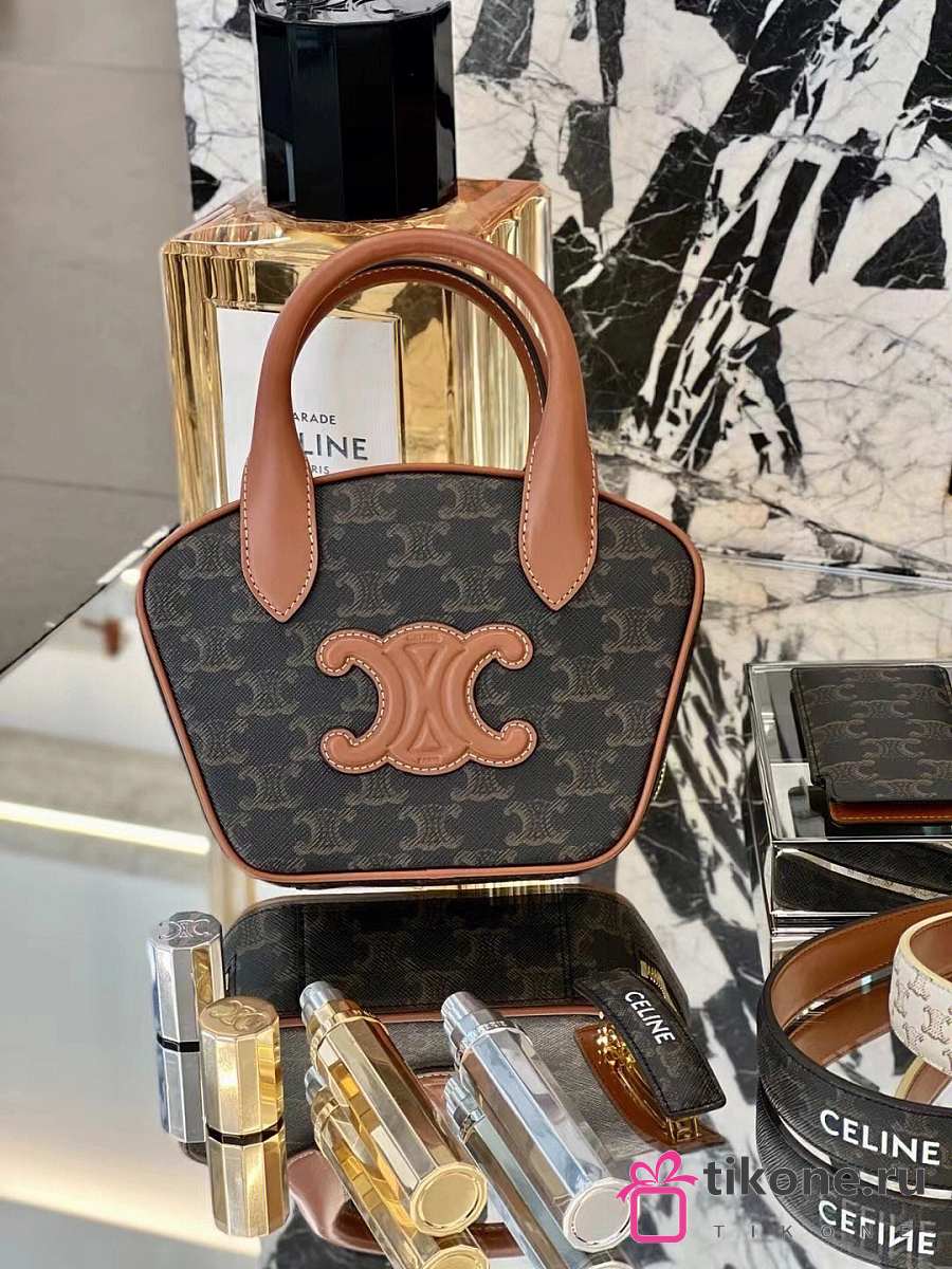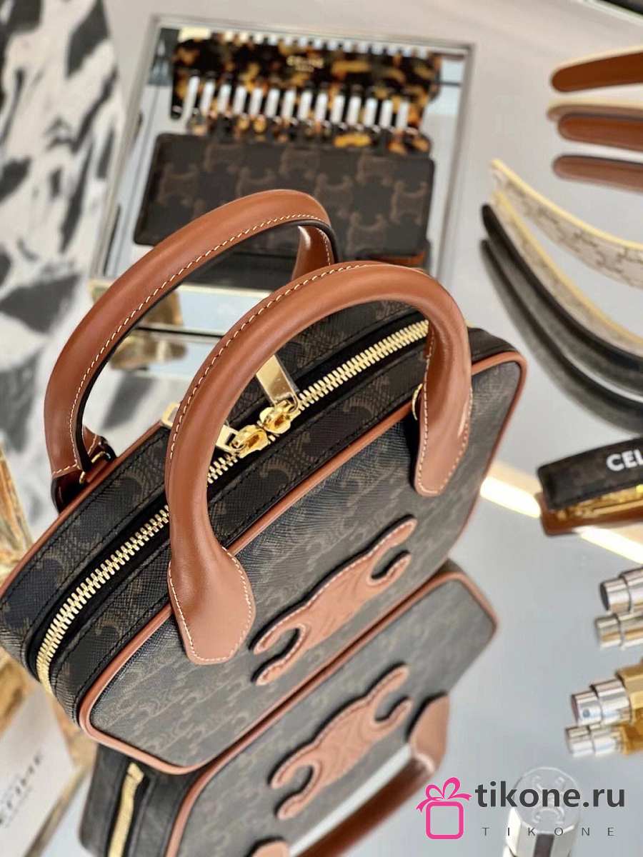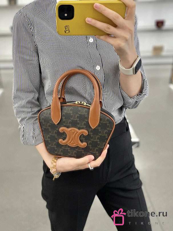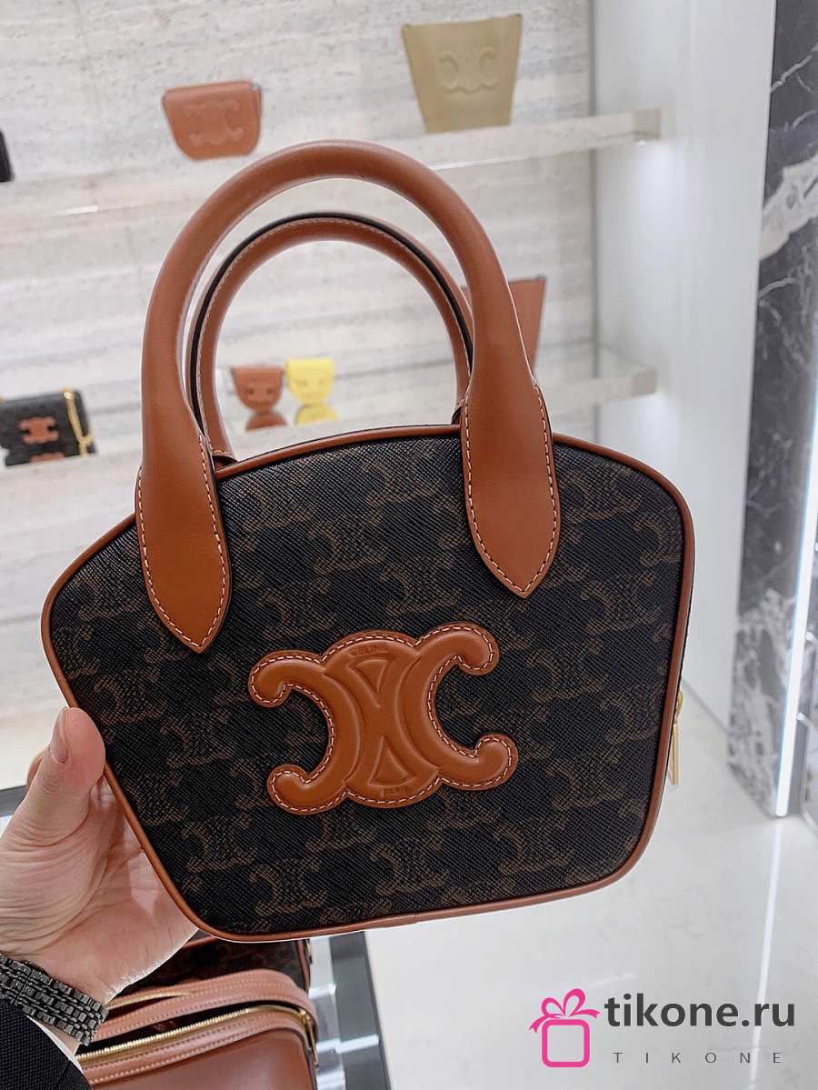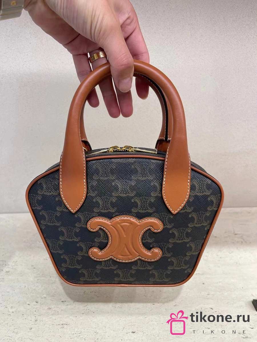 Celine Mini Bowling Bag In Triomphe Canvas And Calfskin Brown - 20x15x5cm