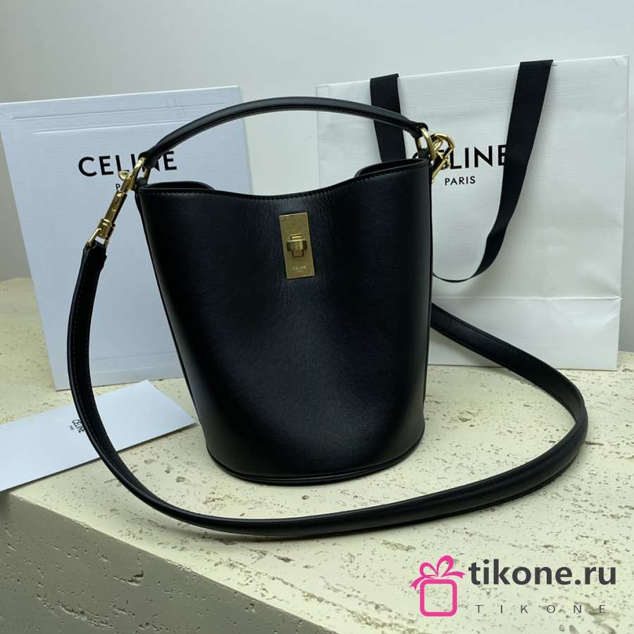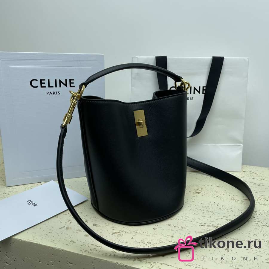 Celine Mini Bucket 16 In Smooth Calfskin Black - 16x18x16cm