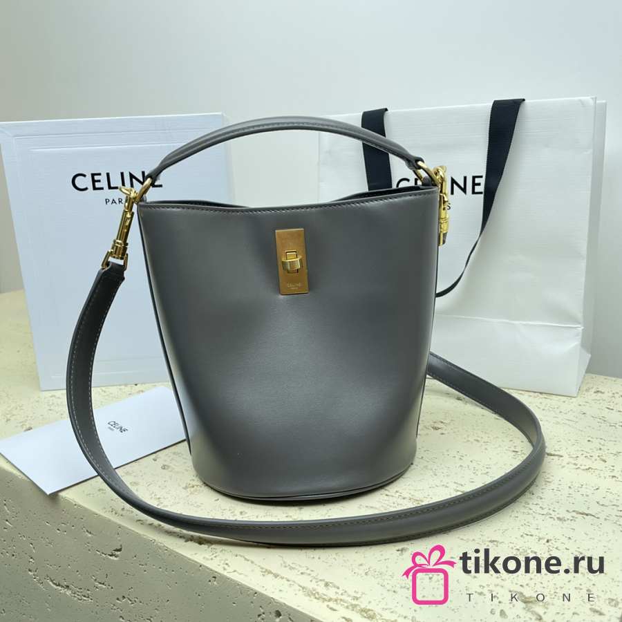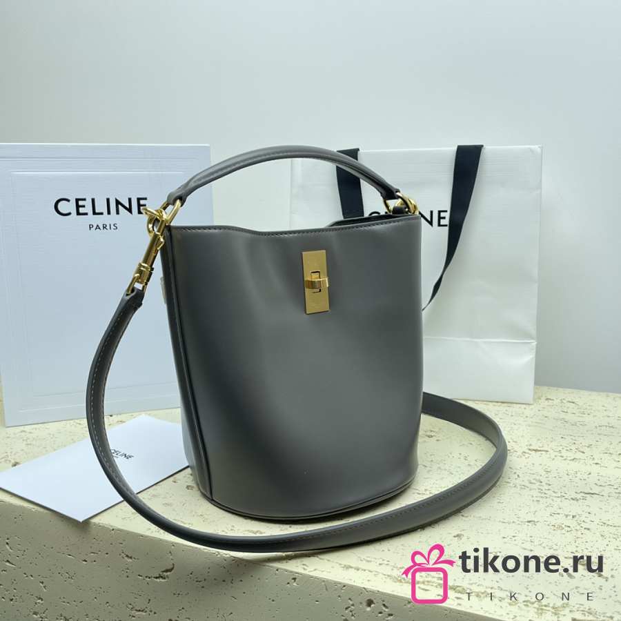 Celine Mini Bucket 16 In Smooth Calfskin Gray - 16x18x16cm