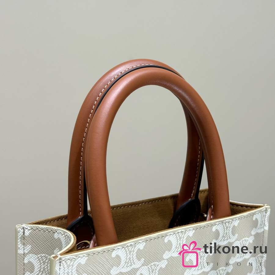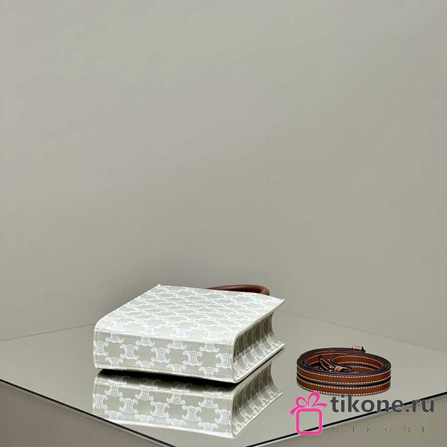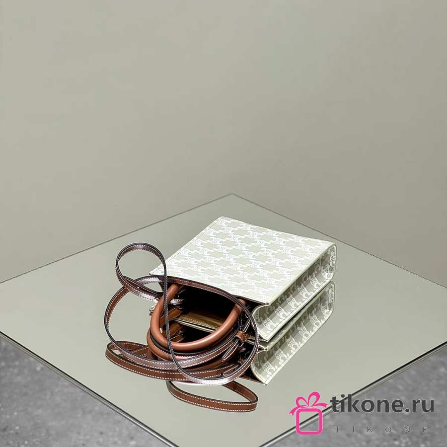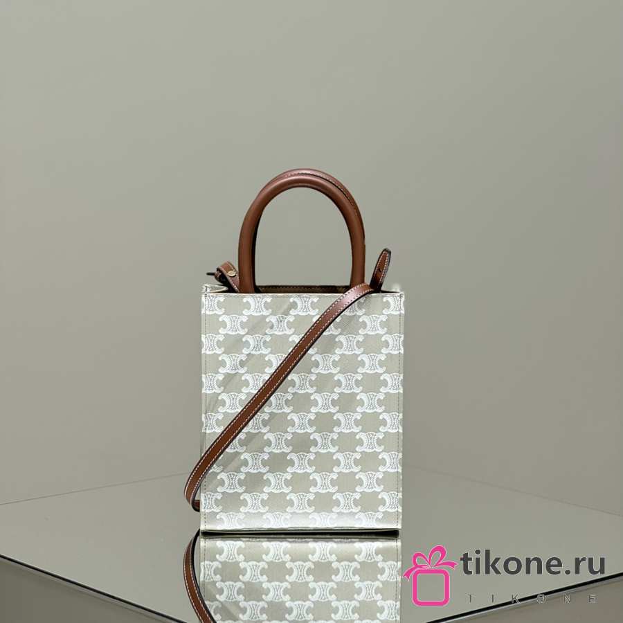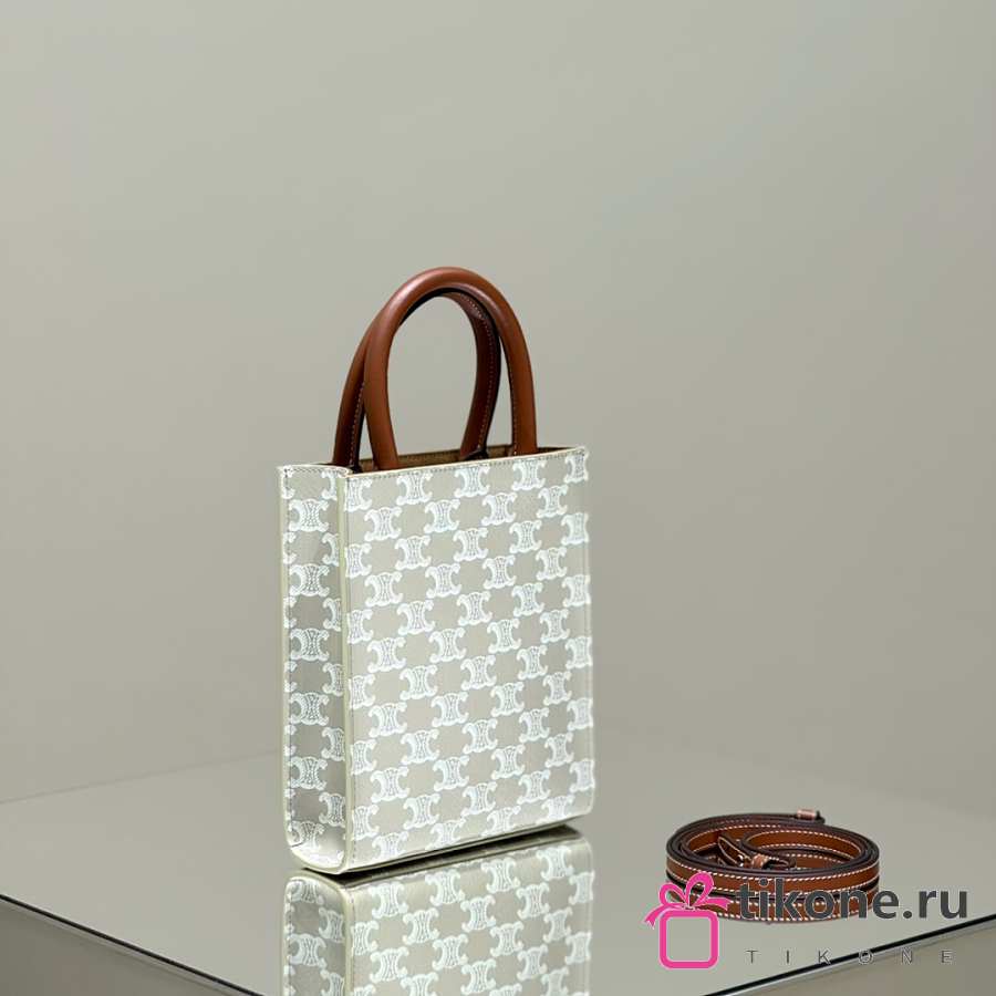 Celine Mini Vertical Tote Bag In Triomphe Canvas And Calfskin White - 20x17x6cm