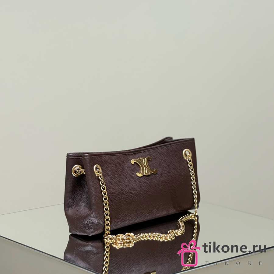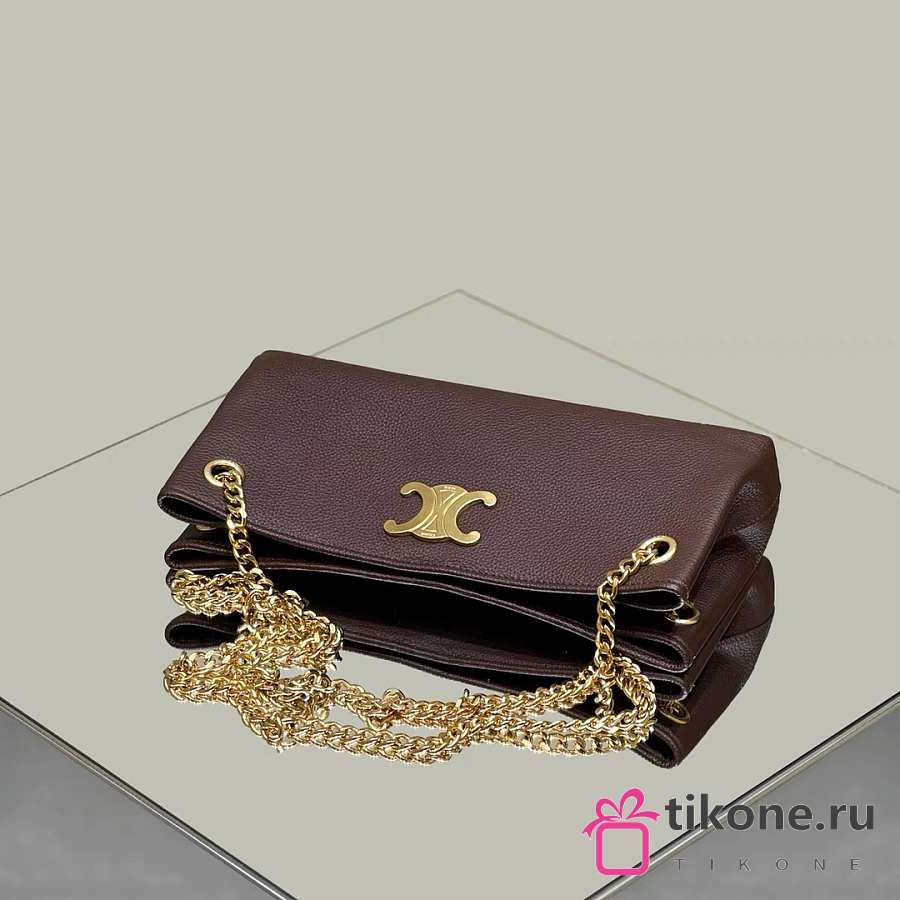 Celine Newspaper Chain Bag Triomphe Soft In Supple Calfskin Chestnut - 31x16x6cm