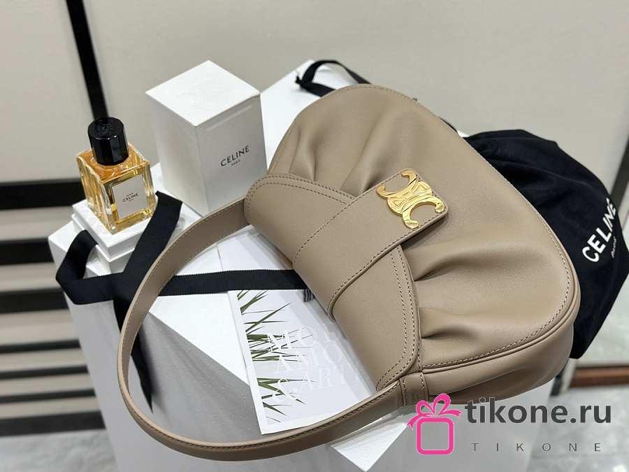 Celine Polly Bag Calfskin Beige Leather - 33x19x9cm