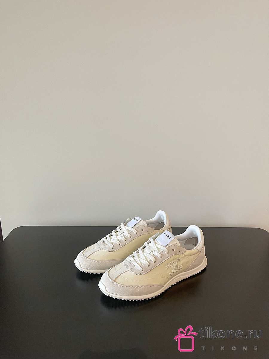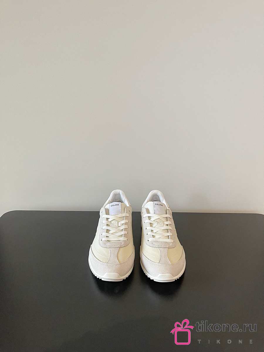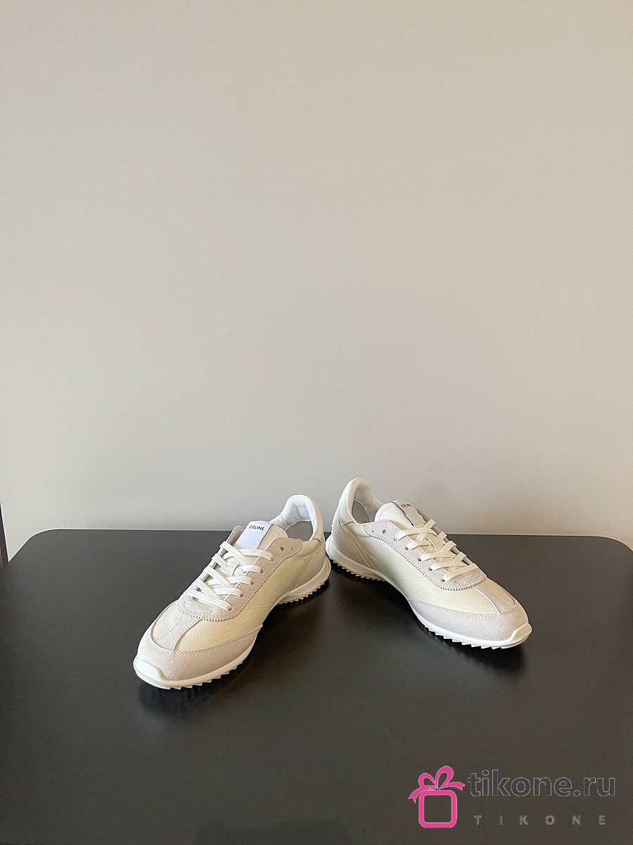 Celine Racer Low Top Sneaker In Nylon Suede Calfskin And Calfskin Vanilla