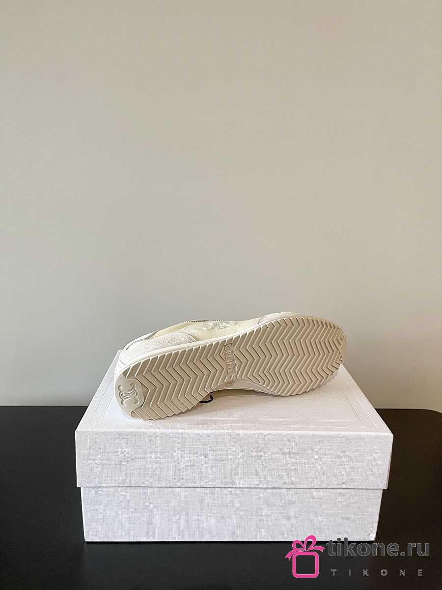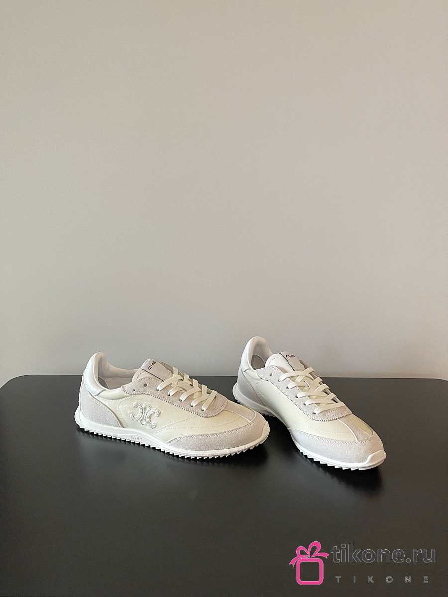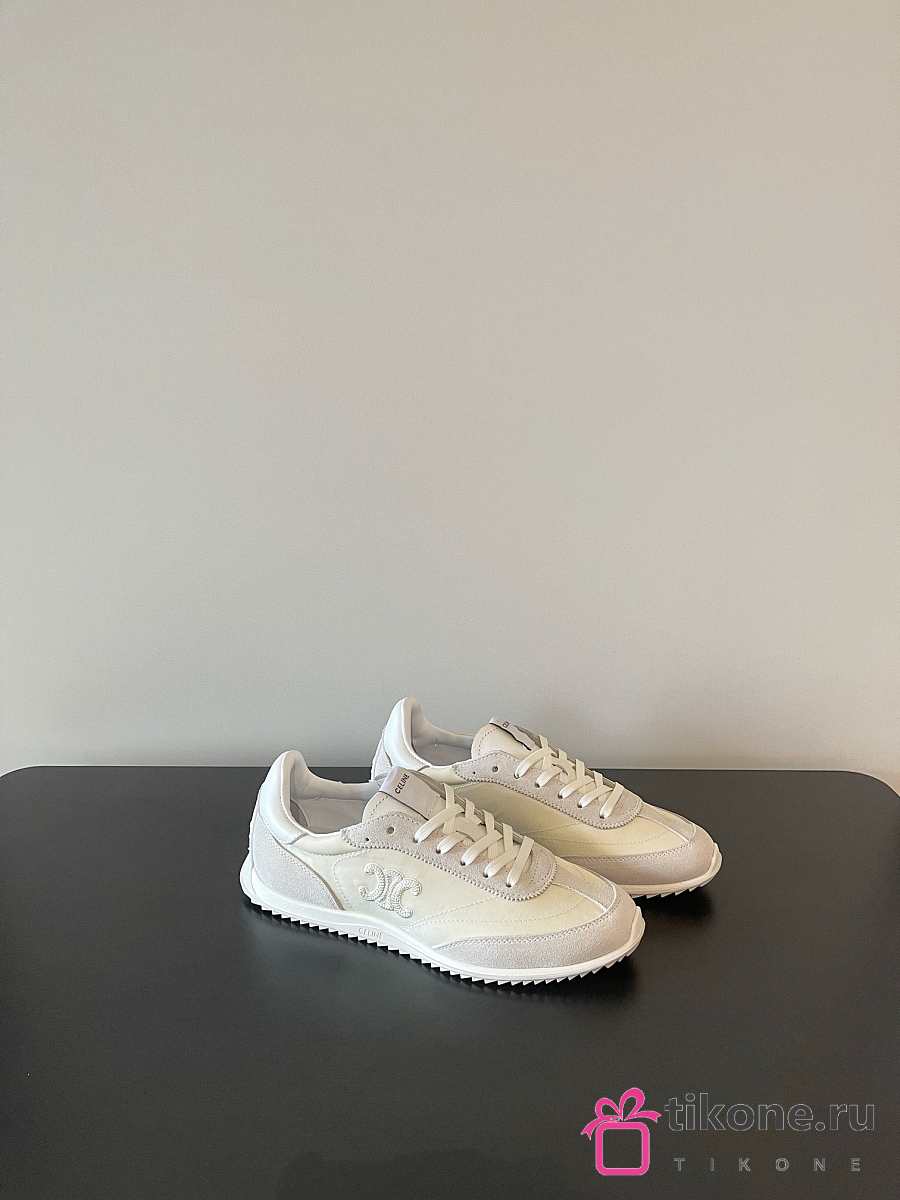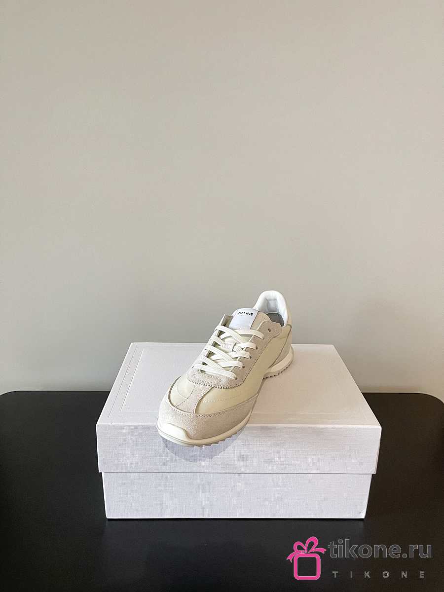 Celine Racer Low Top Sneaker In Nylon Suede Calfskin And Calfskin Vanilla