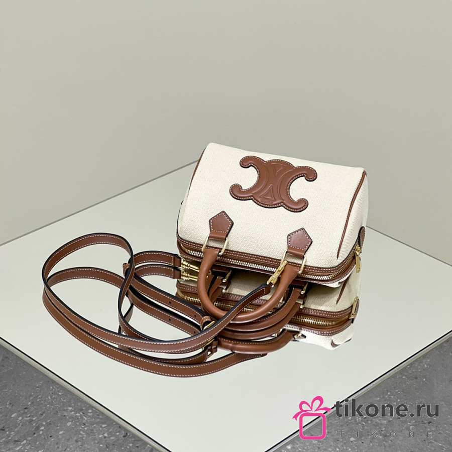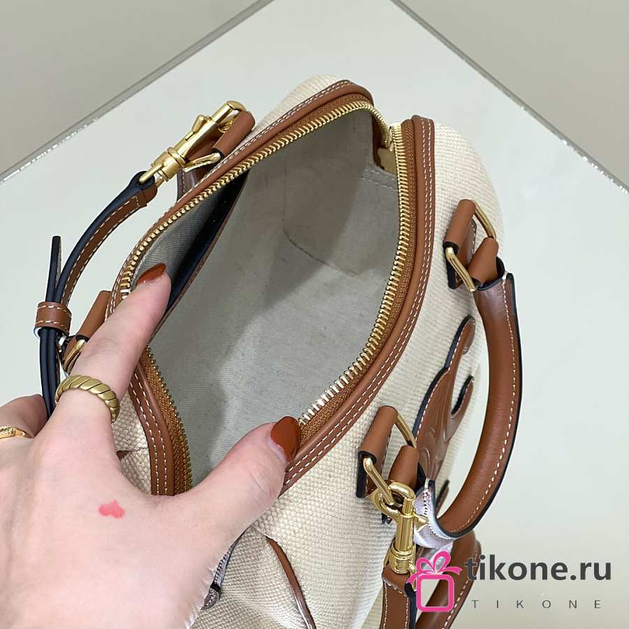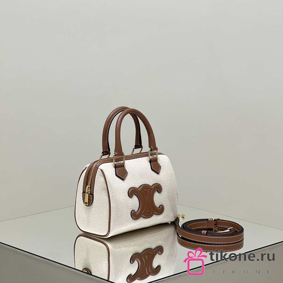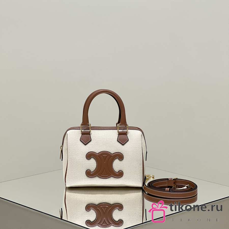 Celine Small Boston Cuir Triomphe In Textile And Calfskin With Gold Hardware Natural Tan - 19.5x14x7cm
