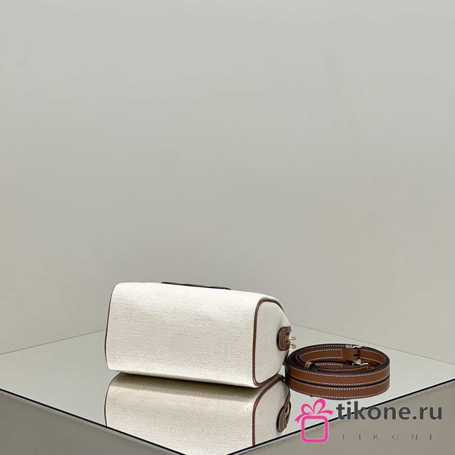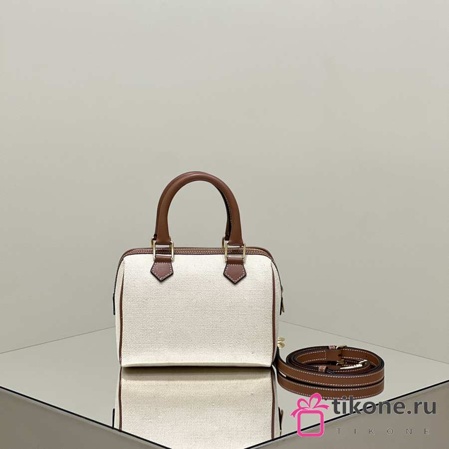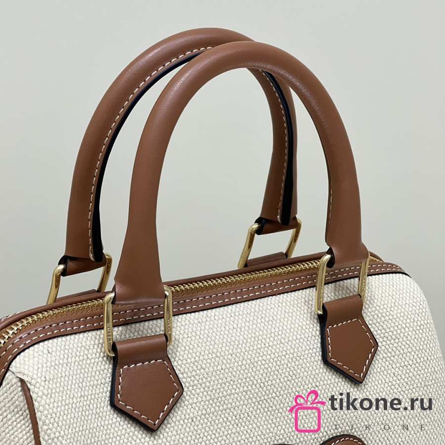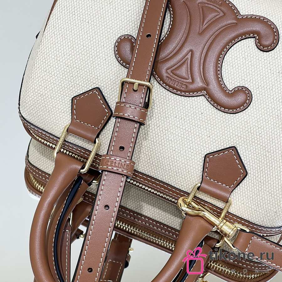 Celine Small Boston Cuir Triomphe In Textile And Calfskin With Gold Hardware Natural Tan - 19.5x14x7cm