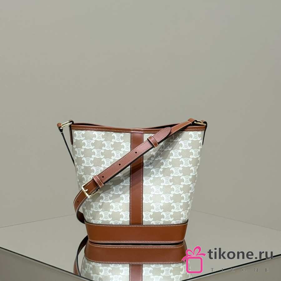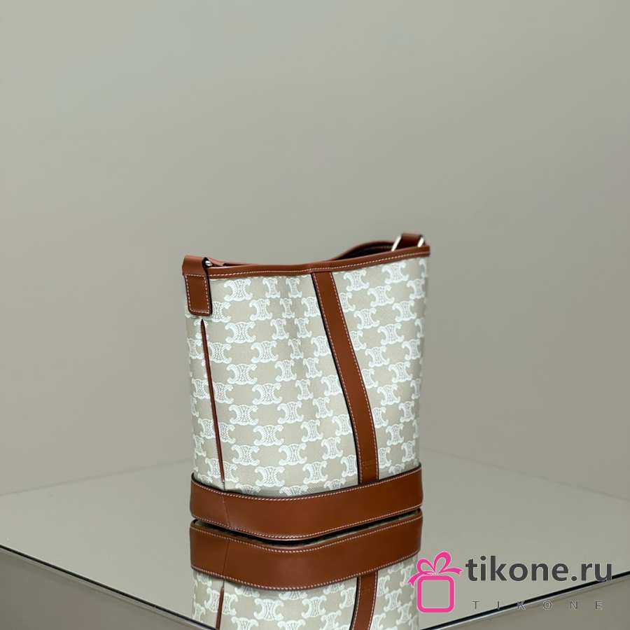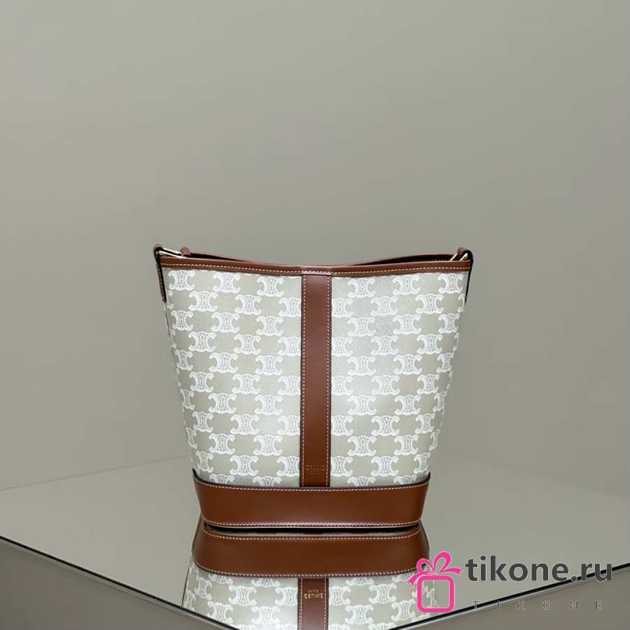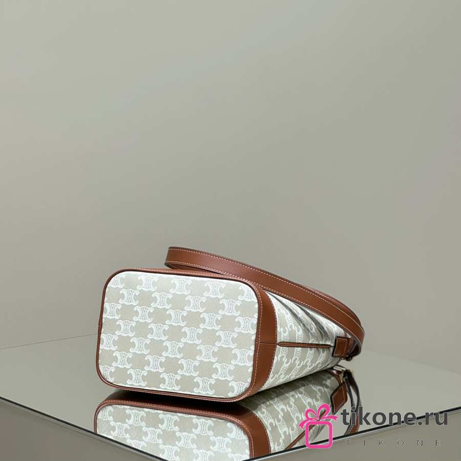 Celine Small Bucket In Triomphe Canvas And Calfskin White - 22x18x13cm
