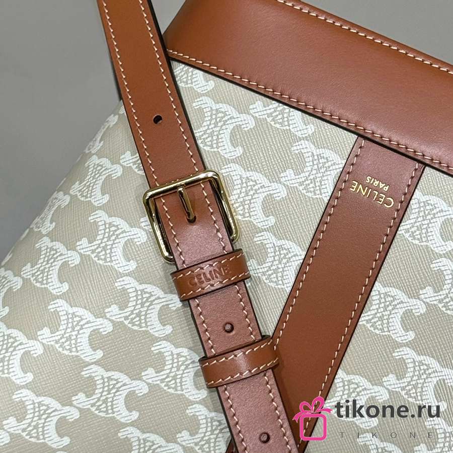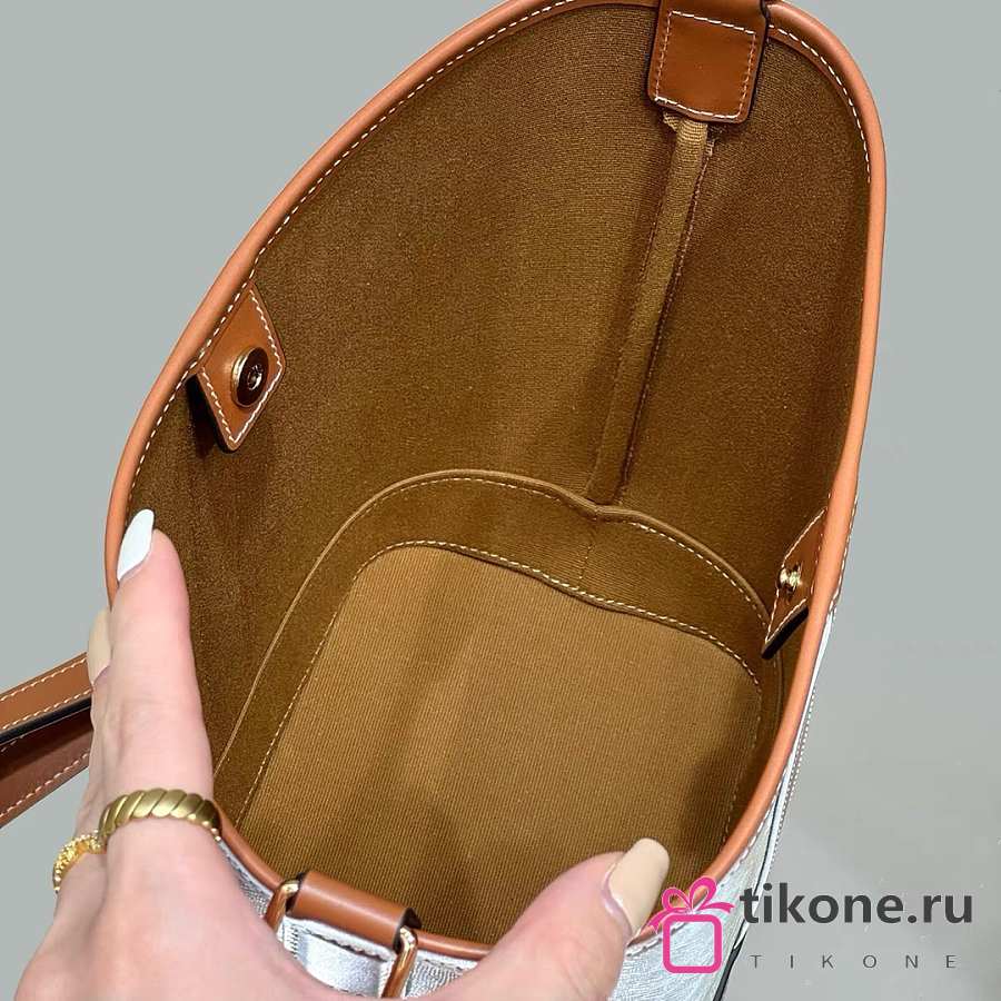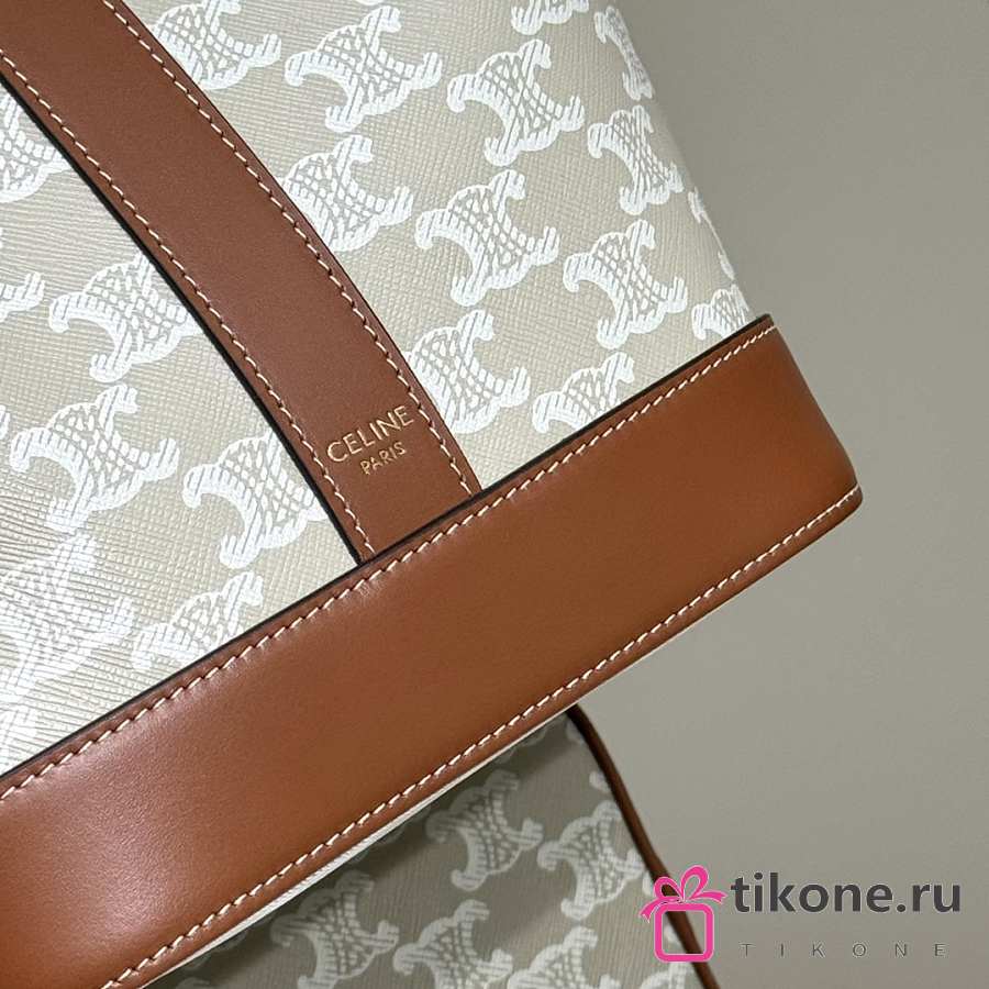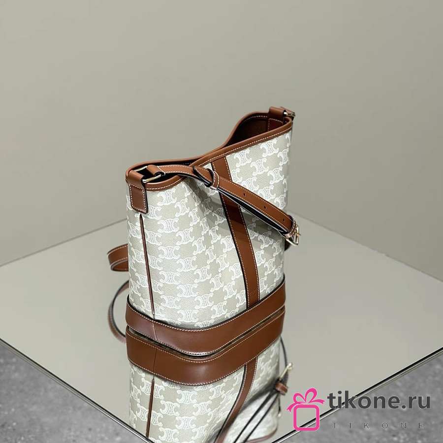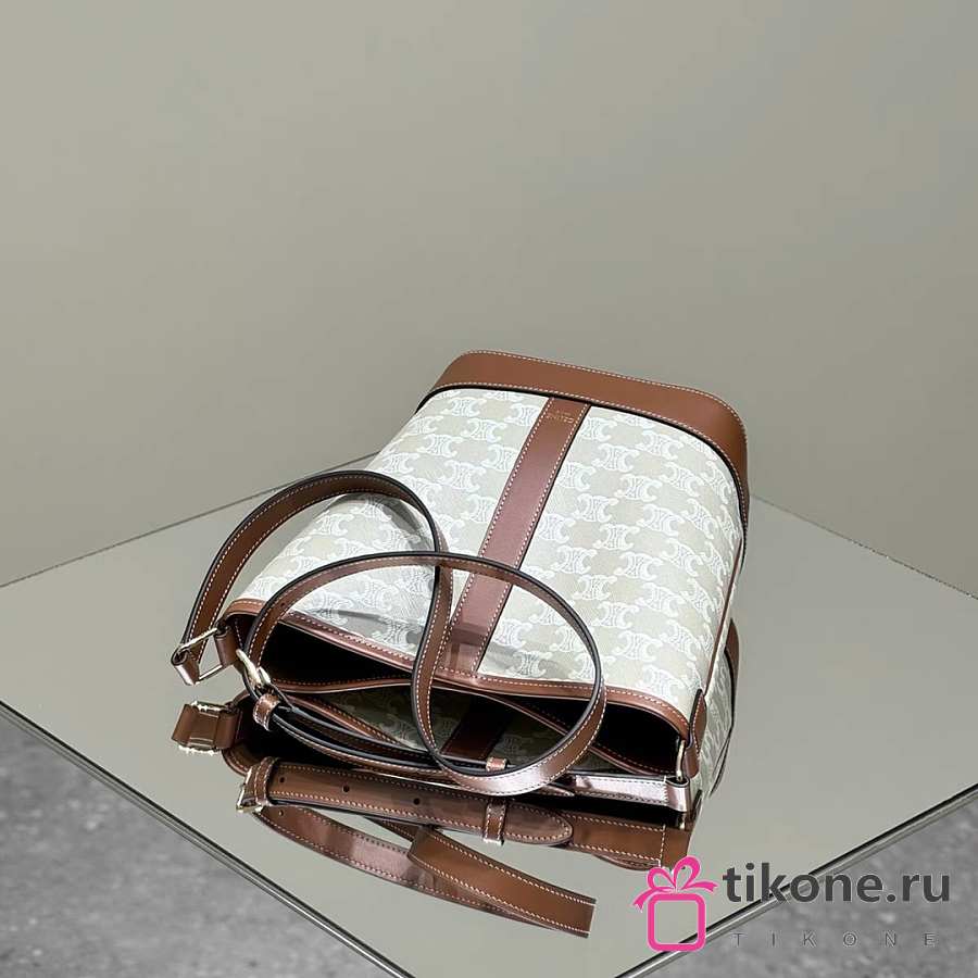 Celine Small Bucket In Triomphe Canvas And Calfskin White - 22x18x13cm