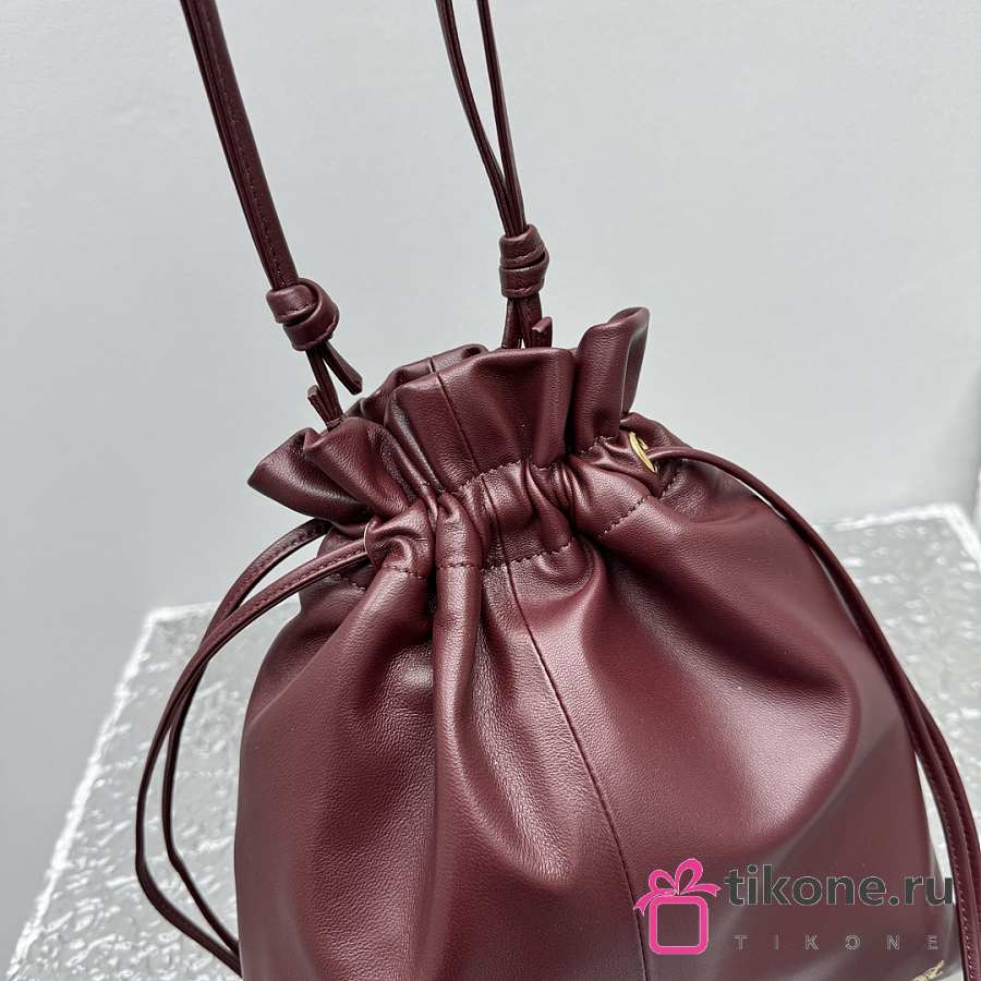 Prada Buckle Leather Bucket Bag With Jeweled Belt Brown 1BE085 - 26.5x29x18cm