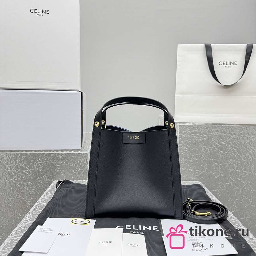 Celine Medium Ava Triomphe Bag In Smooth Calfskin Black - 24.5x17x9cm