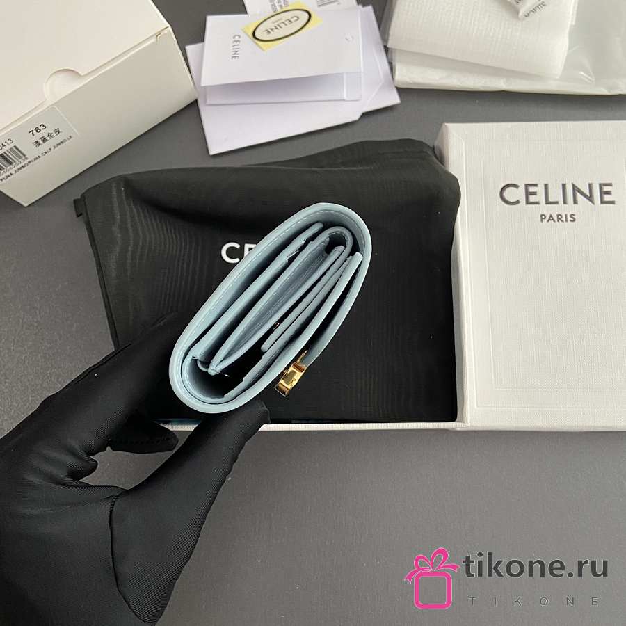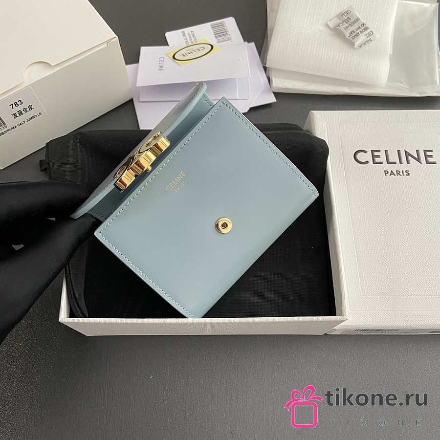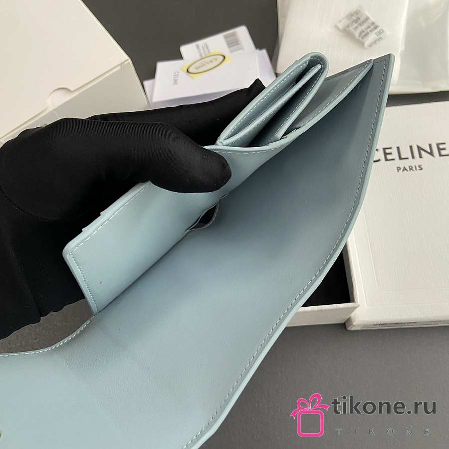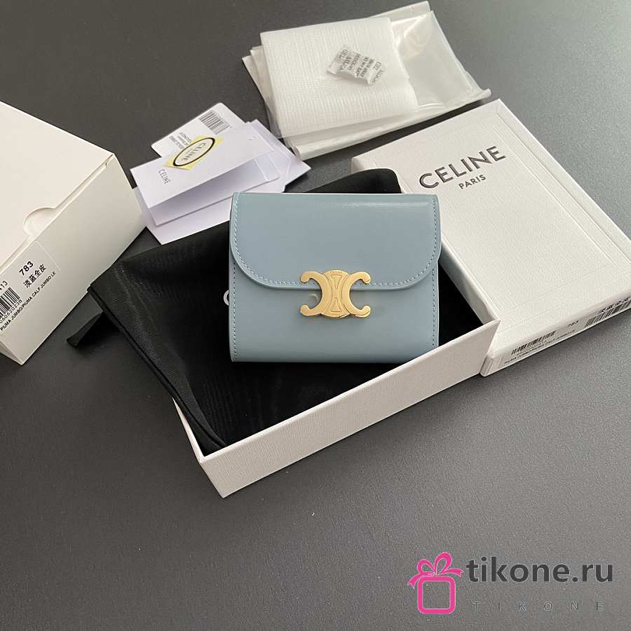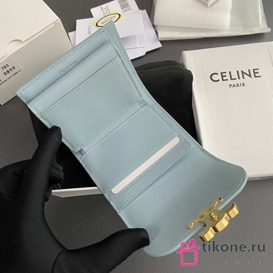 Celine Small Flap Wallet Triomphe In Shiny Calfskin Blue - 10.5x8.5x4cm