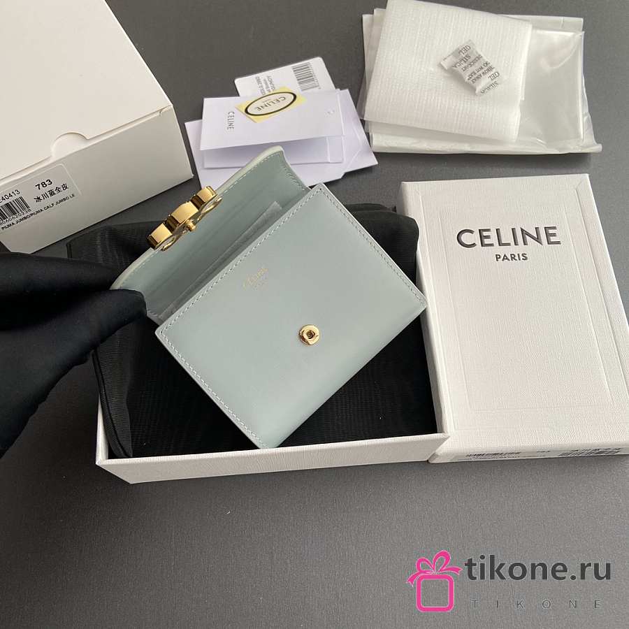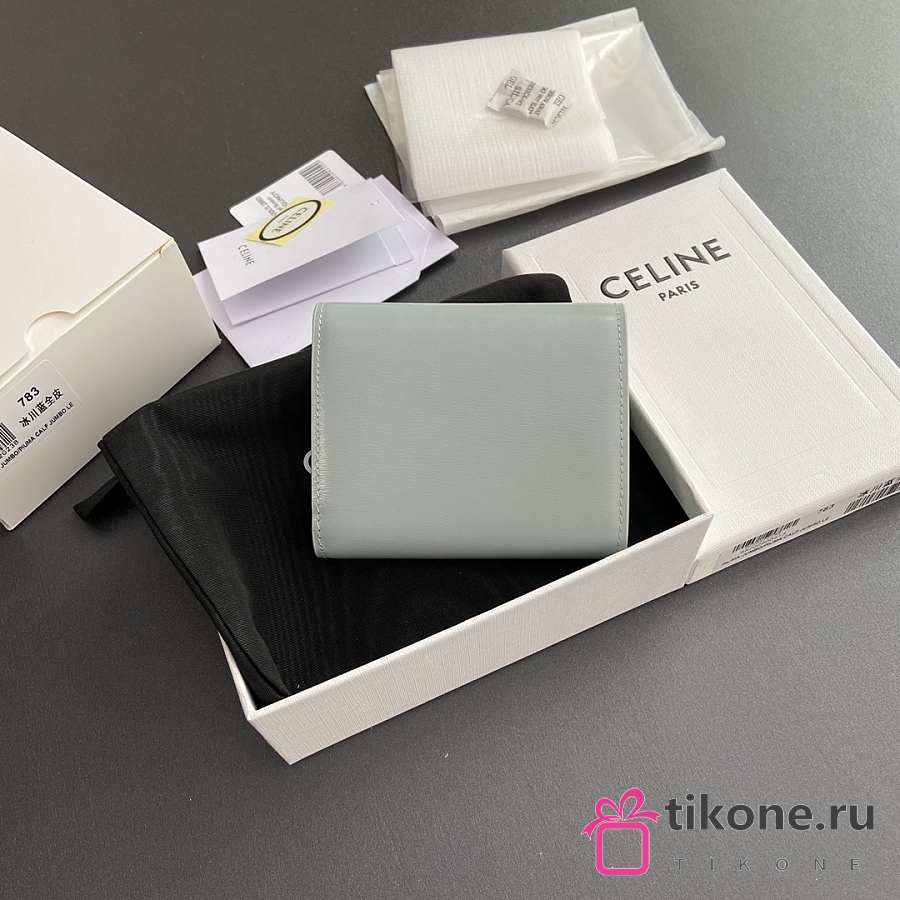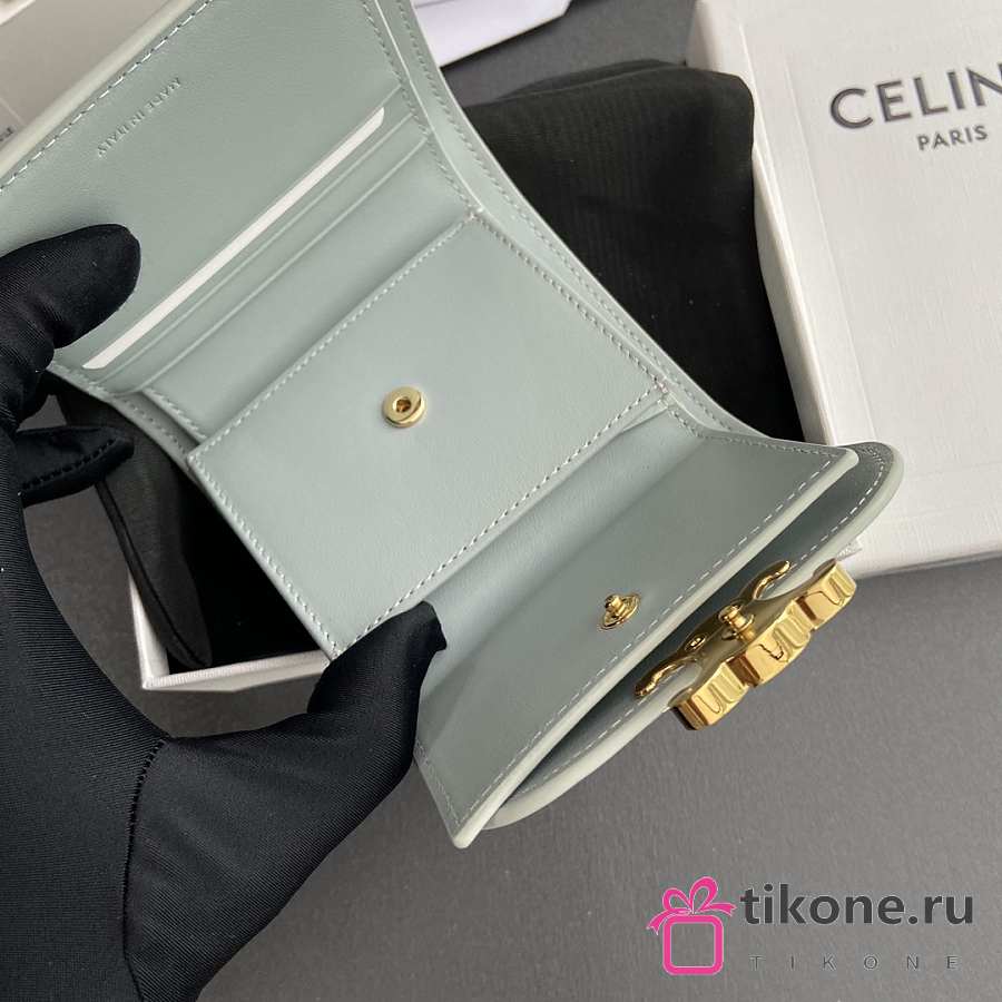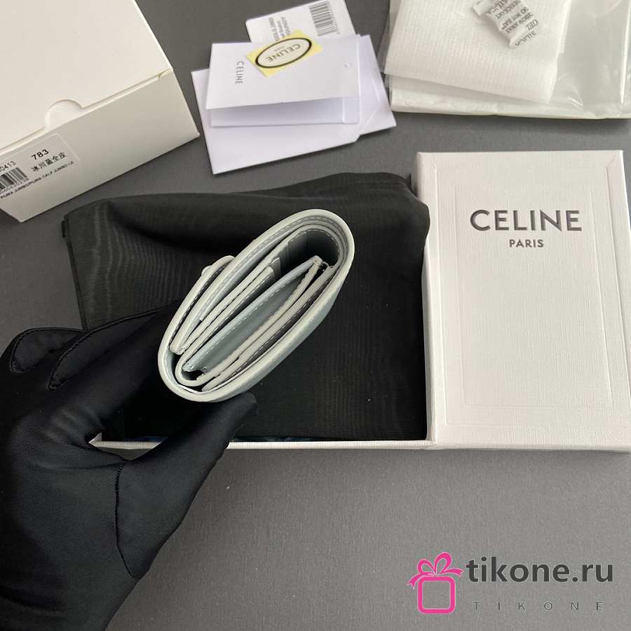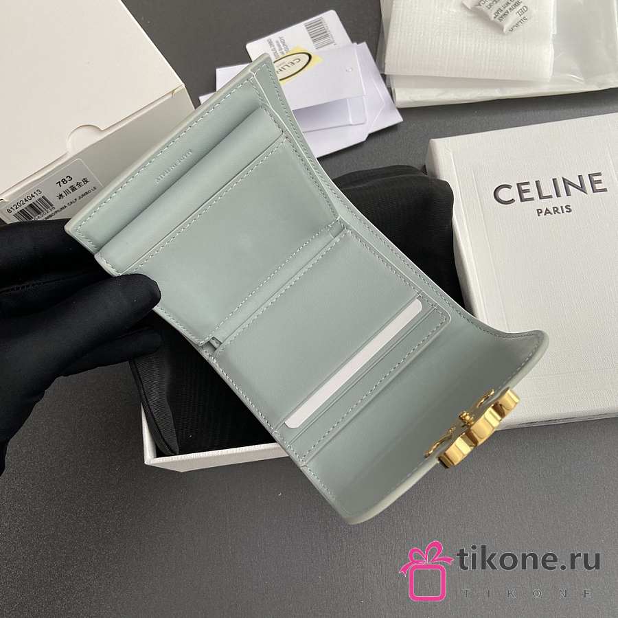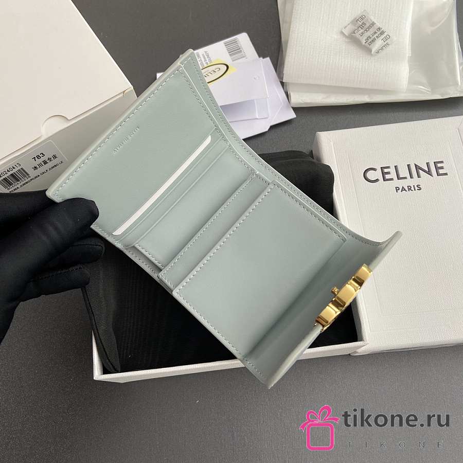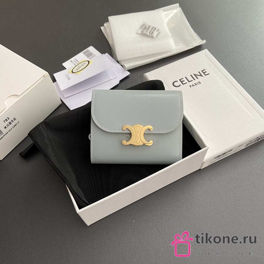 Celine Small Flap Wallet Triomphe In Shiny Calfskin Light Blue - 10.5x8.5x4cm
