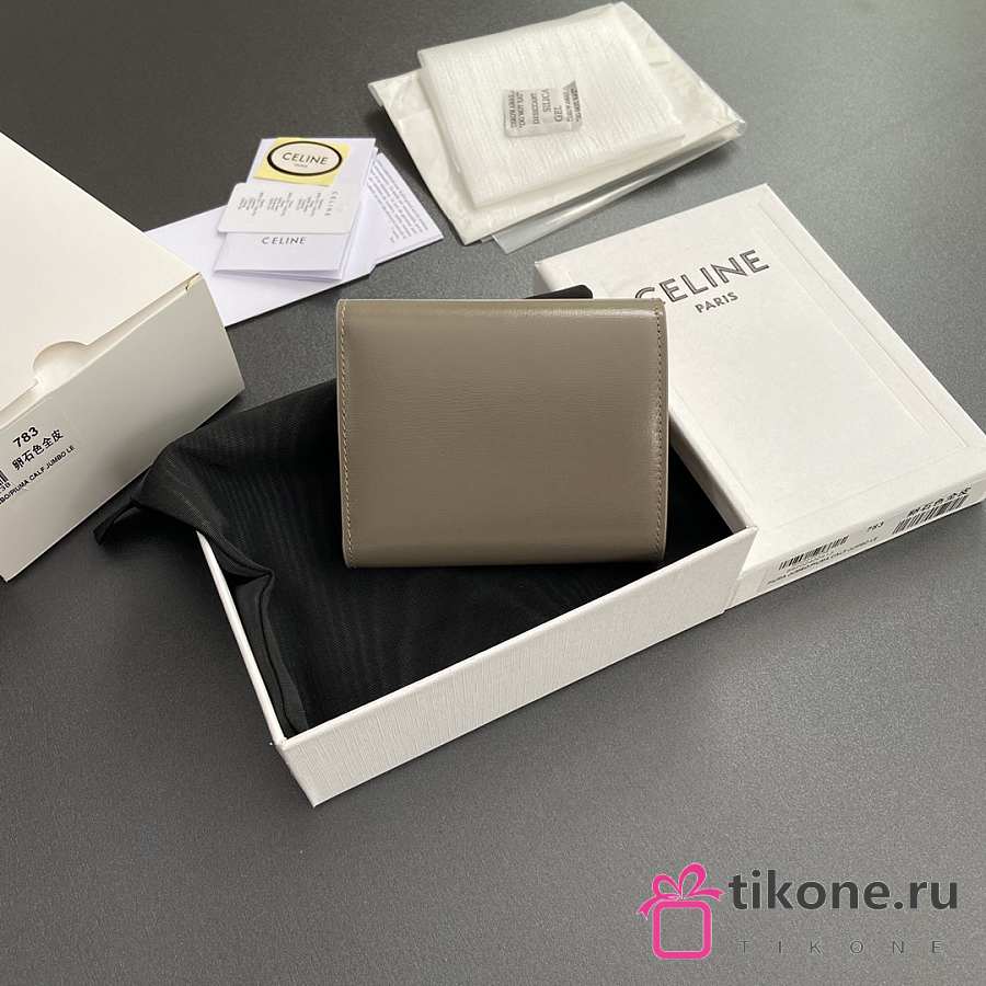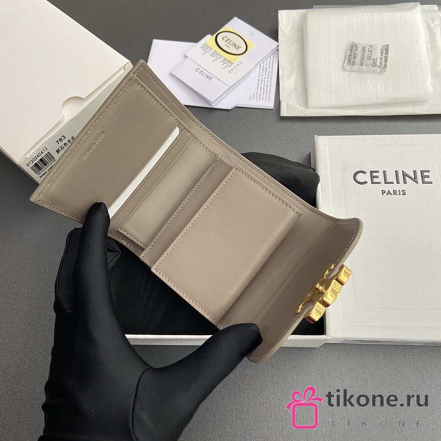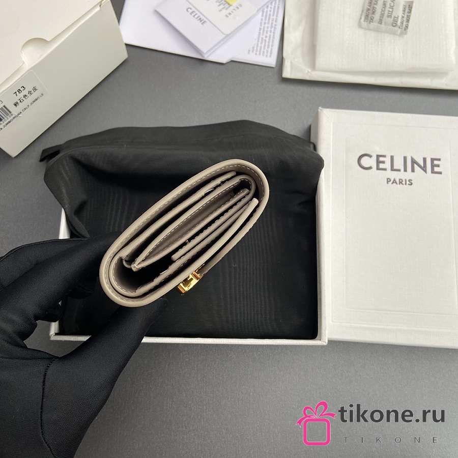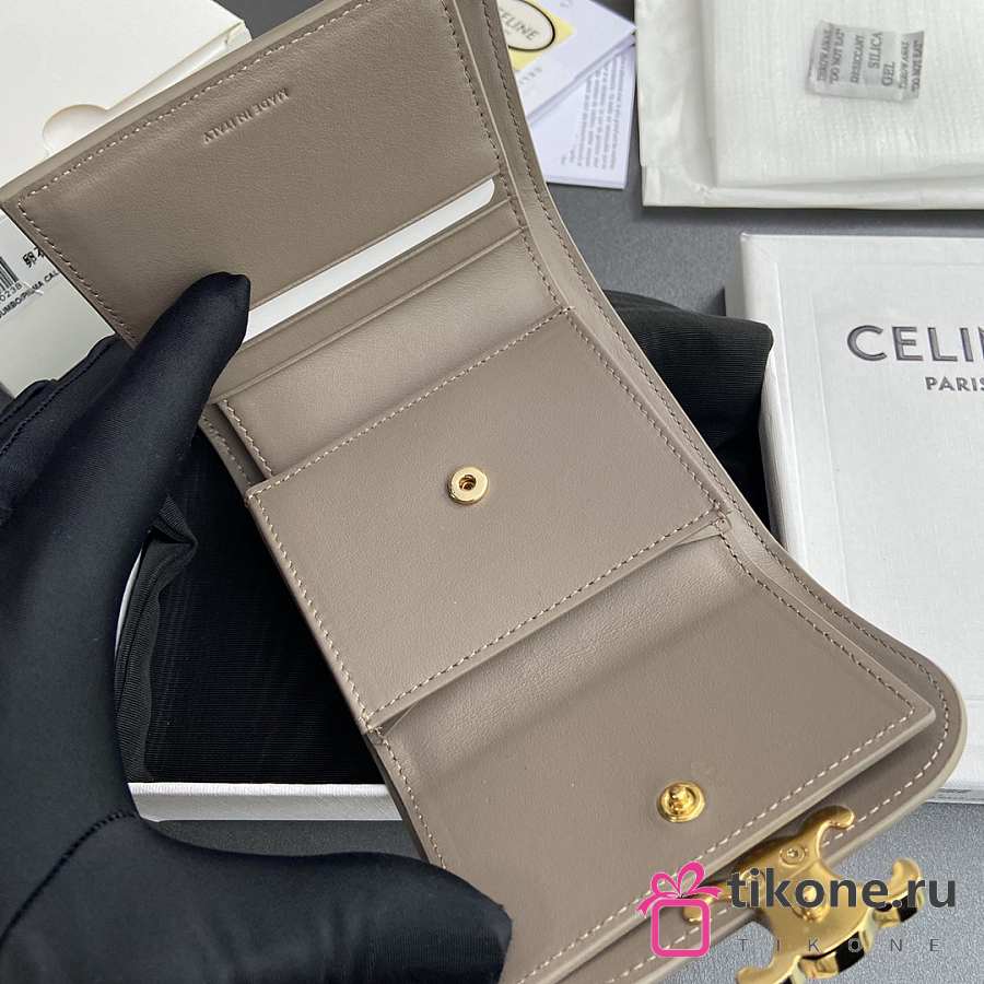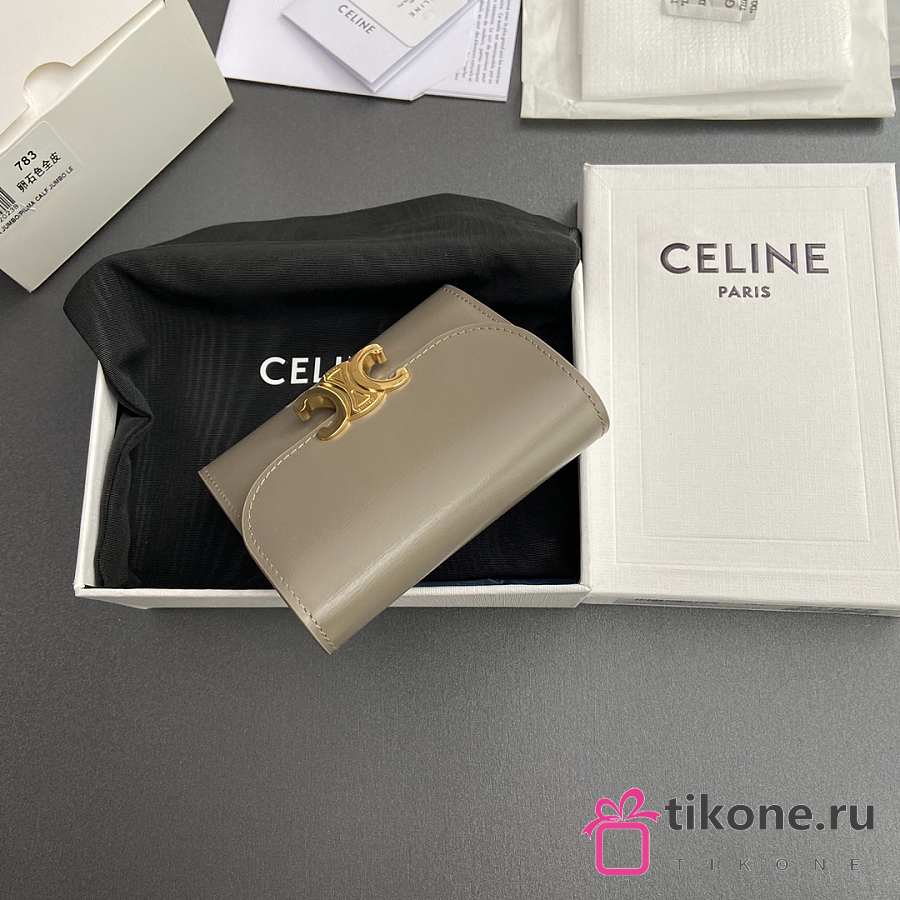 Celine Small Flap Wallet Triomphe In Shiny Calfskin Pebble - 10.5x8.5x4cm
