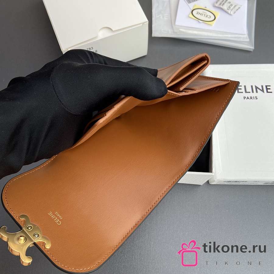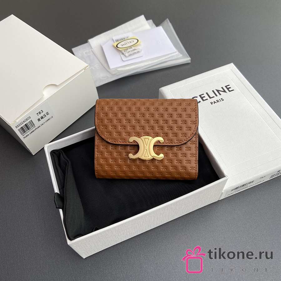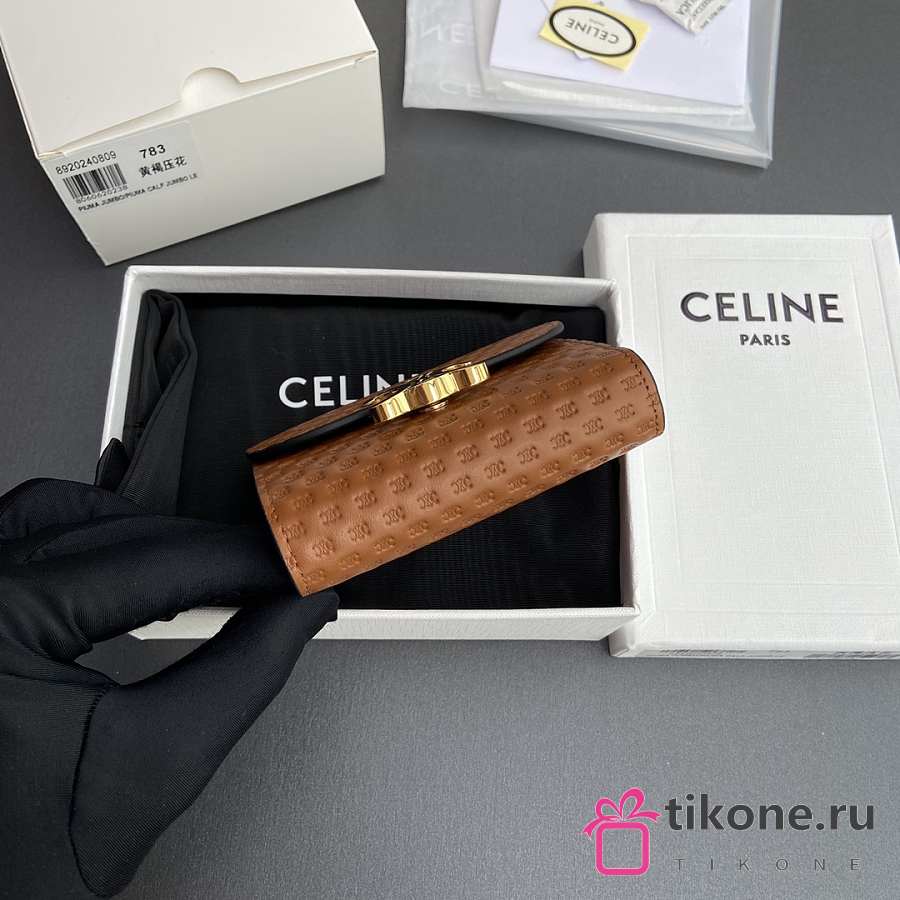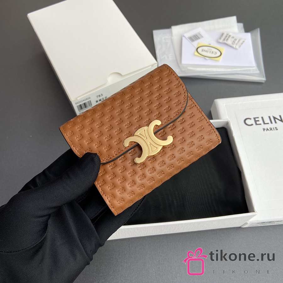 Celine Small Flap Wallet With Triomphe Embossed Logo in Brown - 10.5x8.5x4cm