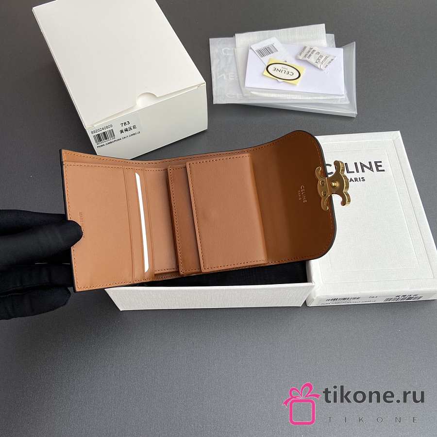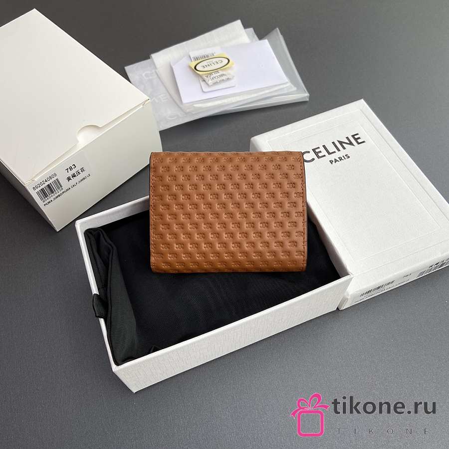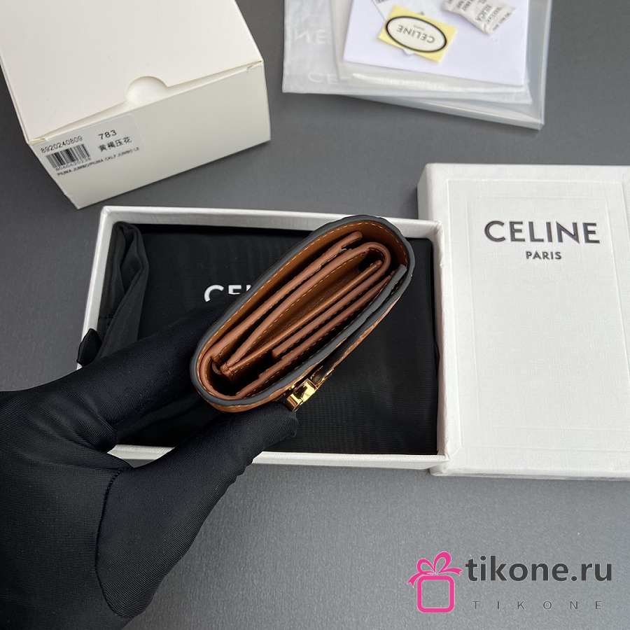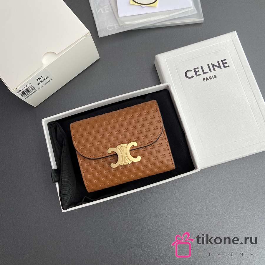 Celine Small Flap Wallet With Triomphe Embossed Logo in Brown - 10.5x8.5x4cm