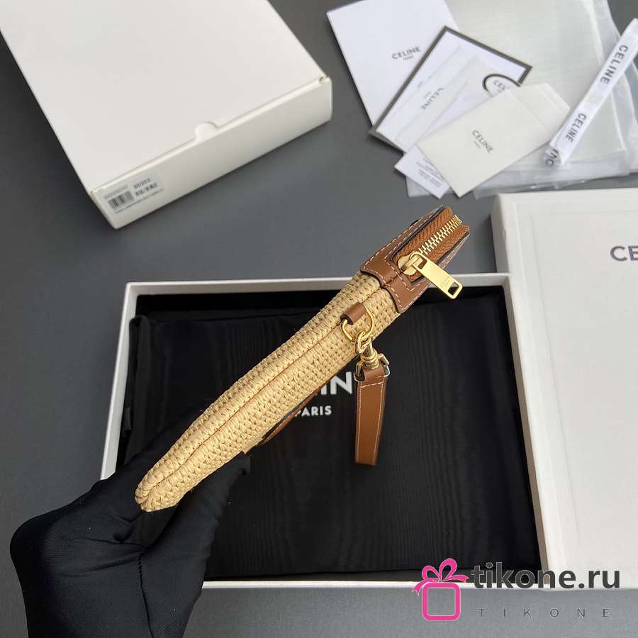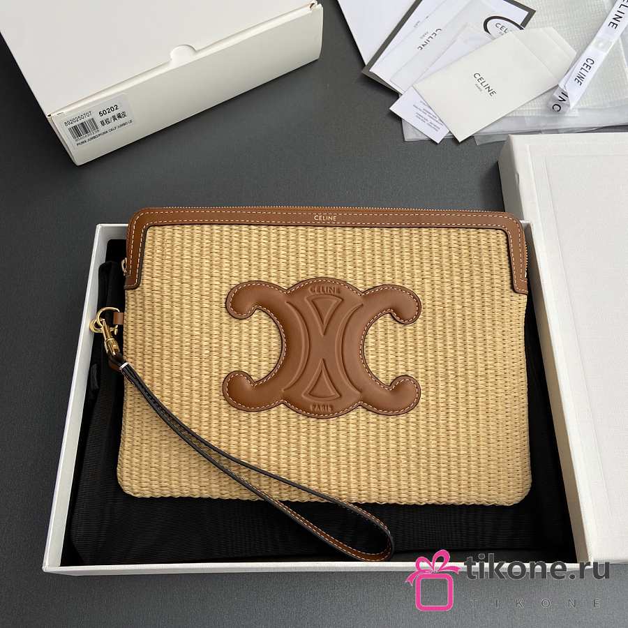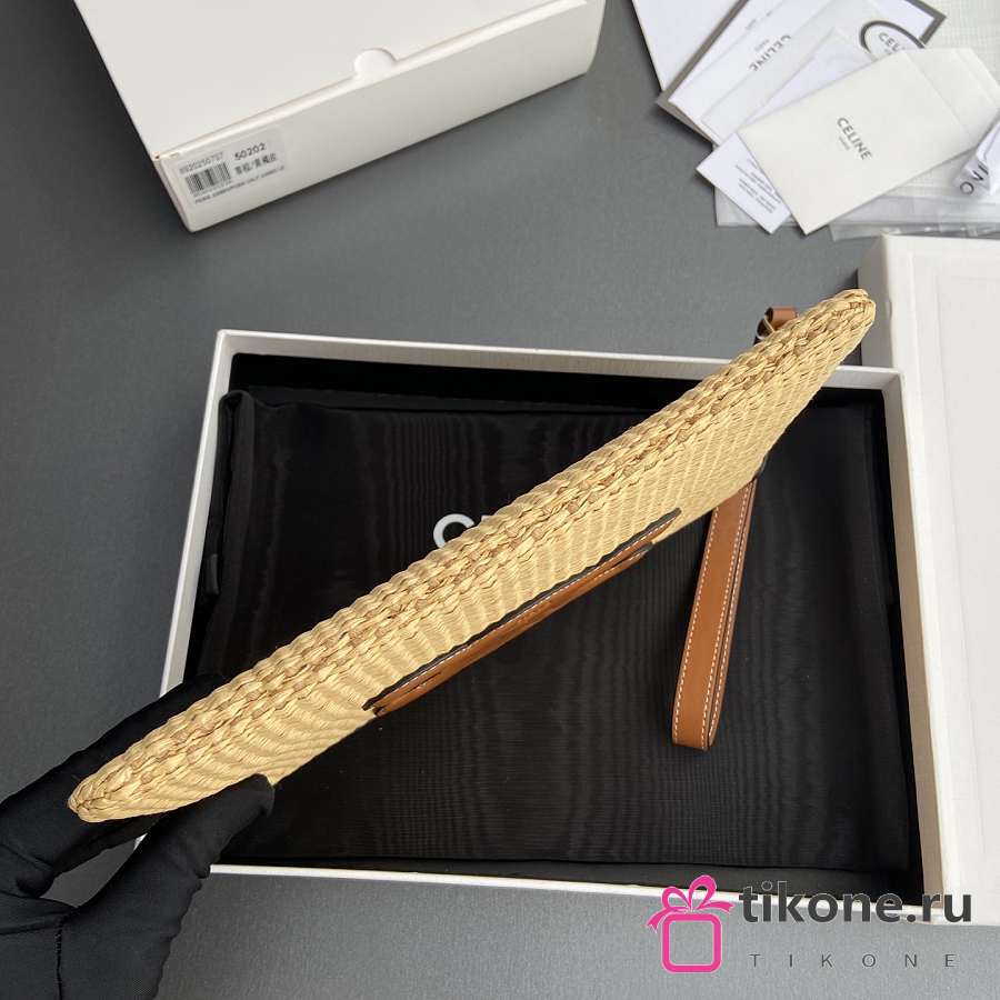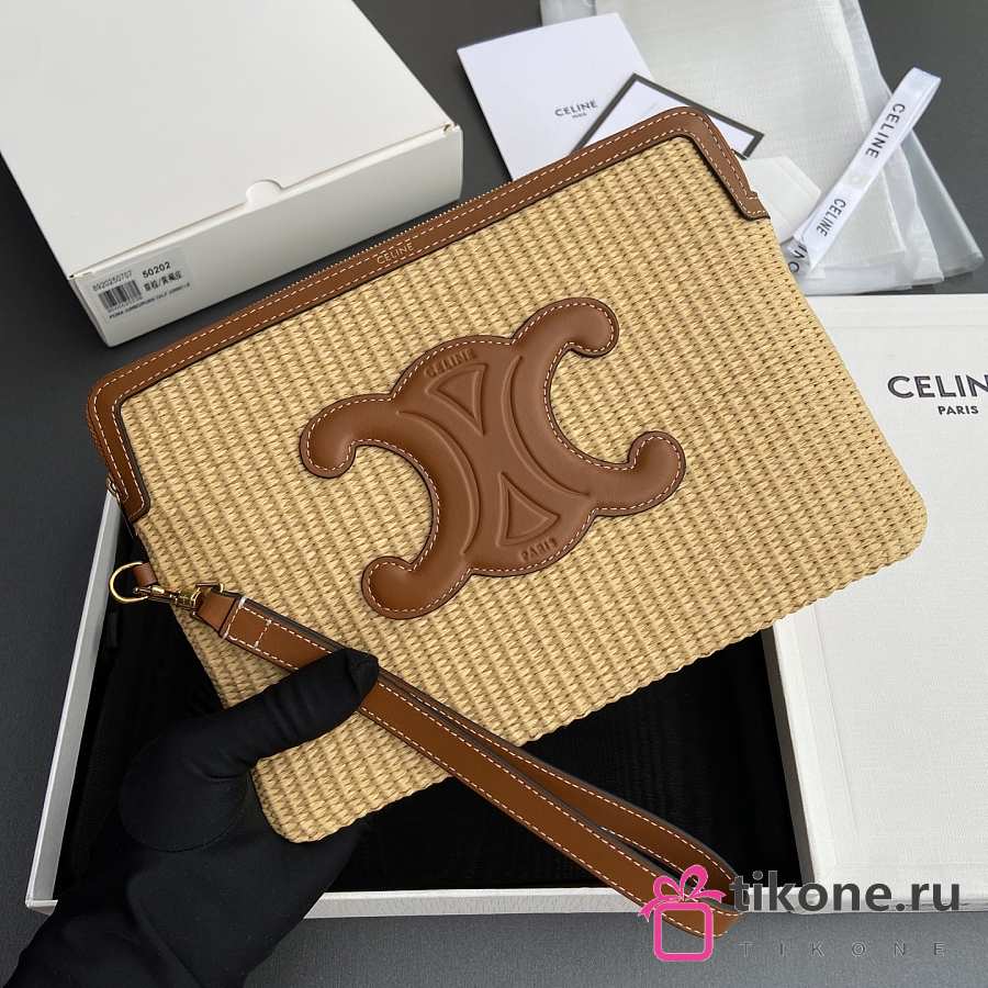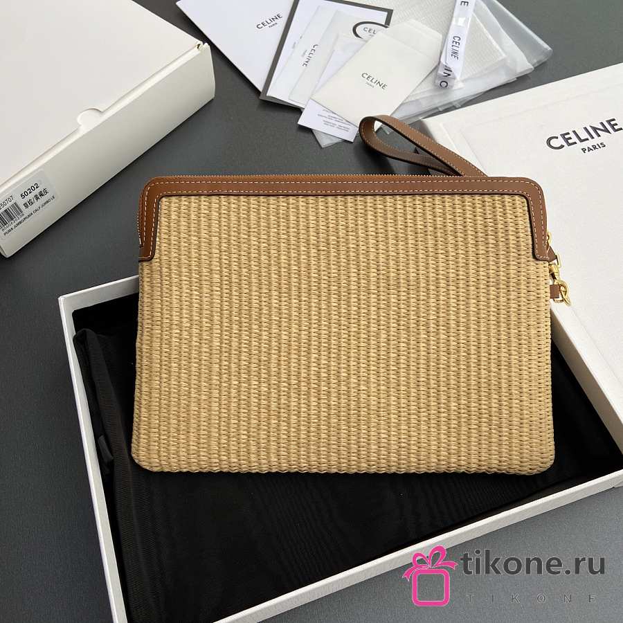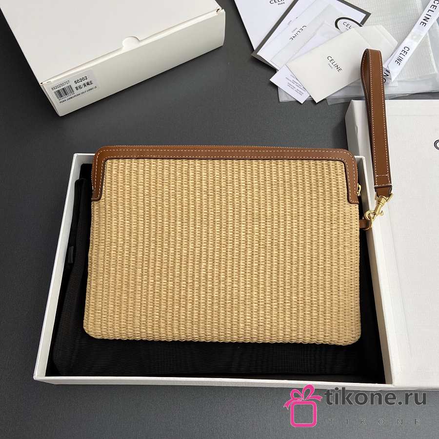 Celine Small Pouch With Strap Cuir Triomphe In Raffia Effect Textile And Calfskin - 25x17.5x1cm