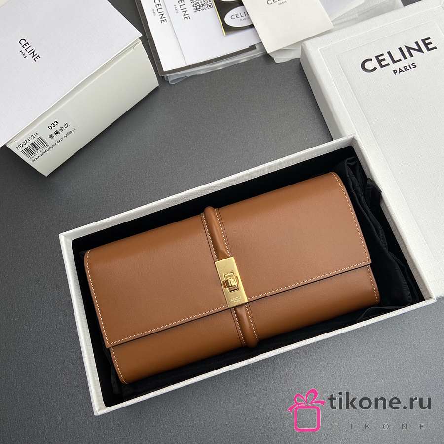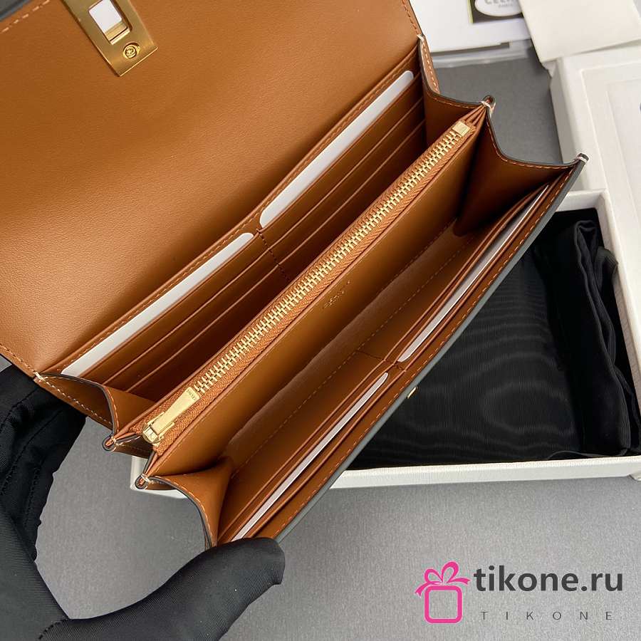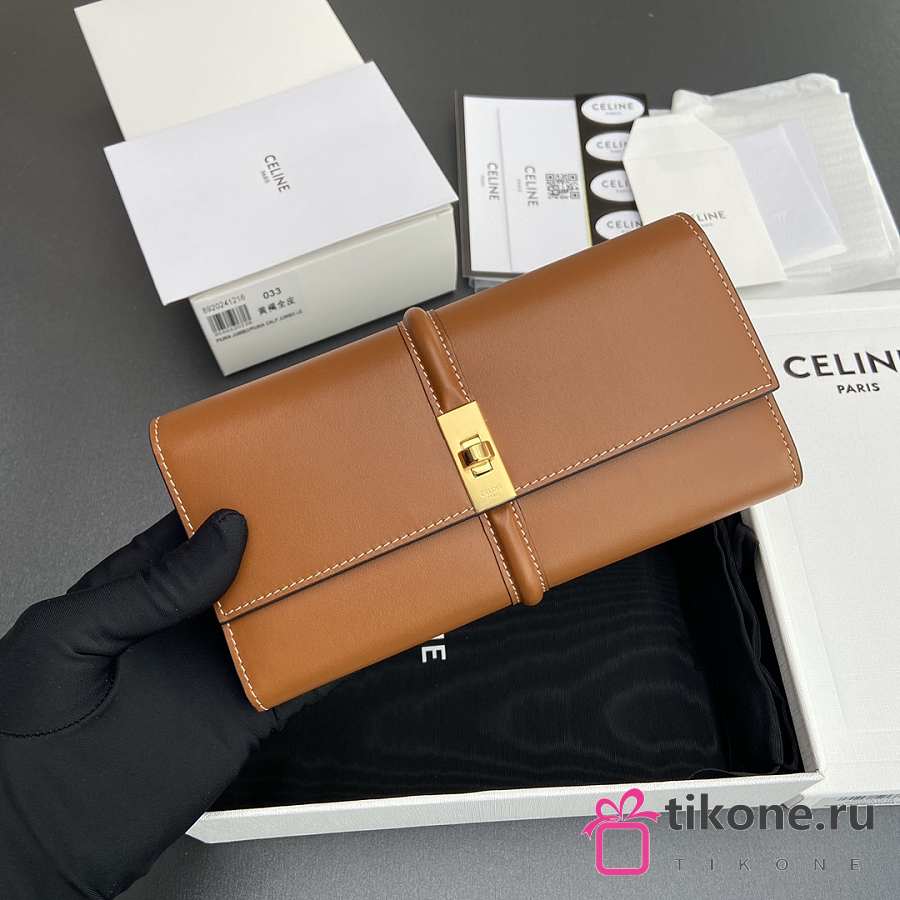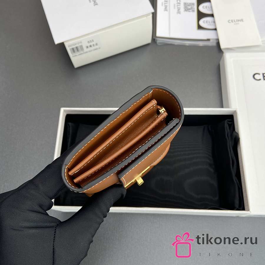 Celine Small Trifold wallet 16 In Satinated Calfskin Brown - 19x10x4cm