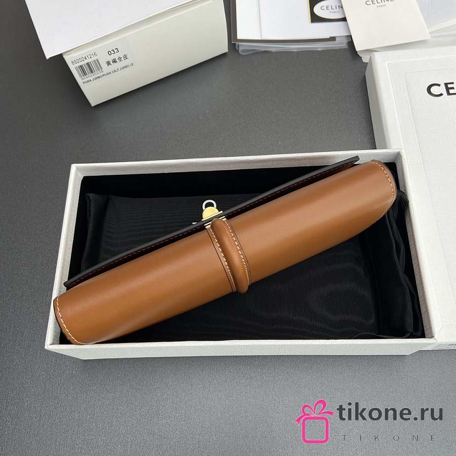Celine Folco Shoulder Bag In Triomphe Canvas and Calfskin Tan - 20x14x5cm