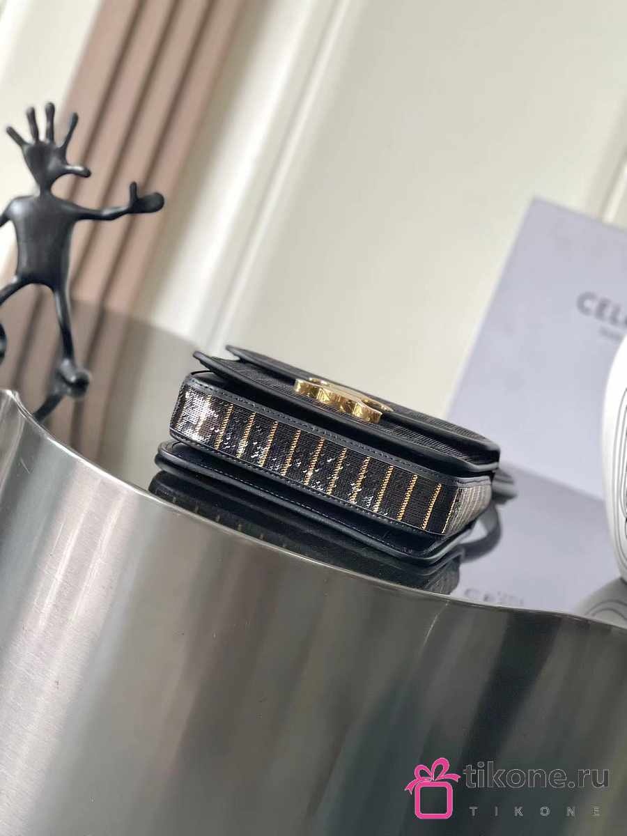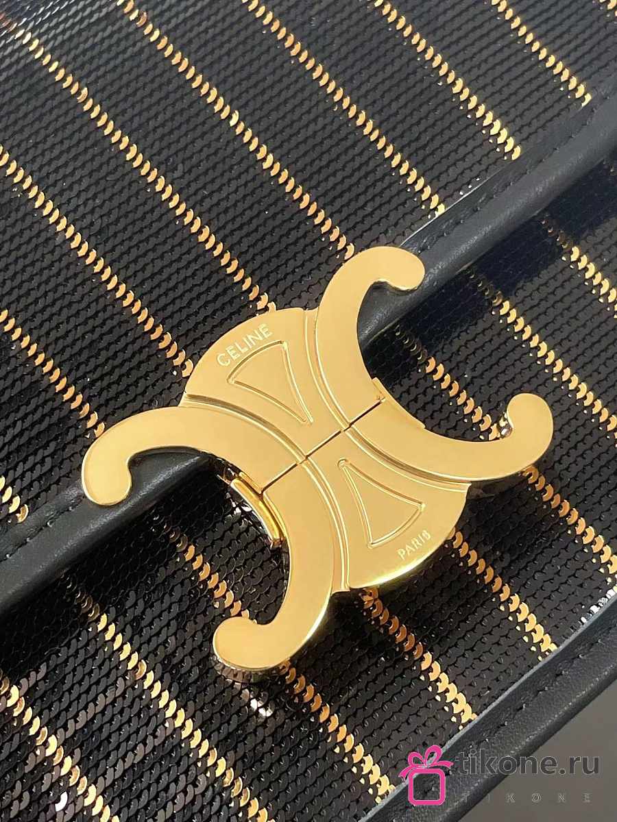 Celine Teen Garance Bag In Striped Sequins Black/Gold - 18.5x13.5xcm