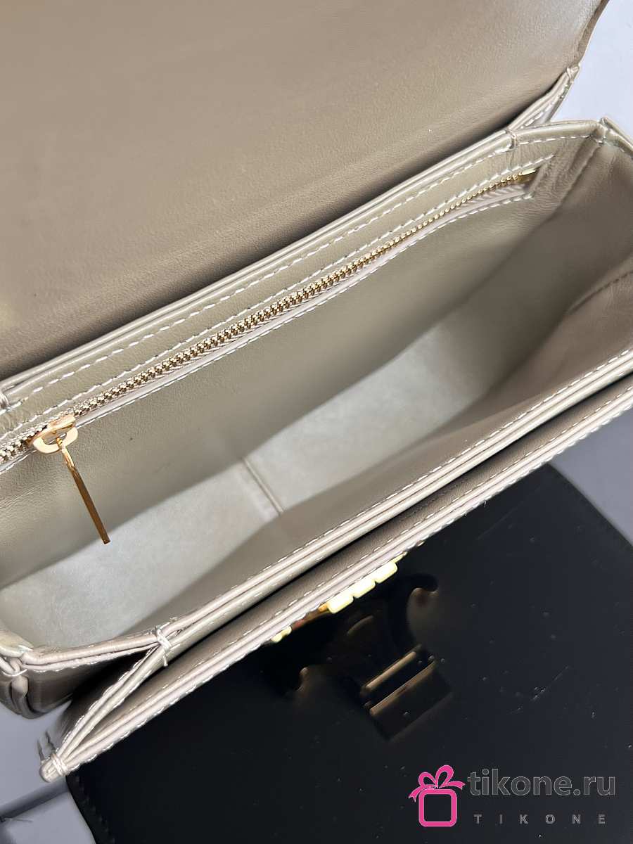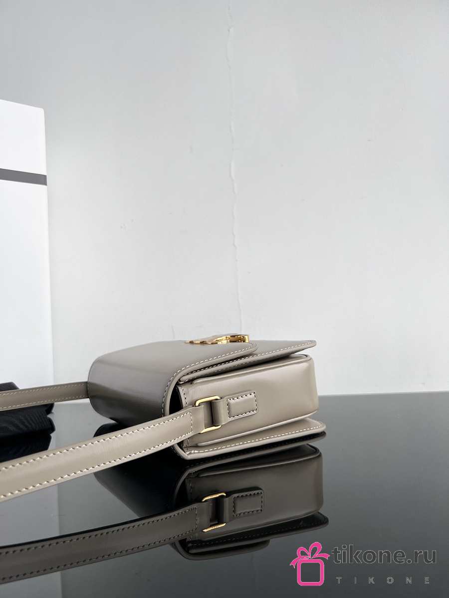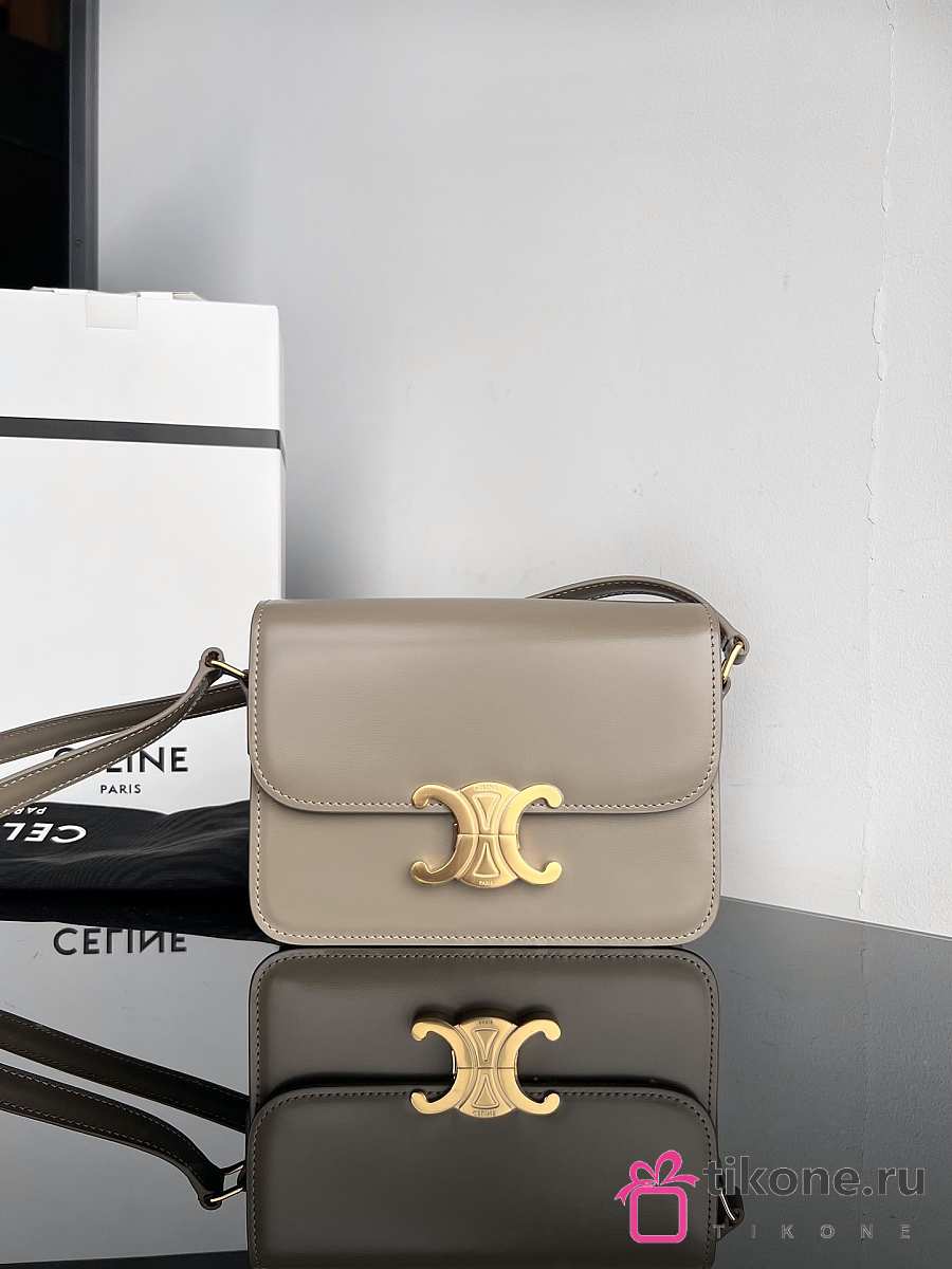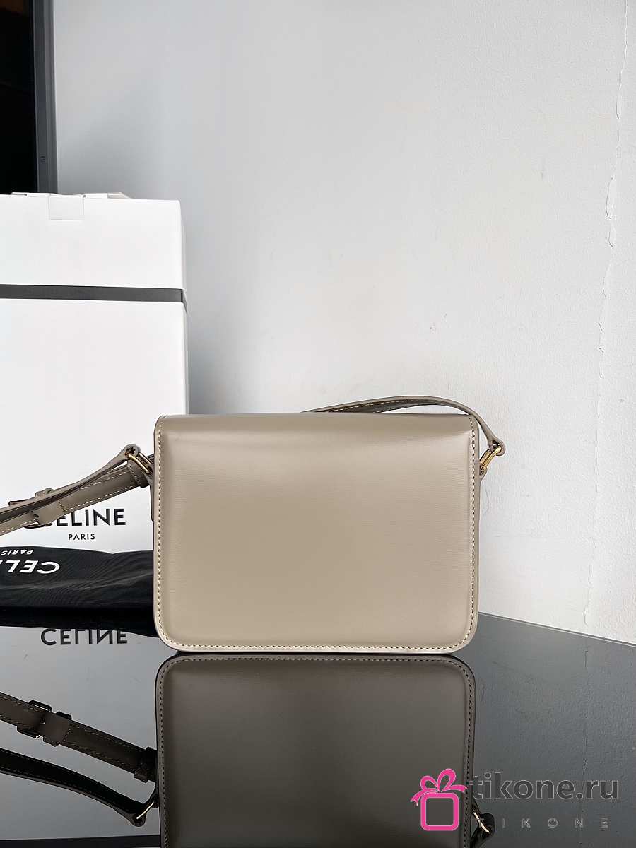 Celine Teen Triomphe Bag In Shiny Calfskin Teen Pebble Gray - 18.5x13.5x7cm