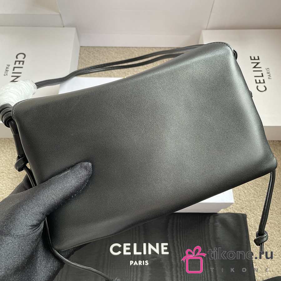 Celine Trio Flap In Smooth Lambskin Black - 22.5x13x3.5cm
