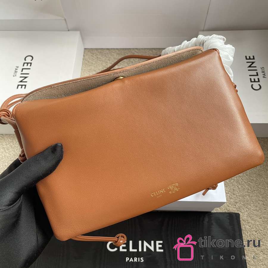 Celine Trio Flap In Smooth Lambskin Brown - 22.5x13x3.5cm