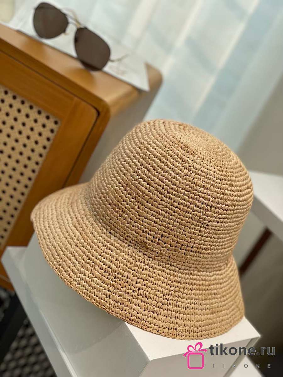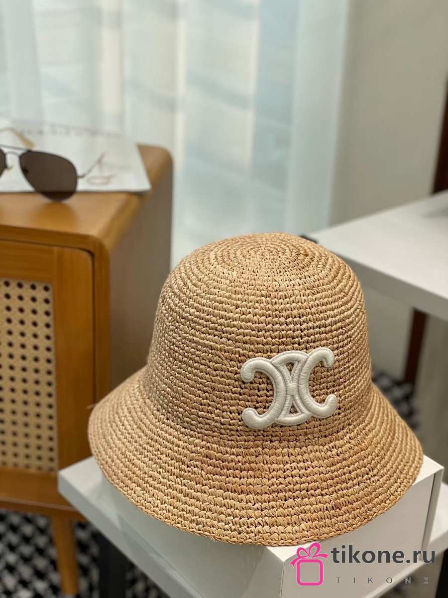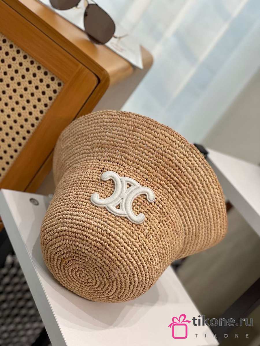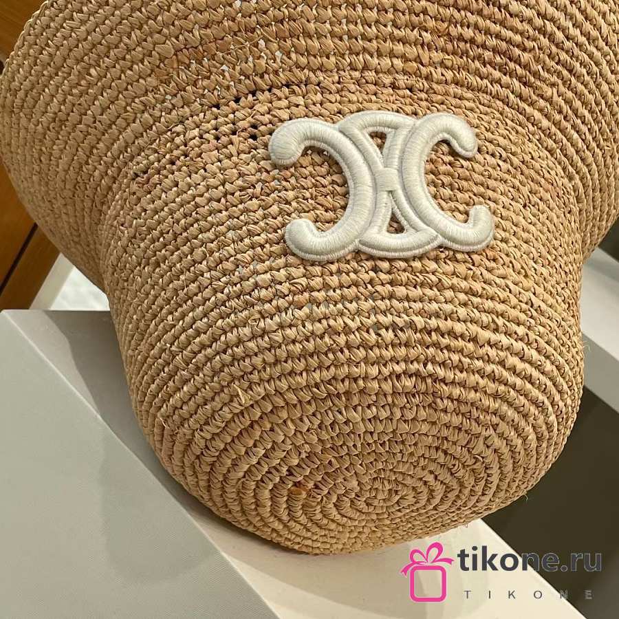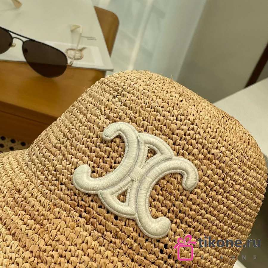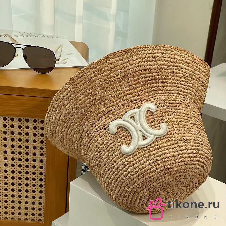 Celine Triomphe Bucket Hat In Raffia Natural/Cream