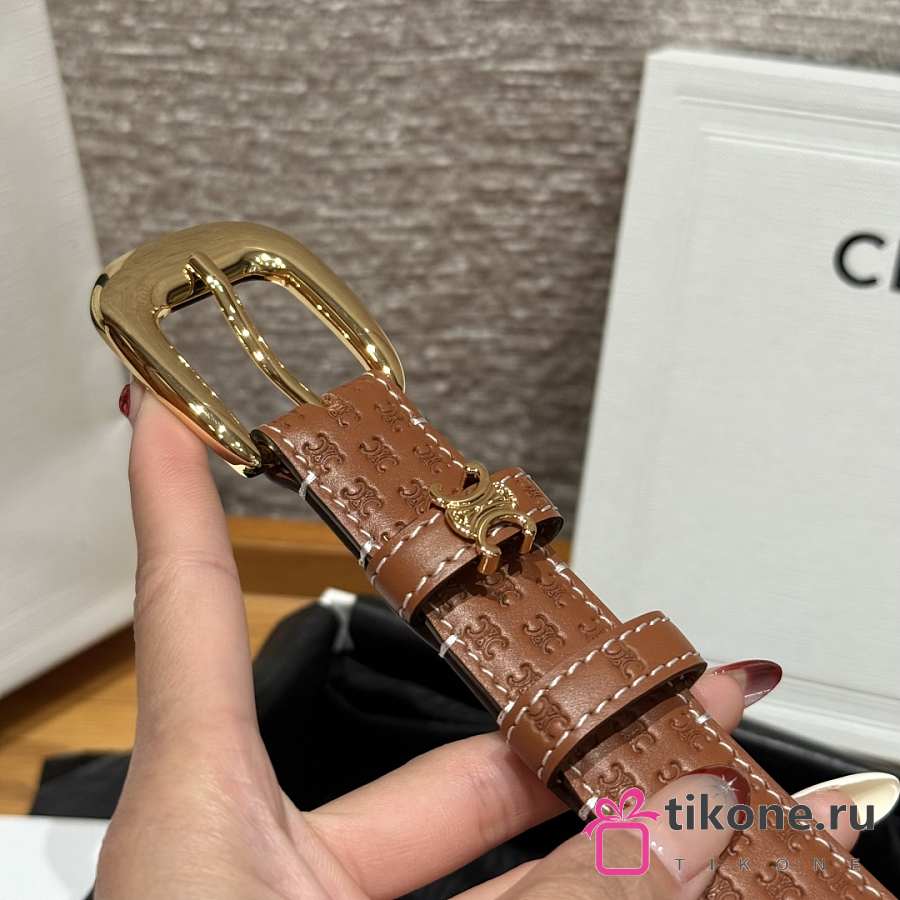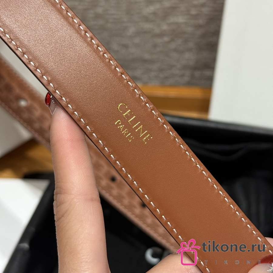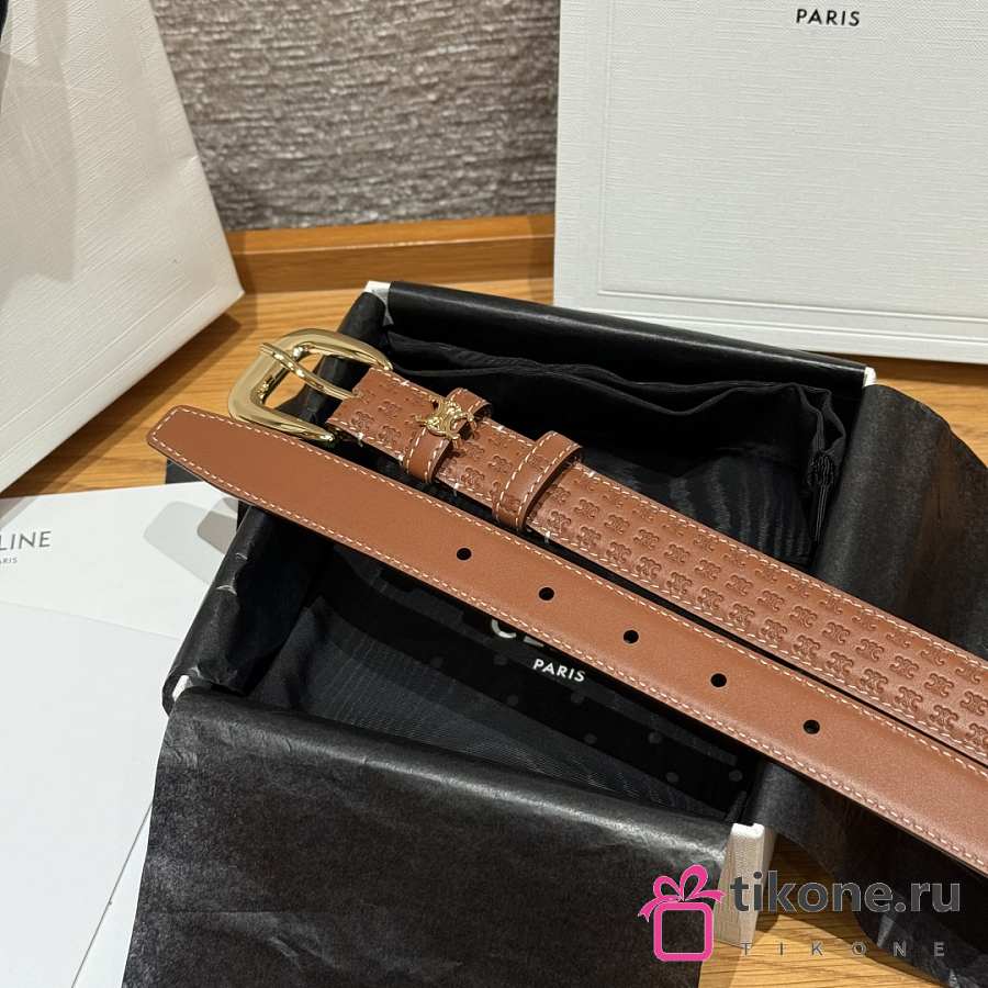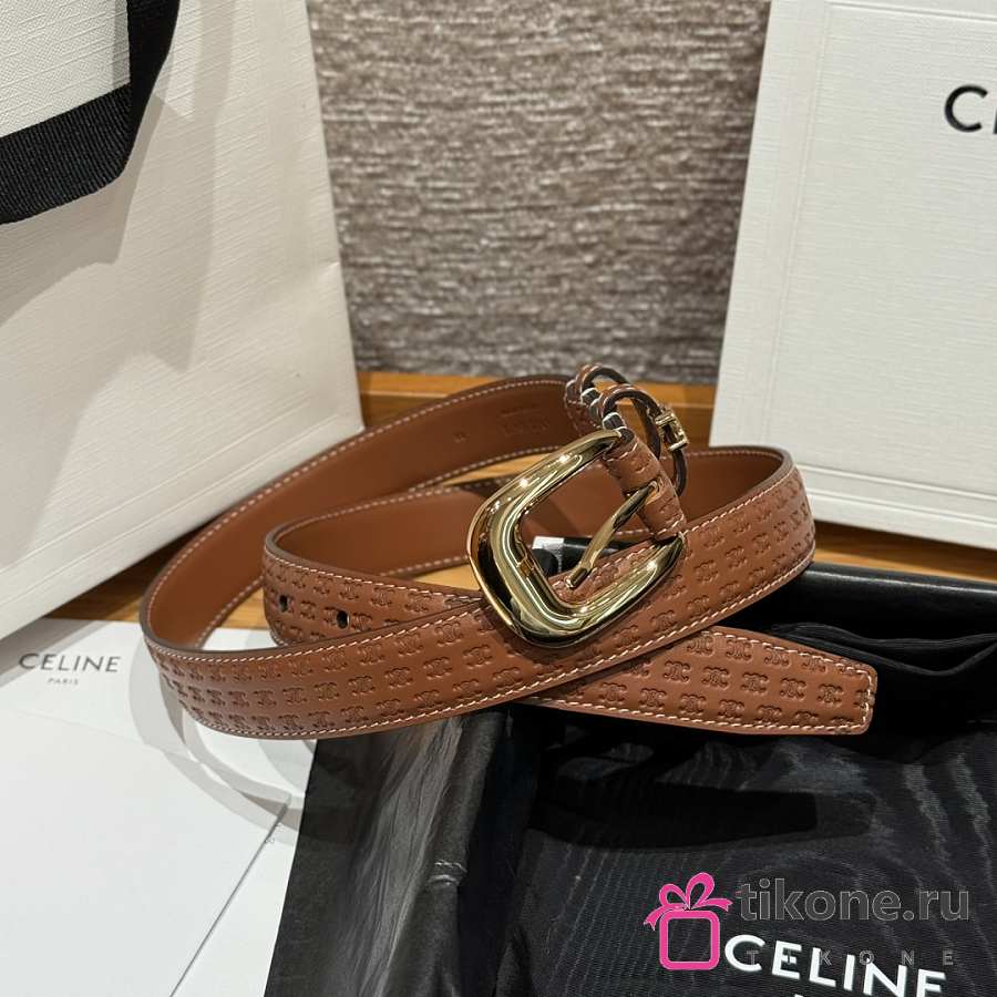 Celine Triomphe Embossed Calfskin Belt in Brown with Gold Buckle 2.5cm