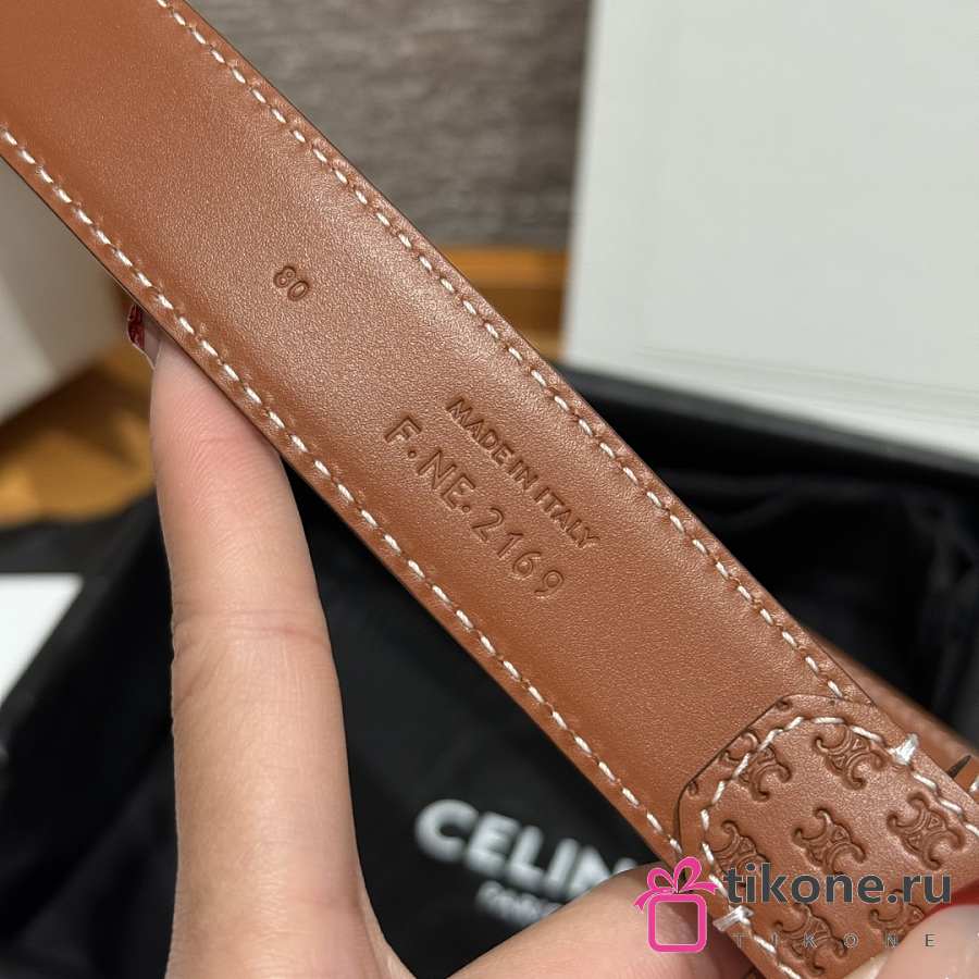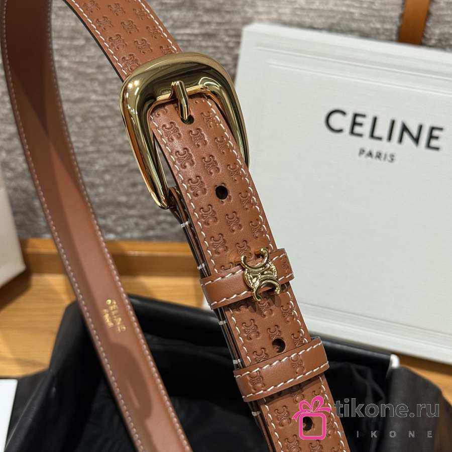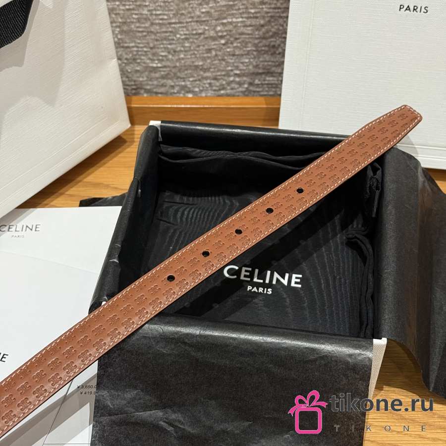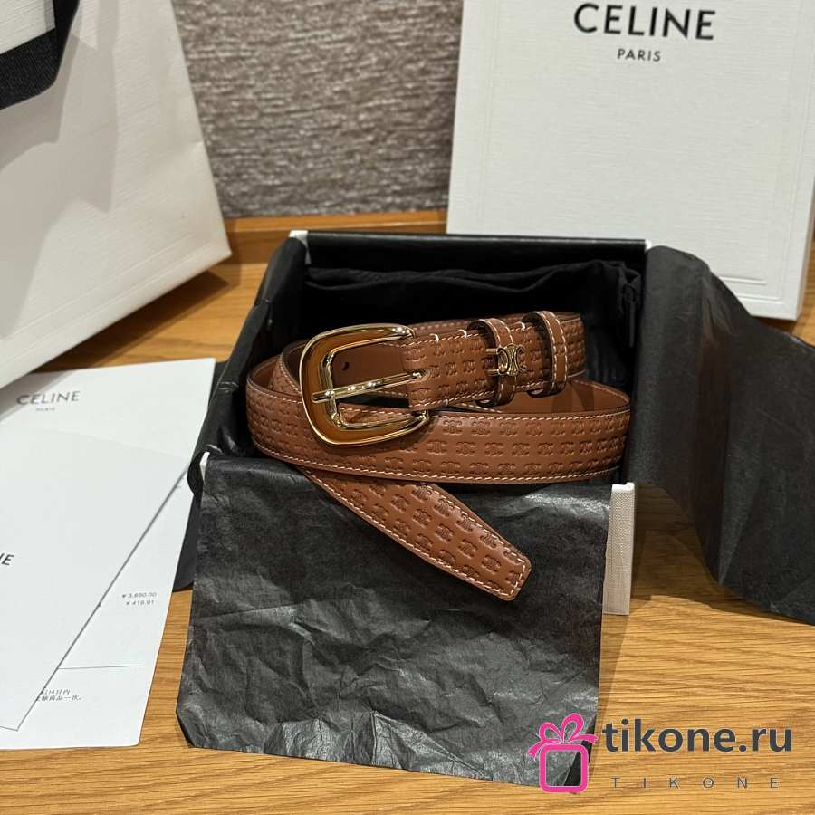 Celine Triomphe Embossed Calfskin Belt in Brown with Gold Buckle 2.5cm