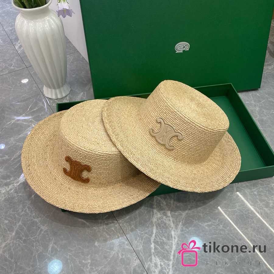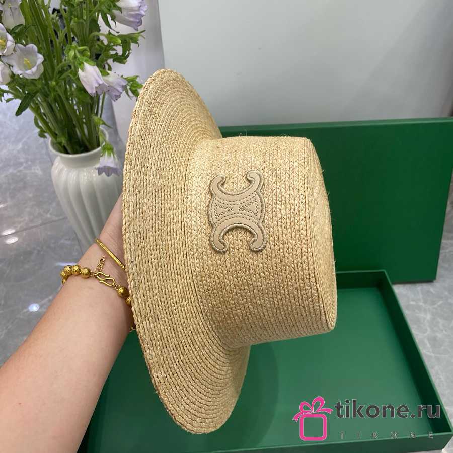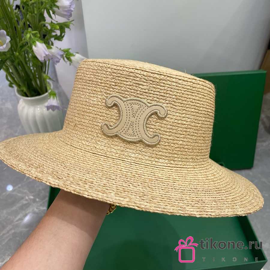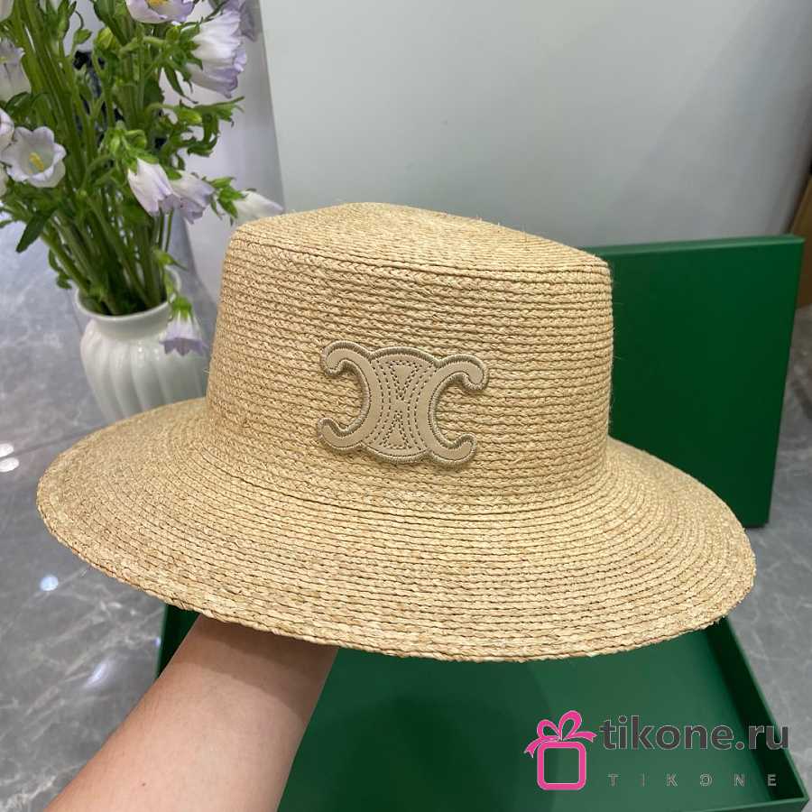 Celine Triomphe Hat In Raffia Natural