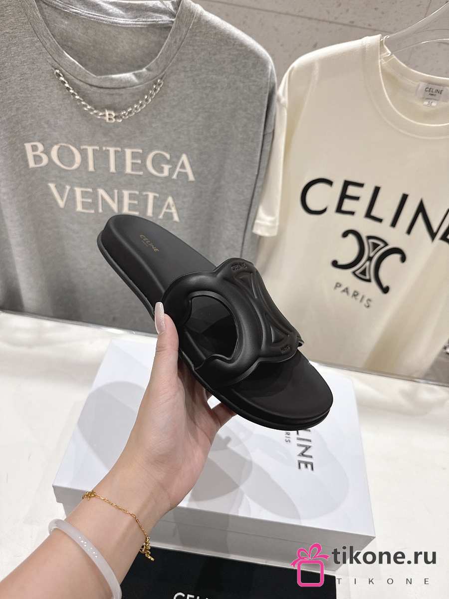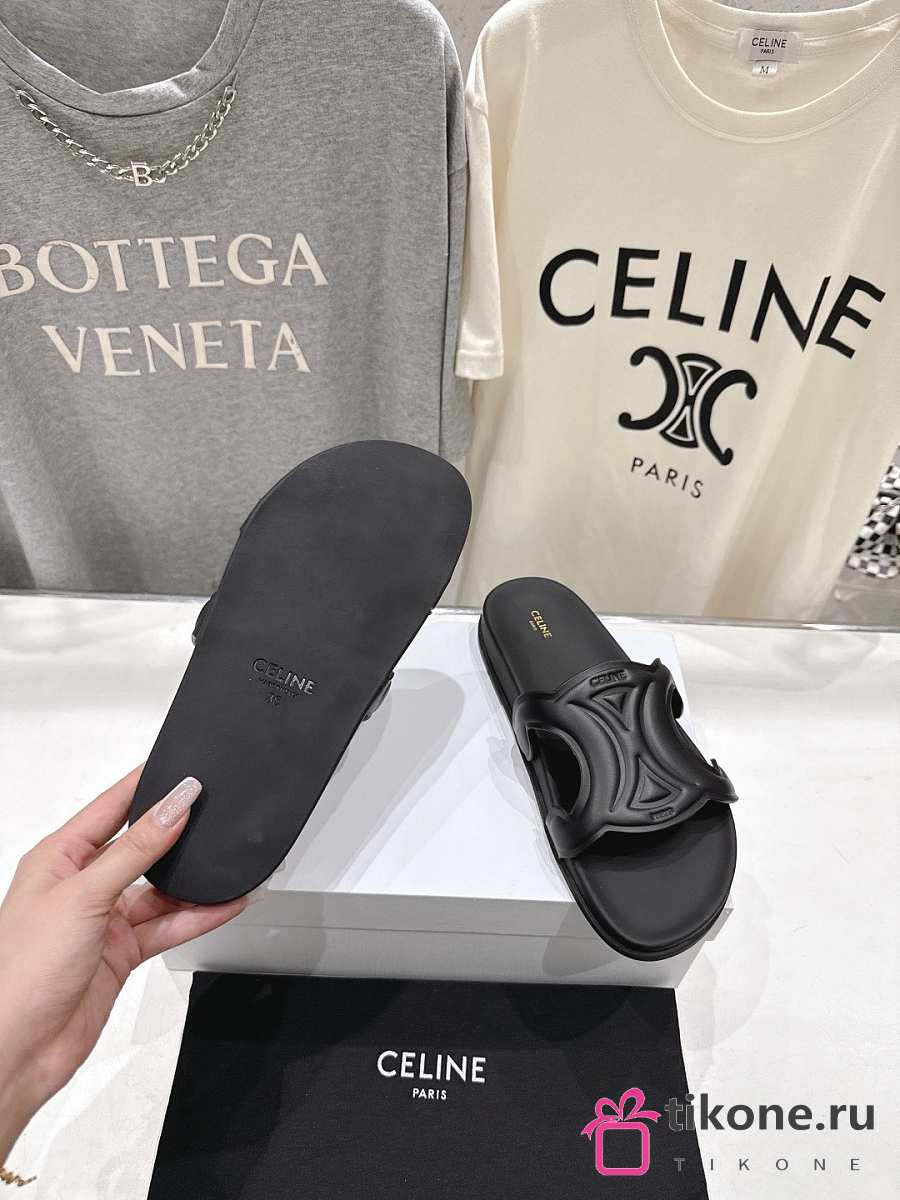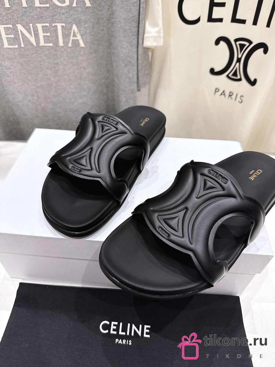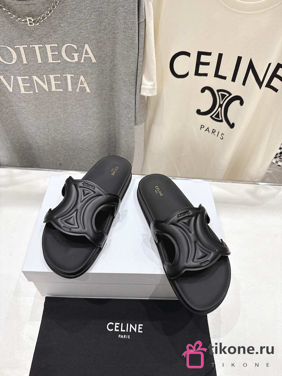 Celine Triomphe Slide In Calfskin Vegetal Tanning Black