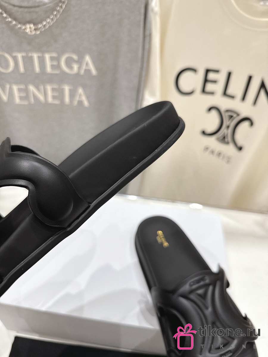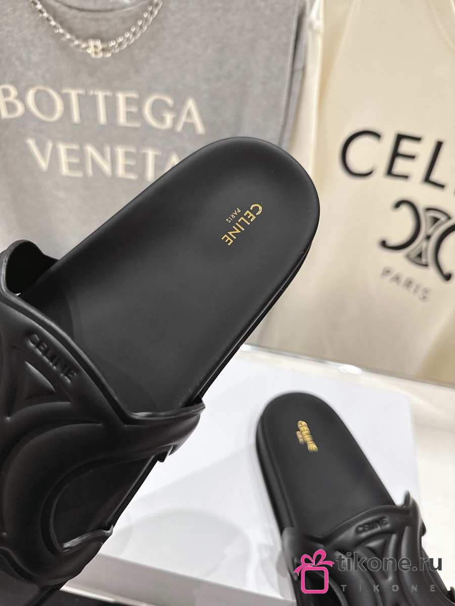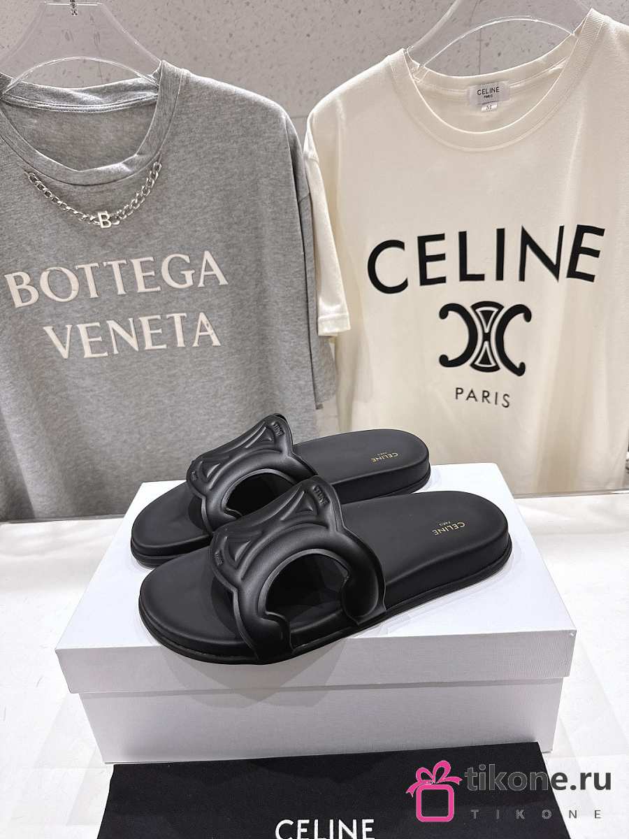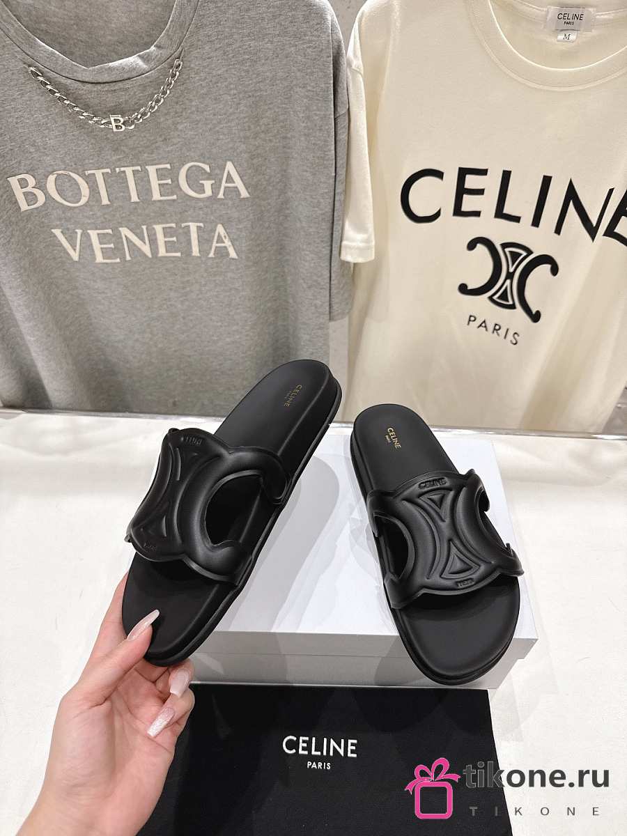 Celine Triomphe Slide In Calfskin Vegetal Tanning Black