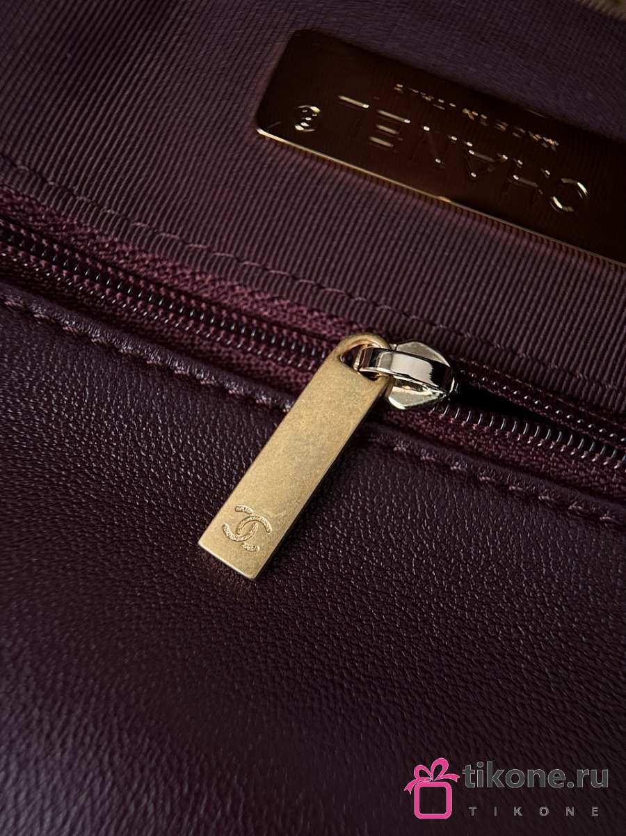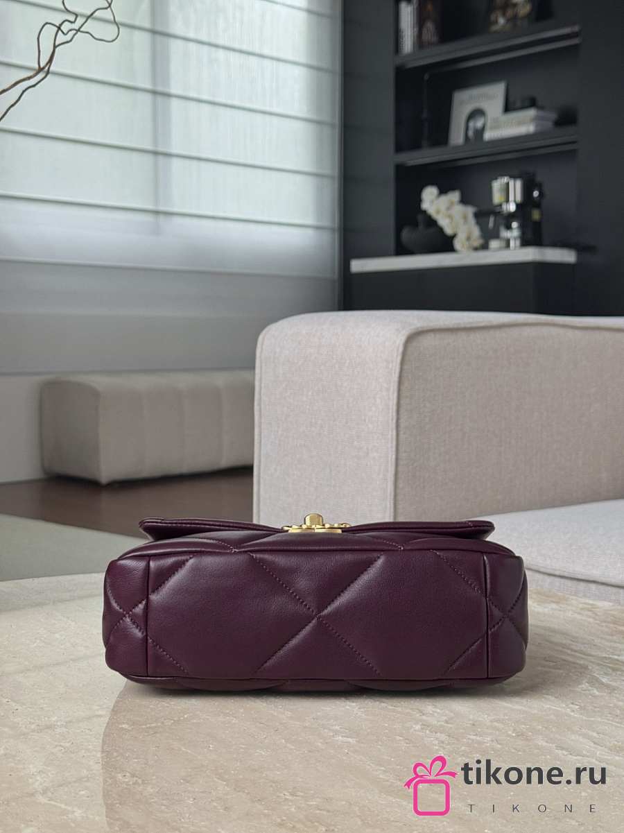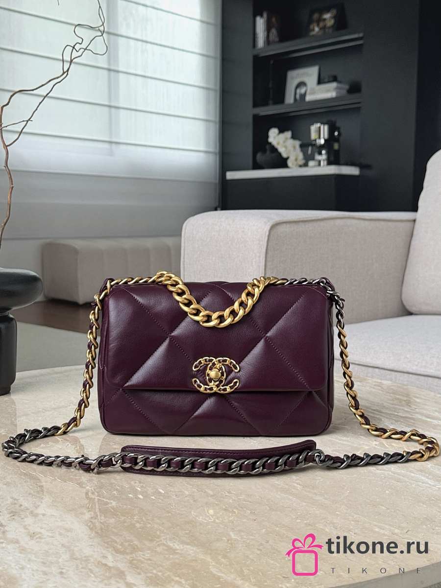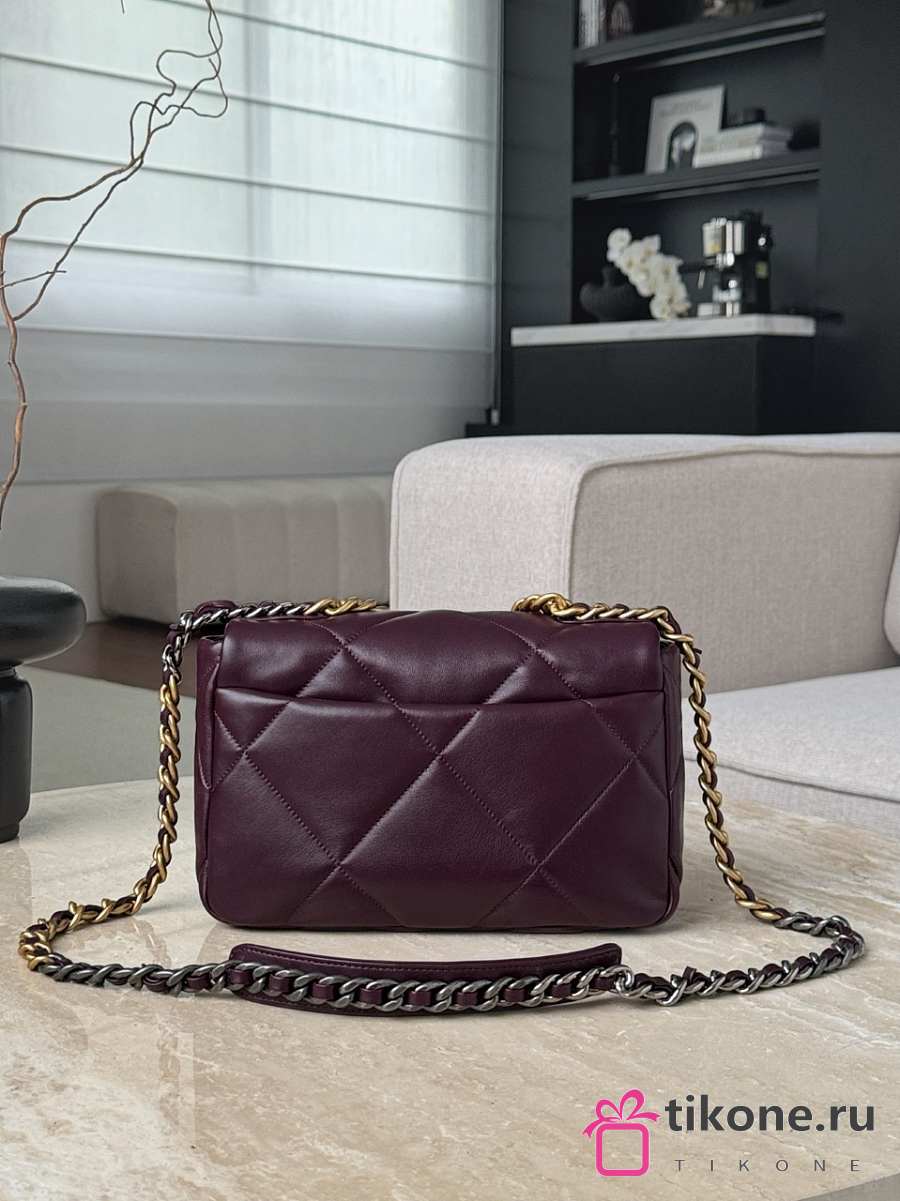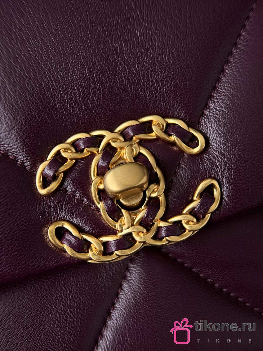 Chanel 19 Handbag Shiny Lambskin Gold Tone Silver Tone & Ruthenium Finish Metal Burgundy - 16x26x9cm