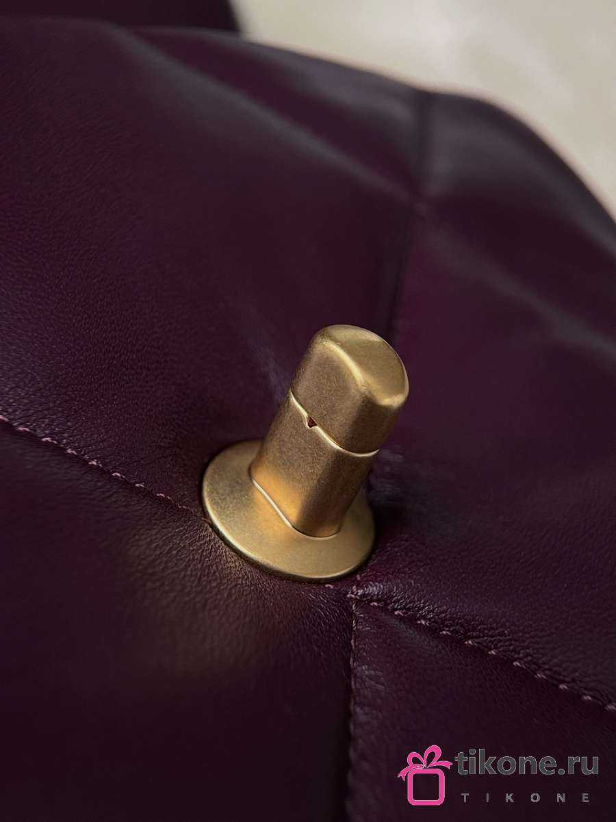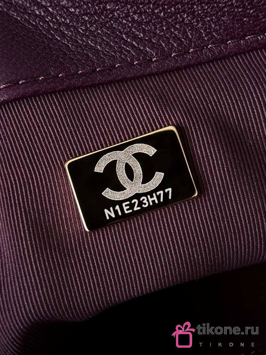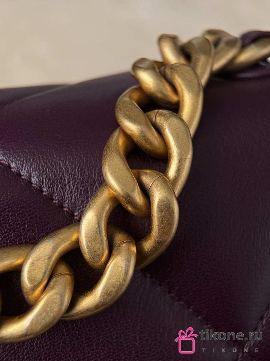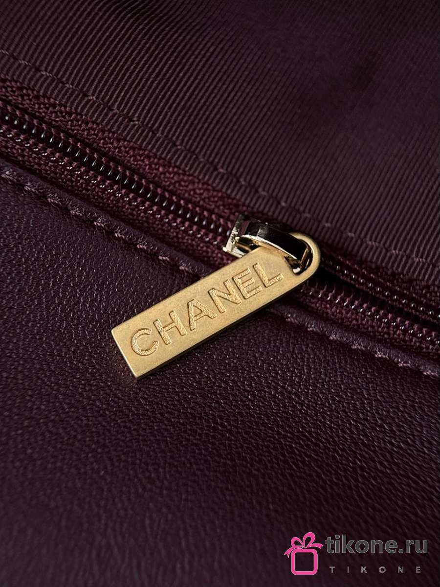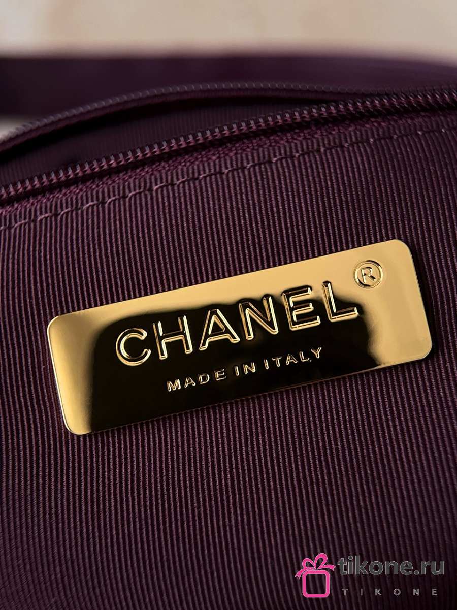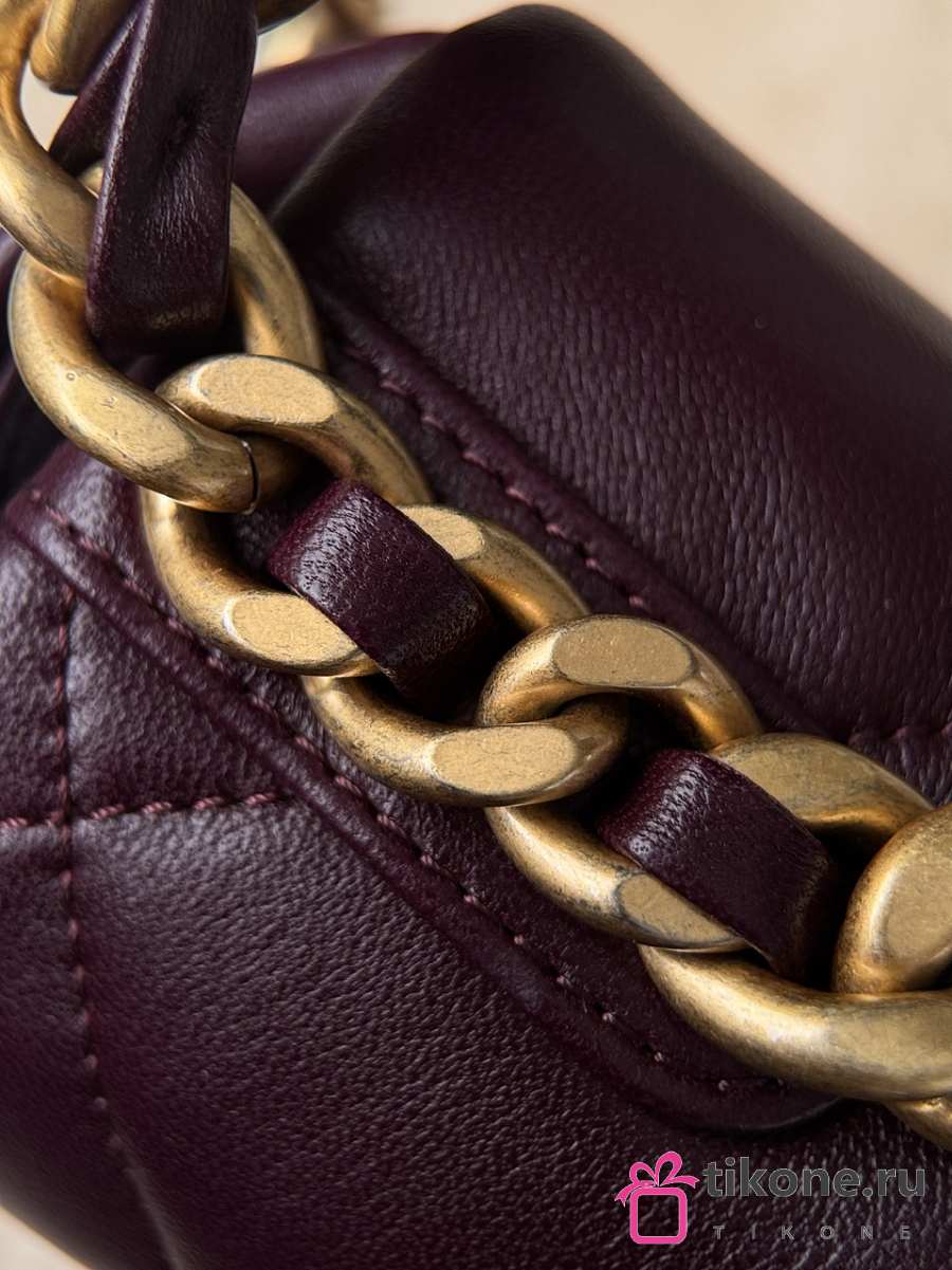 Chanel 19 Handbag Shiny Lambskin Gold Tone Silver Tone & Ruthenium Finish Metal Burgundy - 16x26x9cm