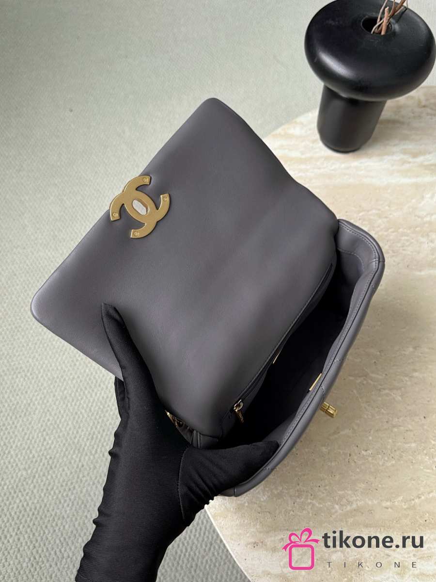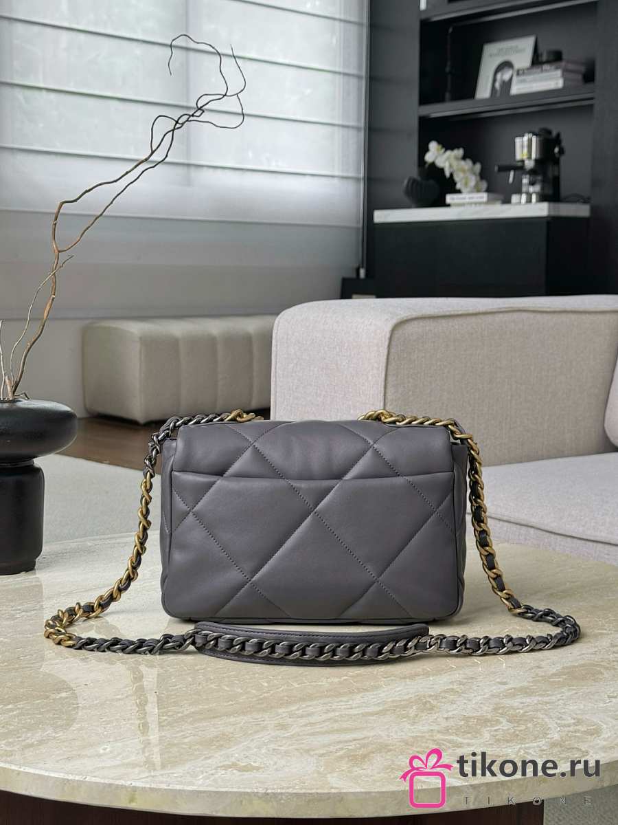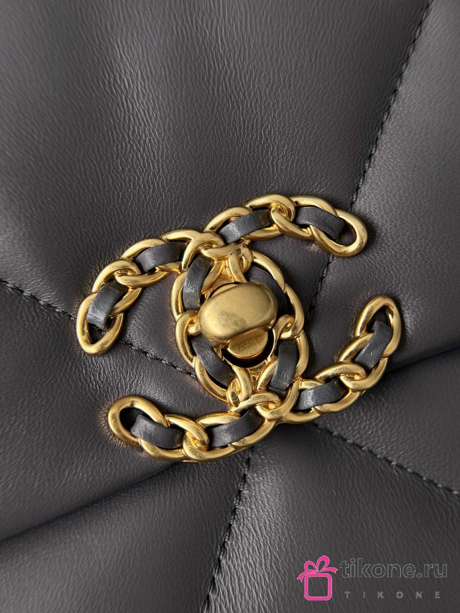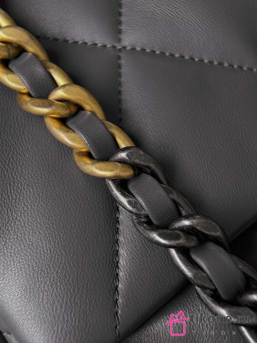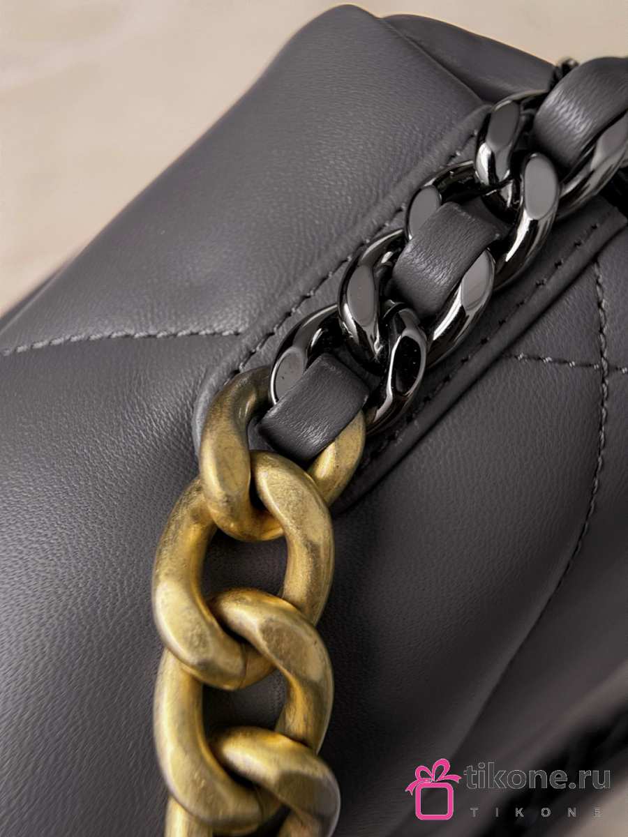 Chanel 19 Handbag Shiny Lambskin Gold Tone Silver Tone & Ruthenium Finish Metal Dark Gray - 16x26x9cm
