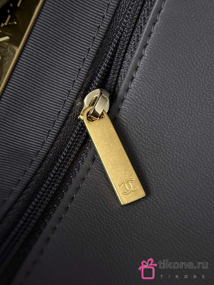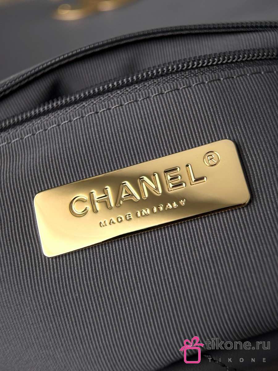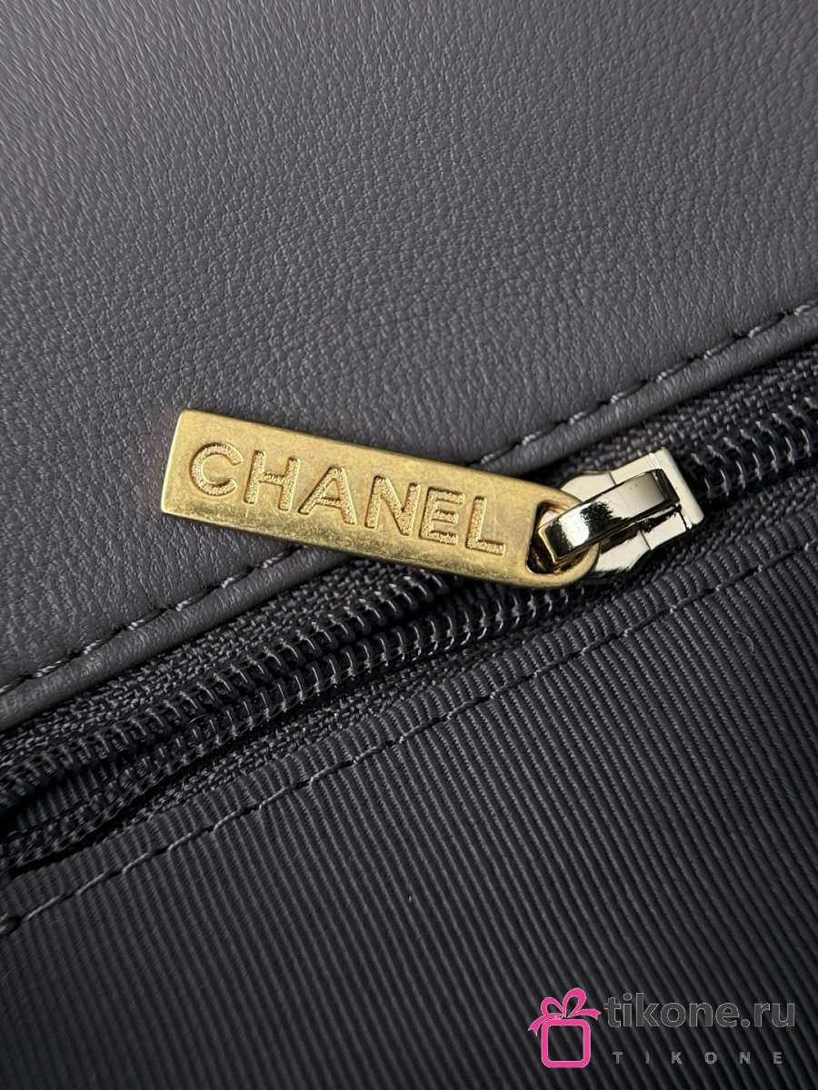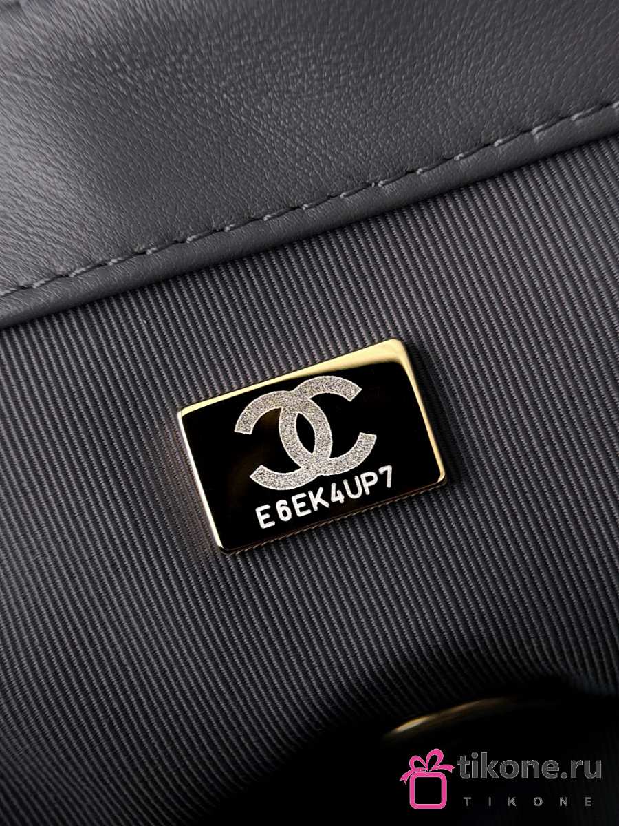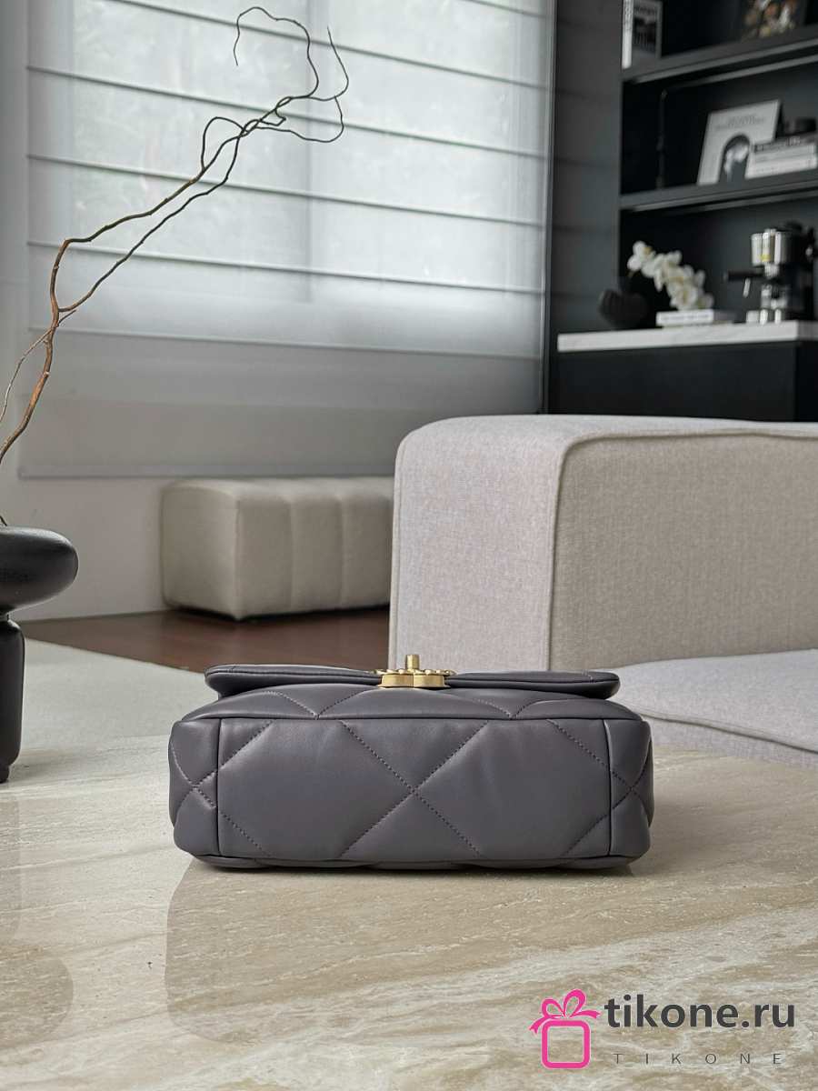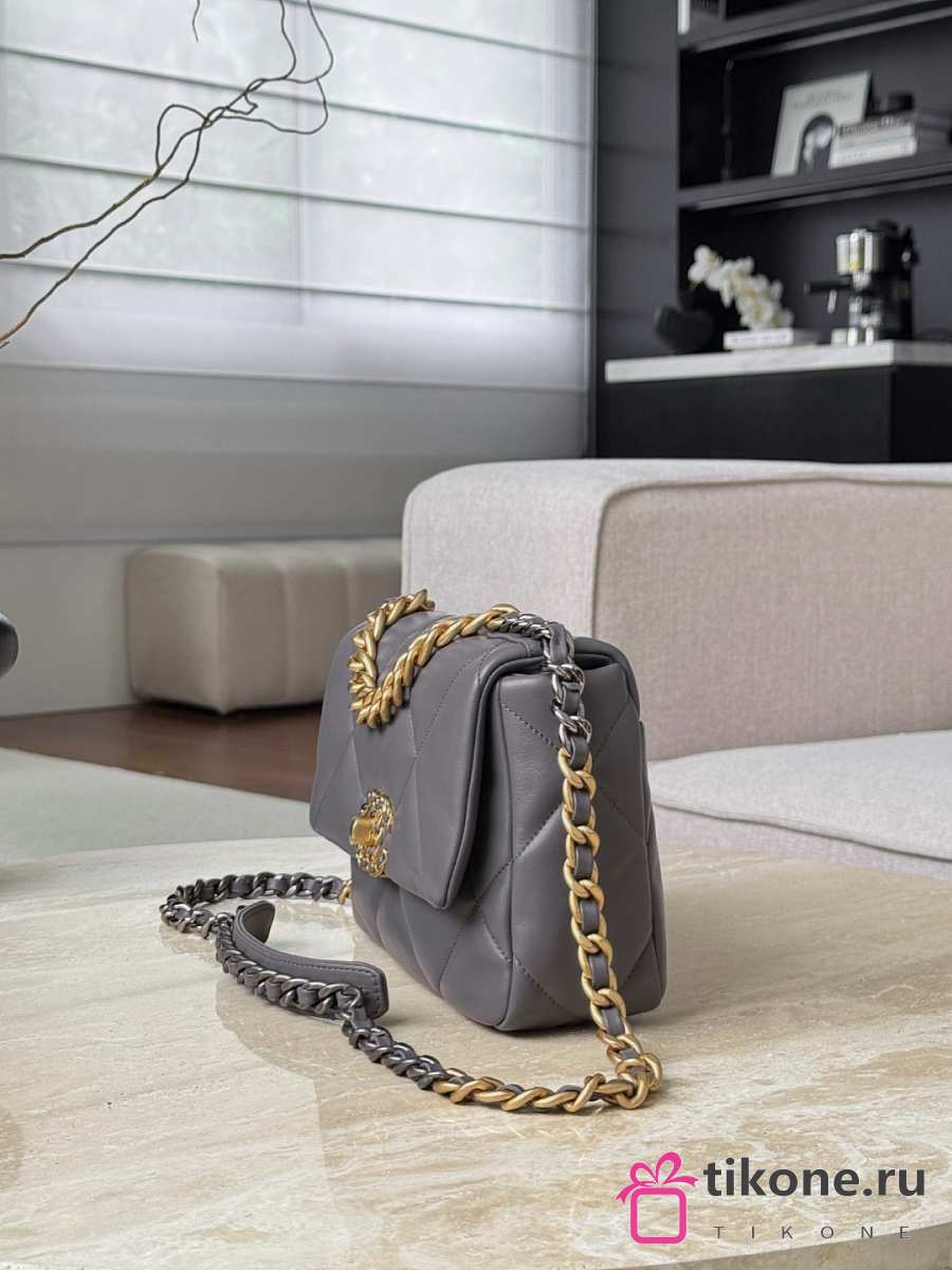 Chanel 19 Handbag Shiny Lambskin Gold Tone Silver Tone & Ruthenium Finish Metal Dark Gray - 16x26x9cm