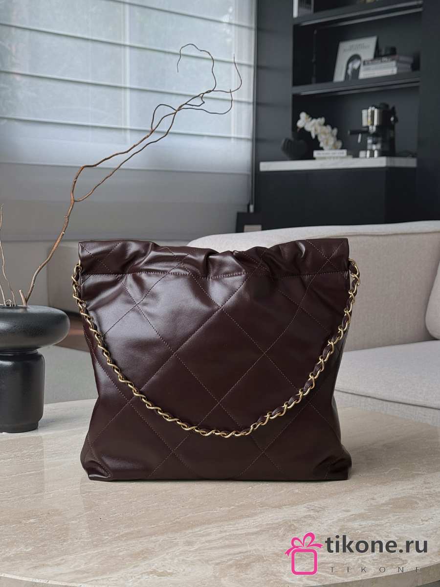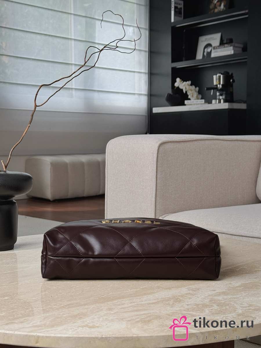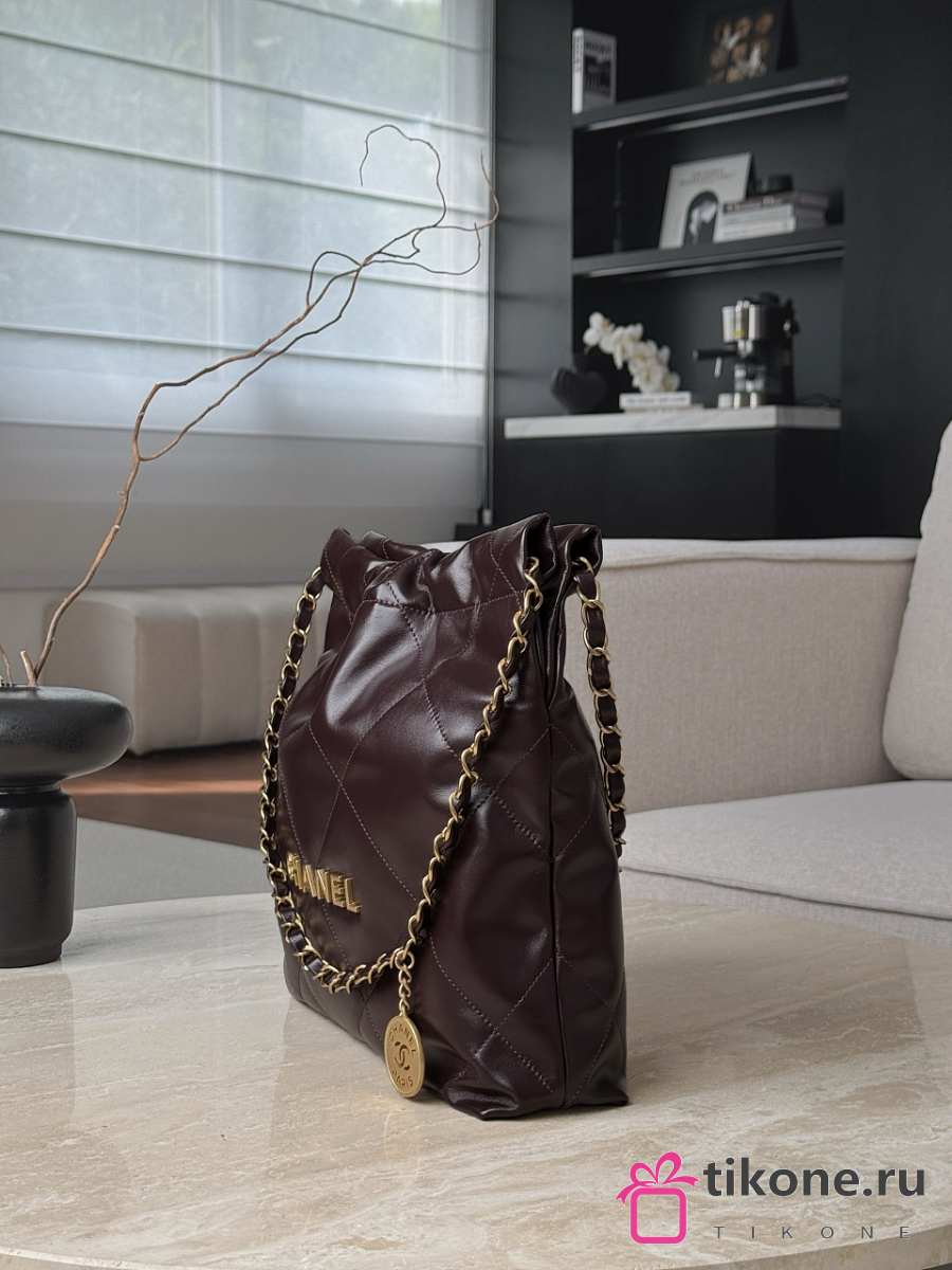 Chanel 22 Small Handbag Shiny Calfskin & Gold-Tone Metal Chocolate - 37x35x7cm