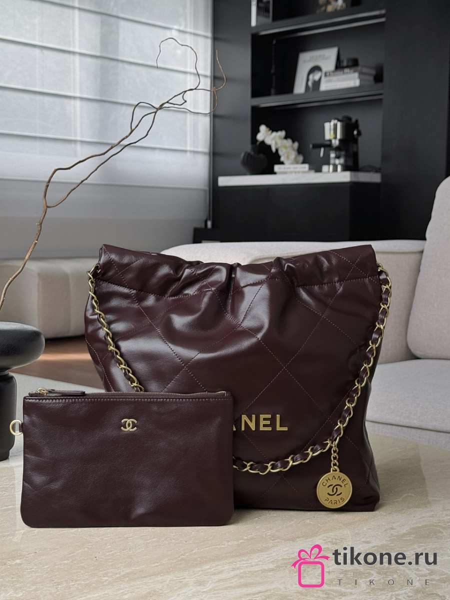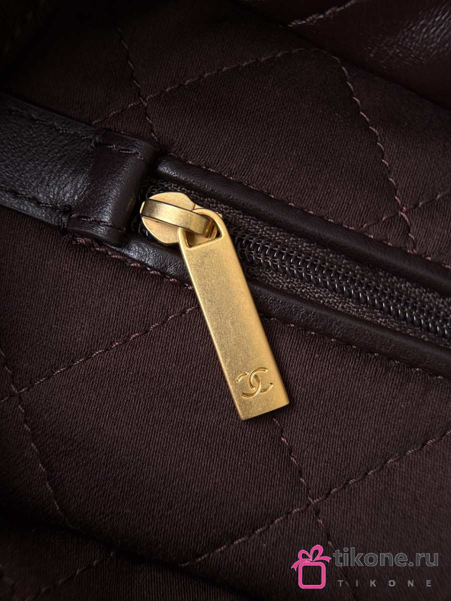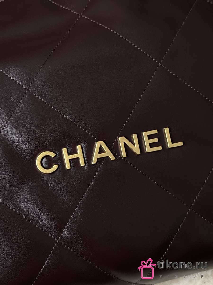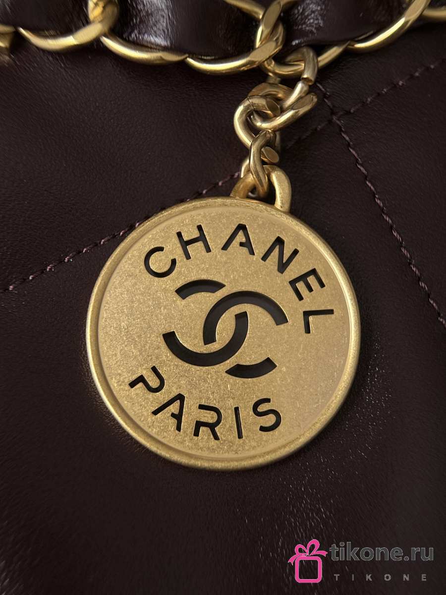 Chanel 22 Small Handbag Shiny Calfskin & Gold-Tone Metal Chocolate - 37x35x7cm