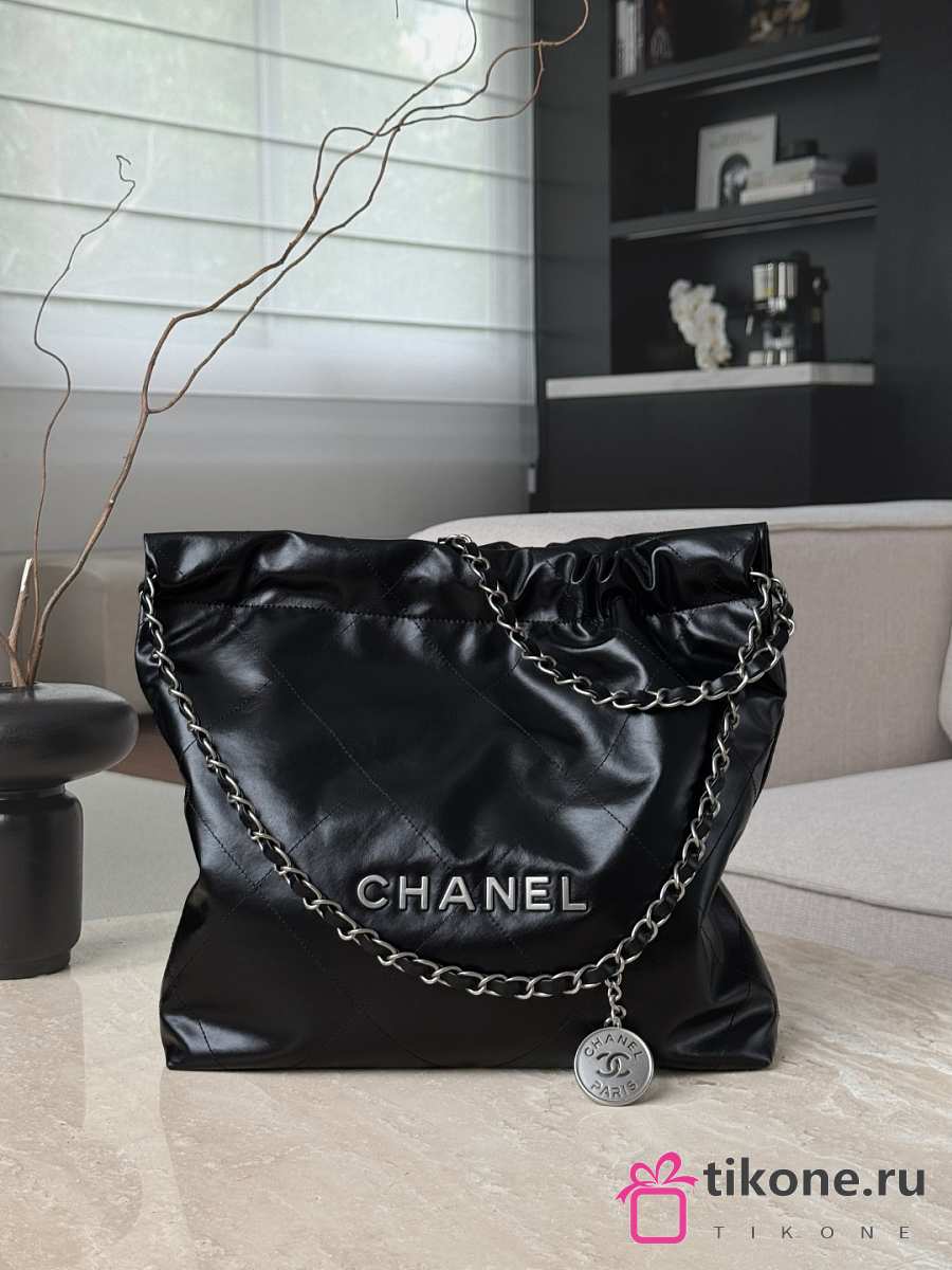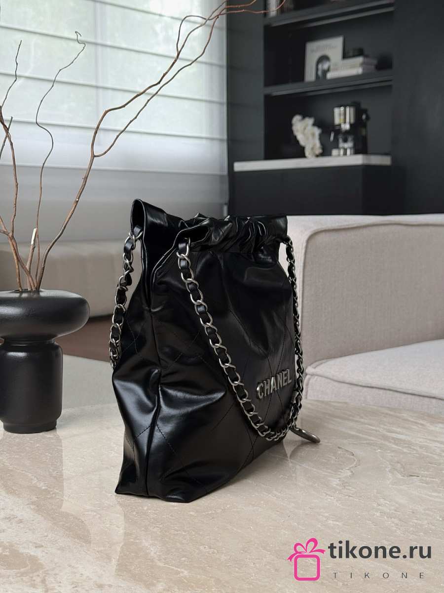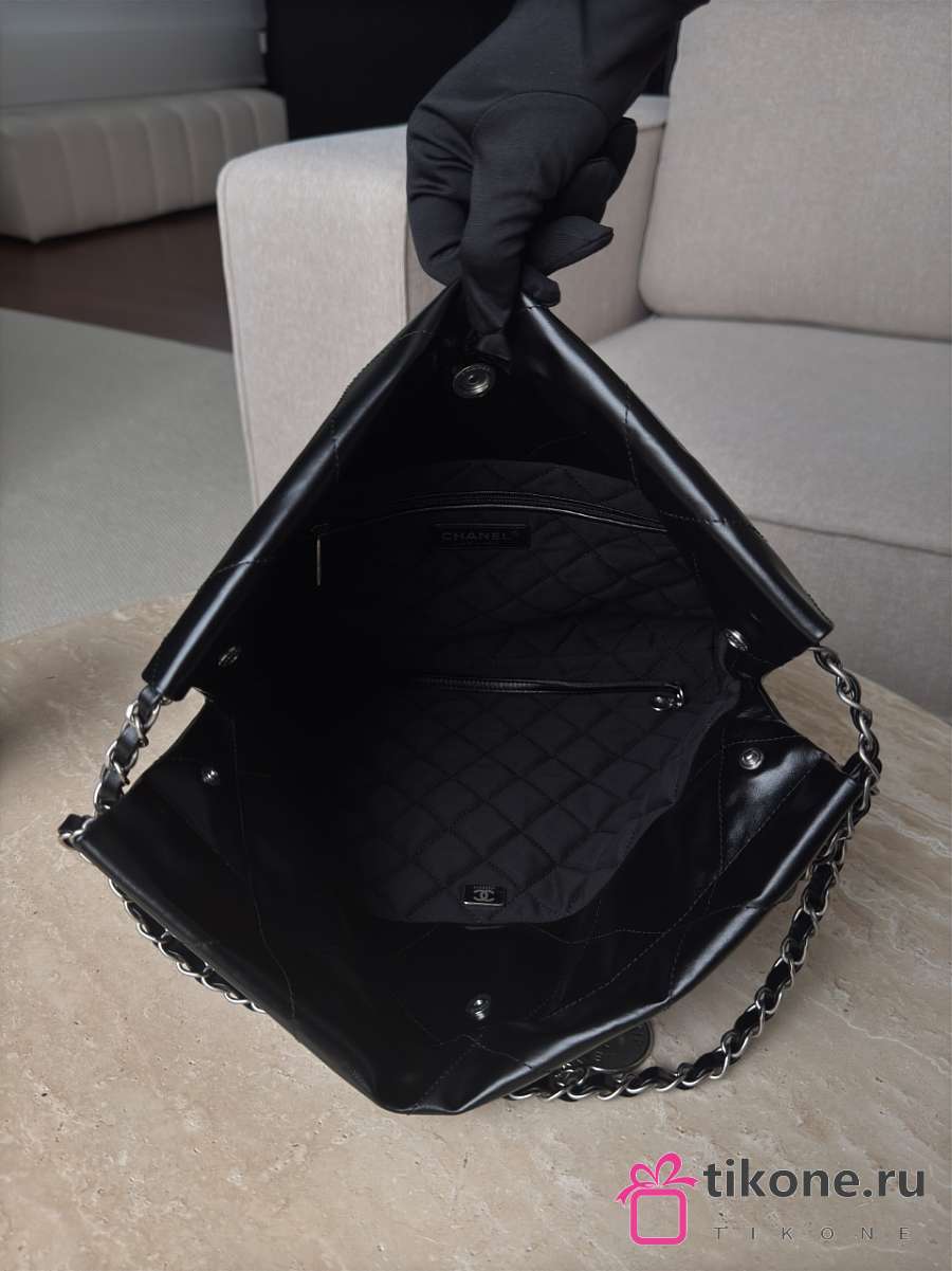 Chanel 22 Small Handbag Shiny Calfskin & Silver-Tone Metal Black - 37x35x7cm