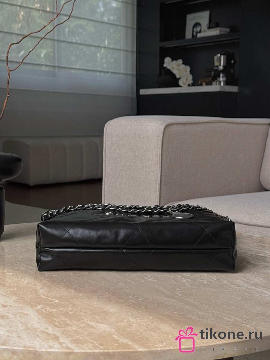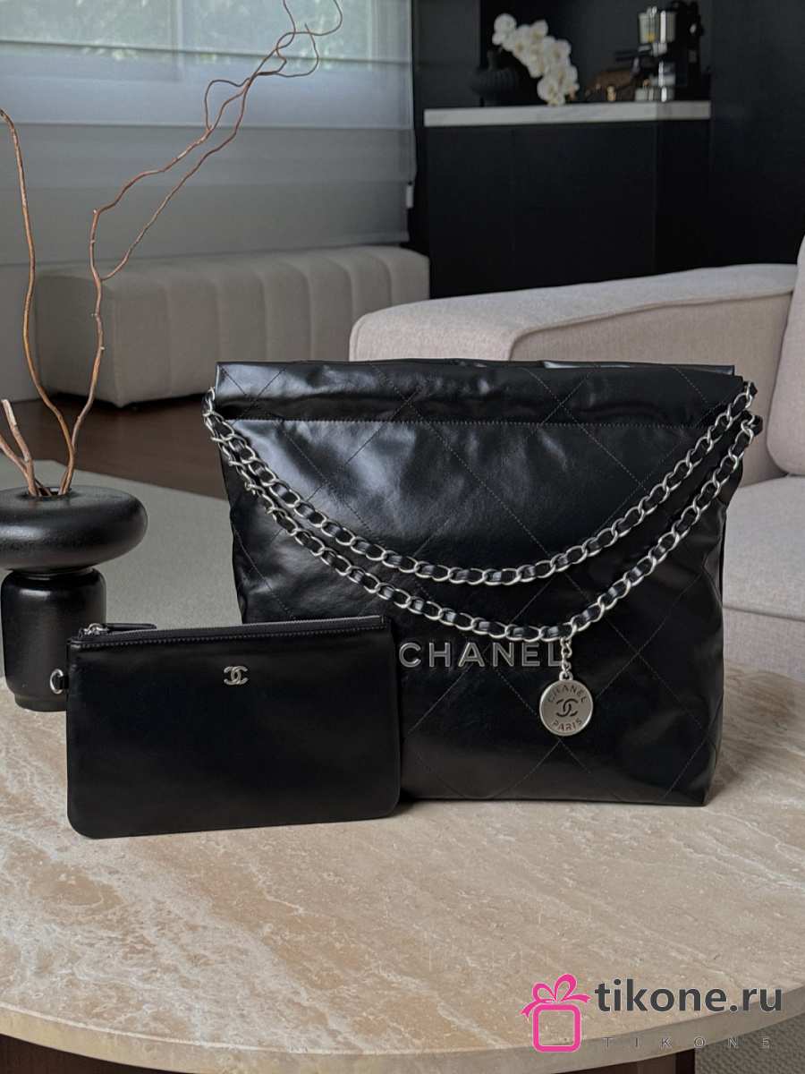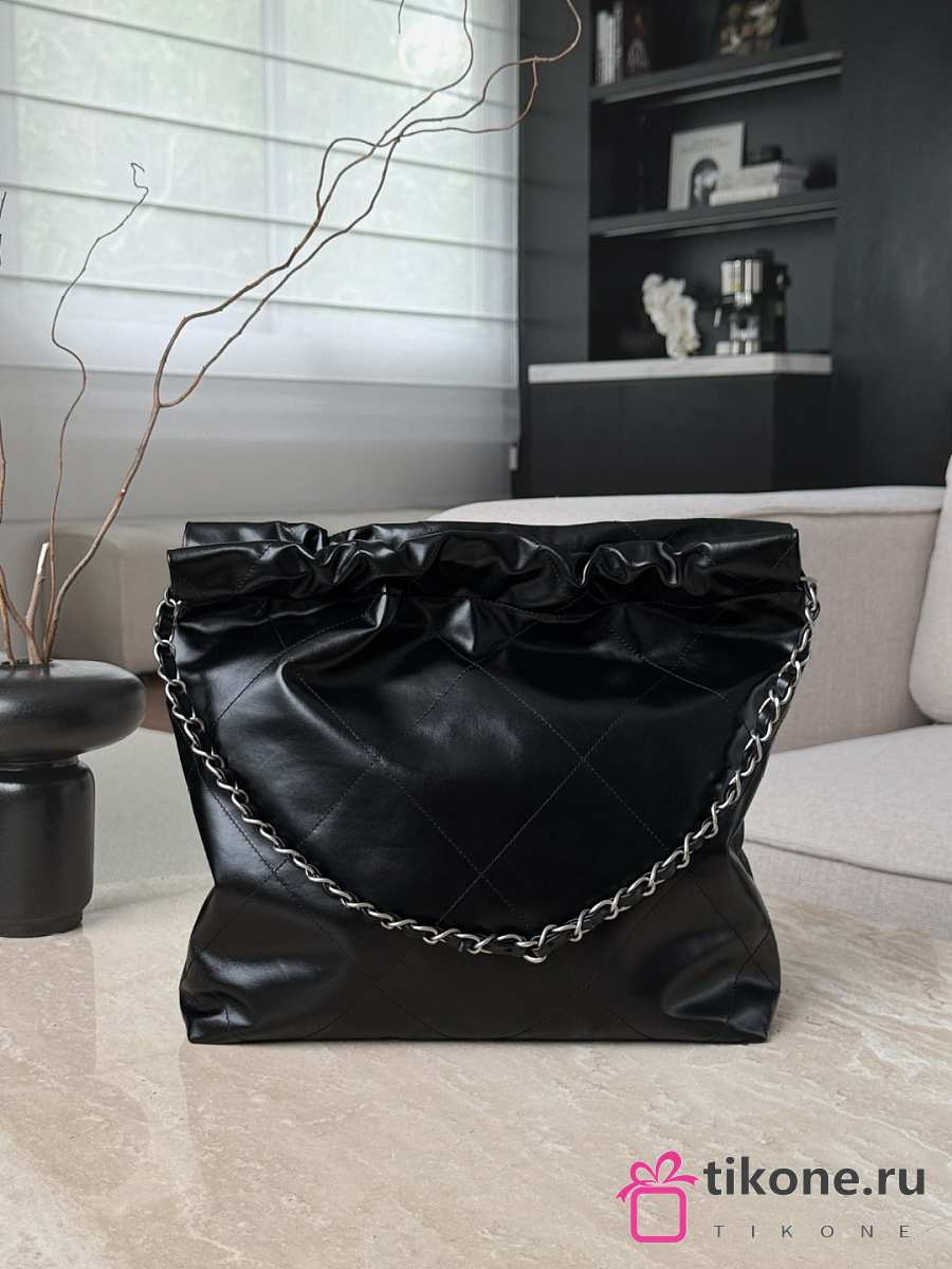 Chanel 22 Small Handbag Shiny Calfskin & Silver-Tone Metal Black - 37x35x7cm