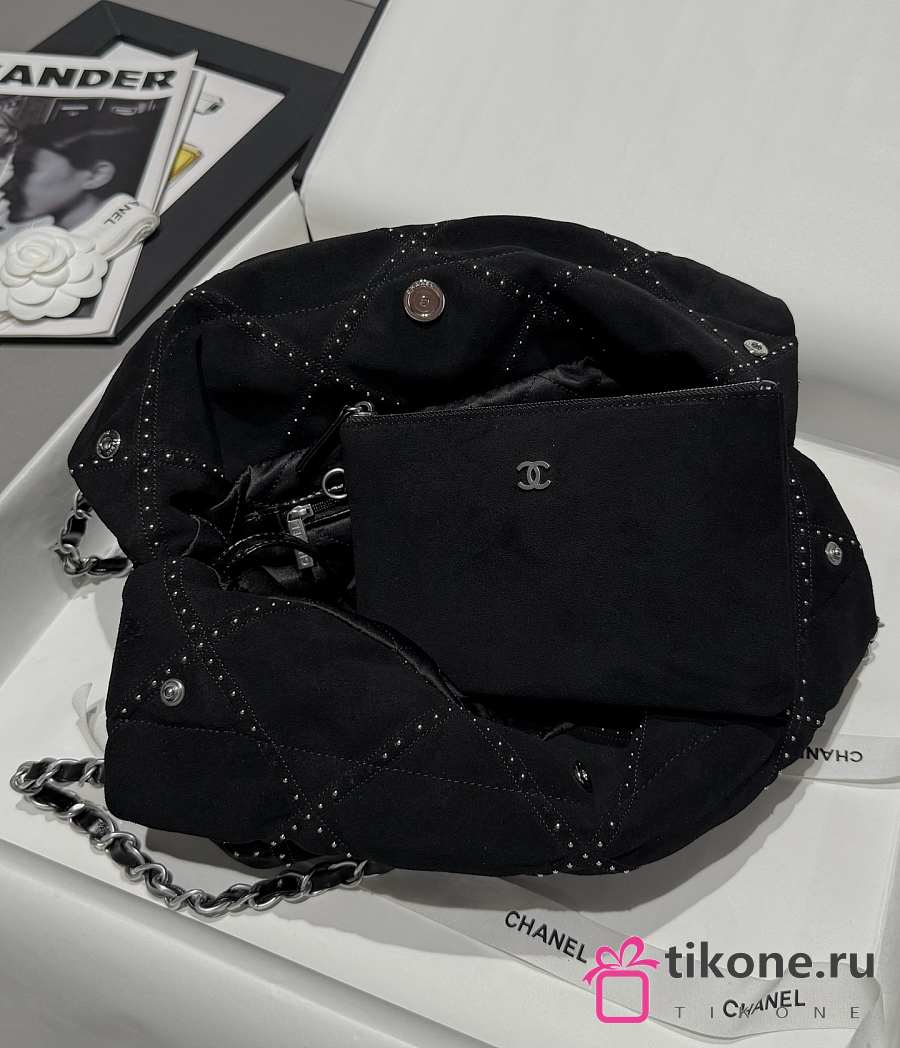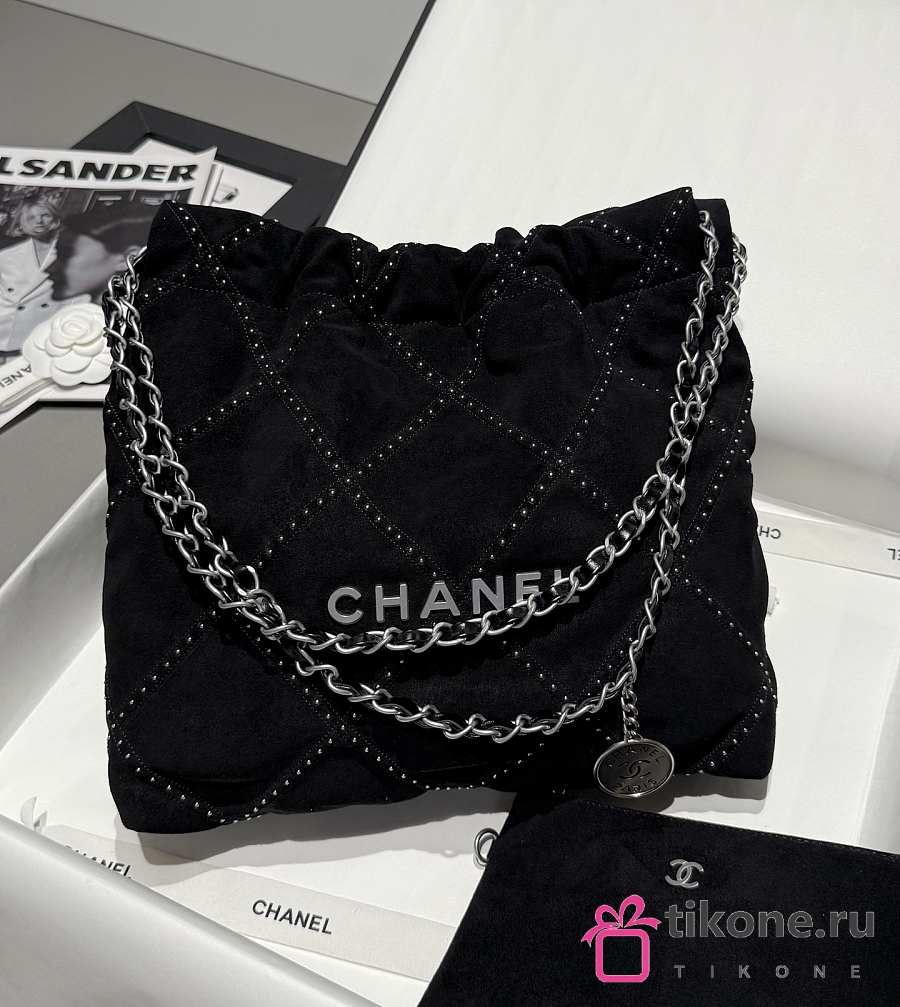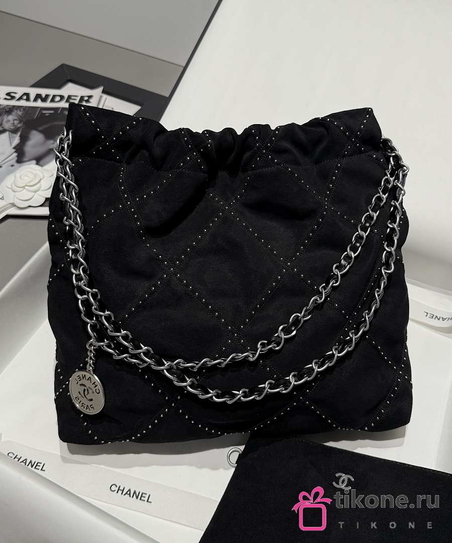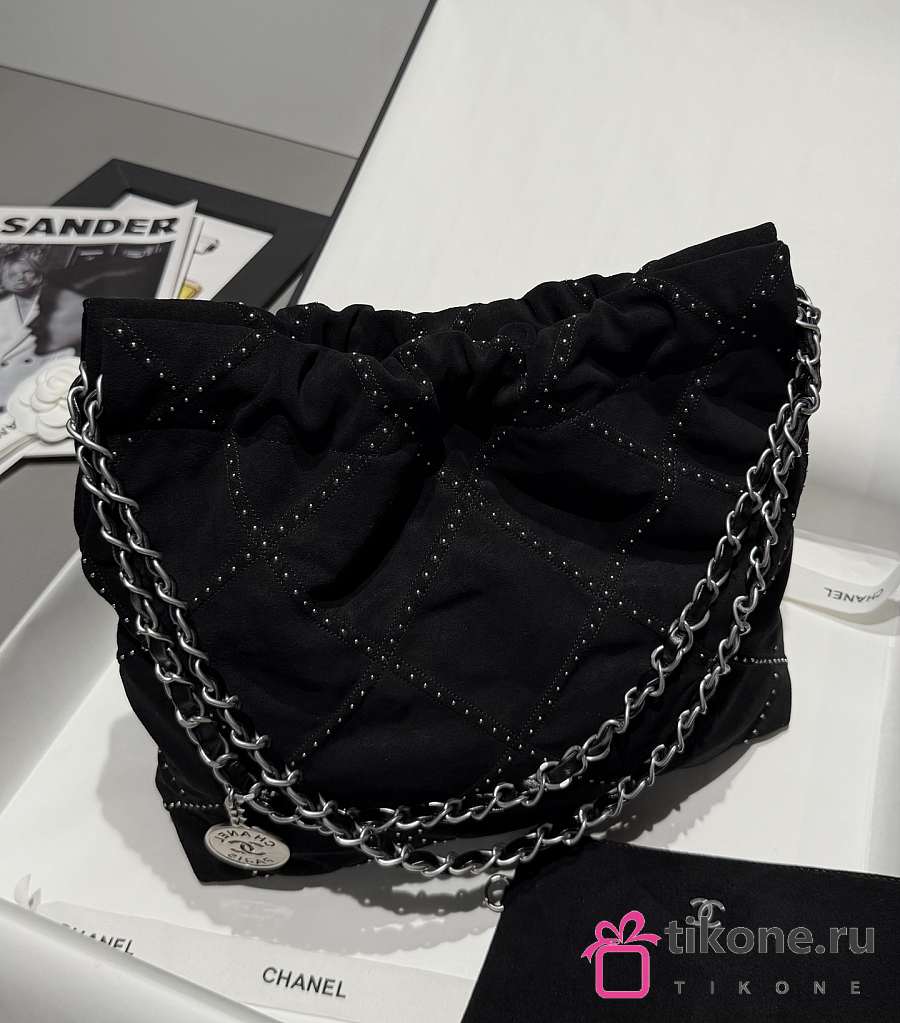 Chanel 22 Small Handbag Suede Calfskin Studs & Silver Tone Metal Black - 37x35x7cm