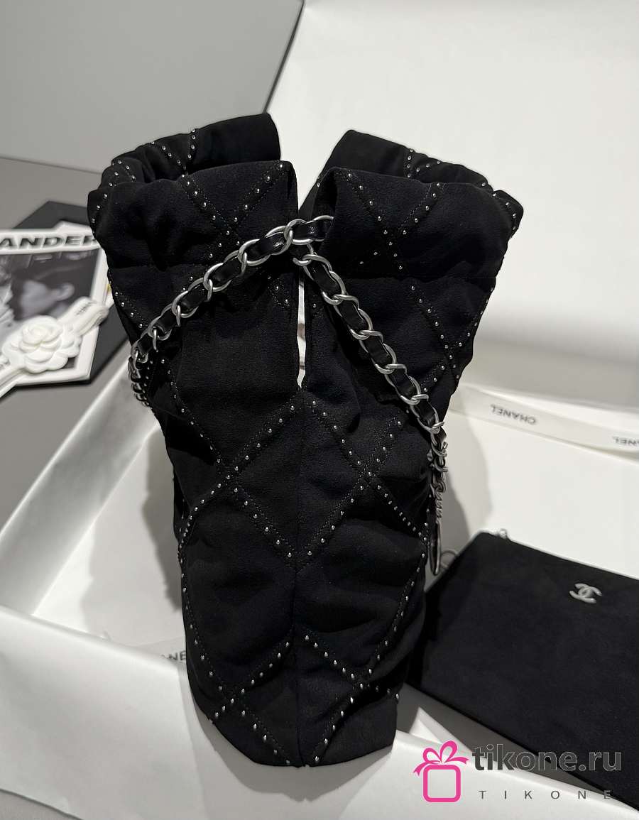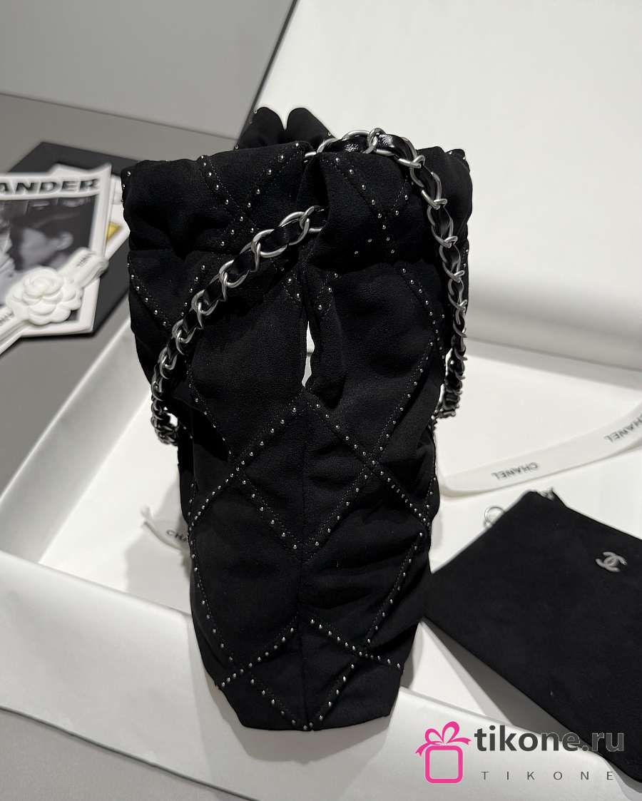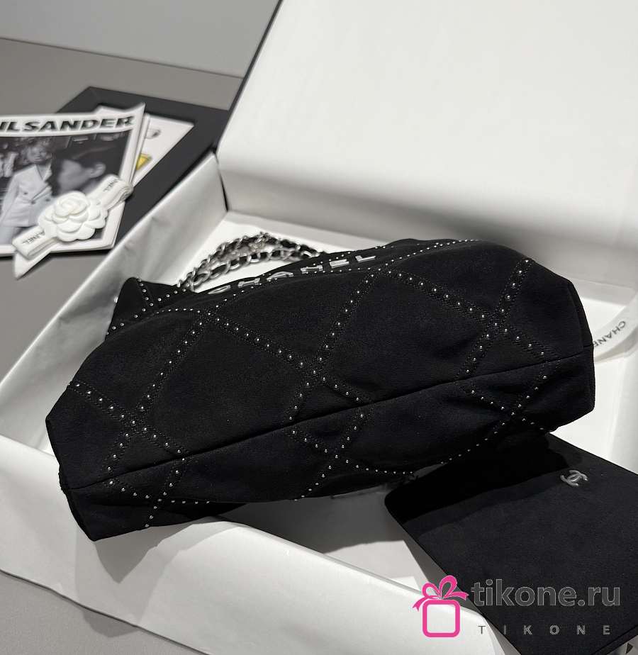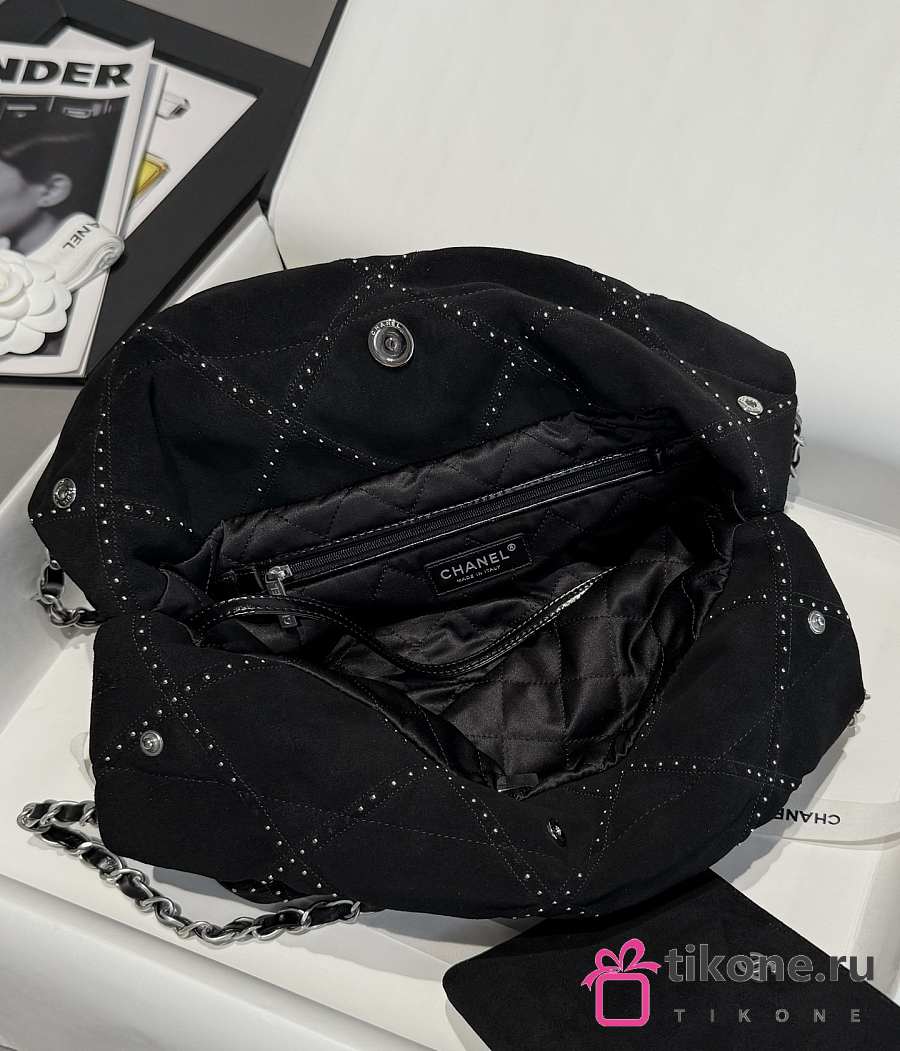 Chanel 22 Small Handbag Suede Calfskin Studs & Silver Tone Metal Black - 37x35x7cm