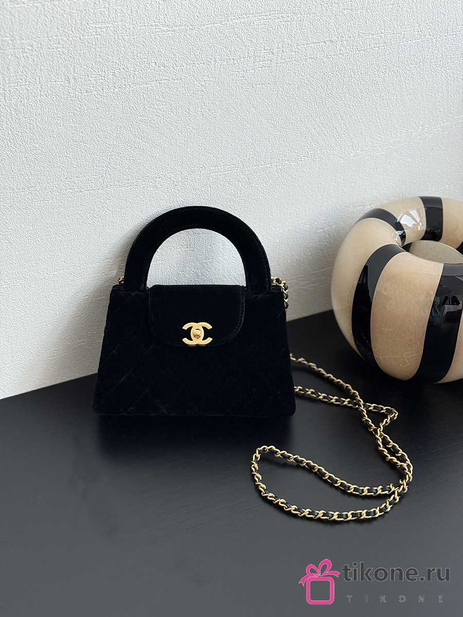 Chanel 23 Black Velvet Kelly Bag - 13x19x7cm