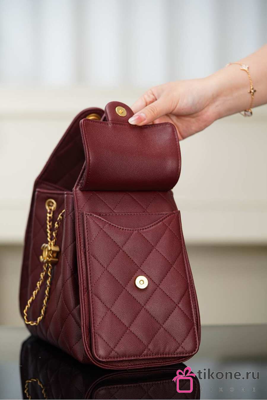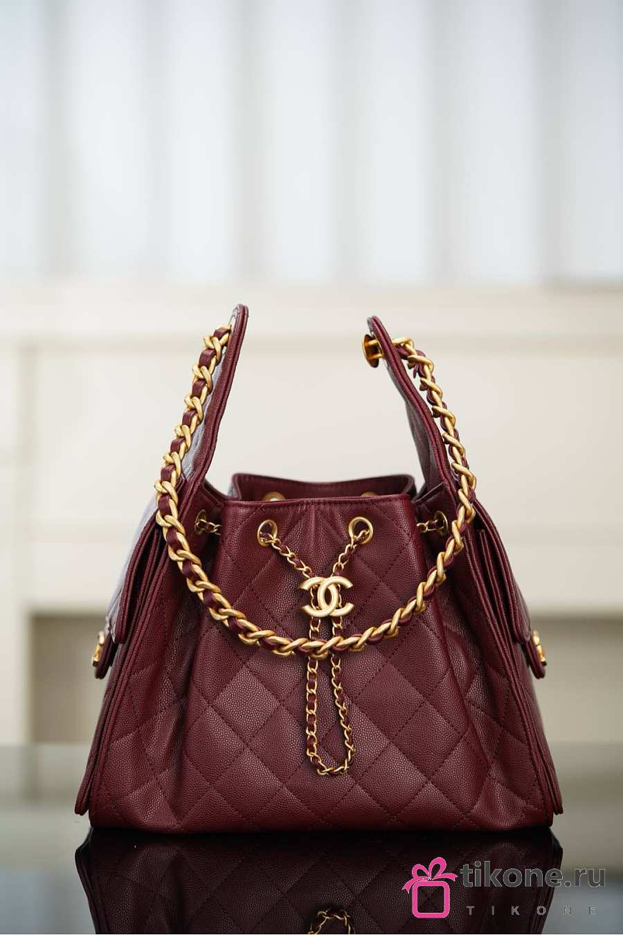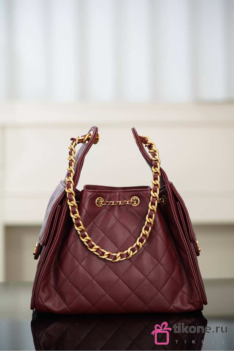 Chanel 25 Handbag Small Grained Calfskin Gold Tone Metal Burgundy - 30x26x14cm