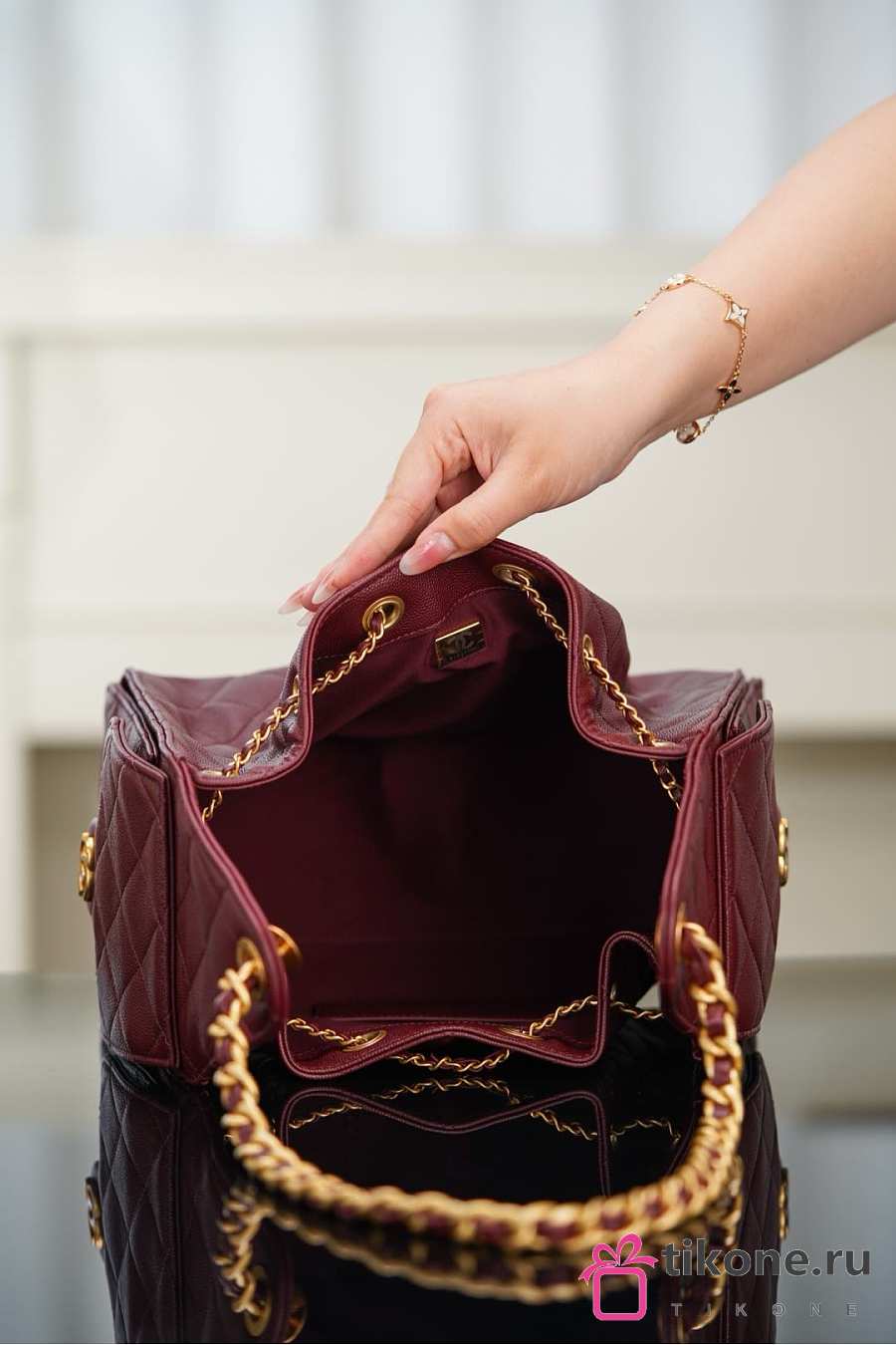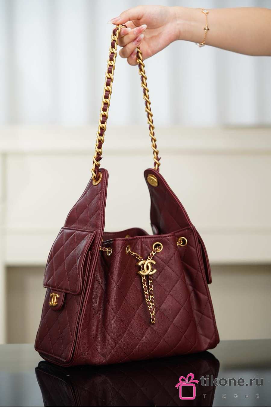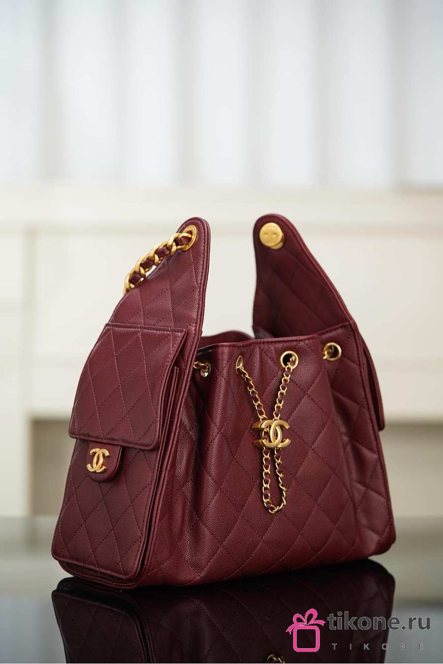 Chanel 25 Handbag Small Grained Calfskin Gold Tone Metal Burgundy - 30x26x14cm