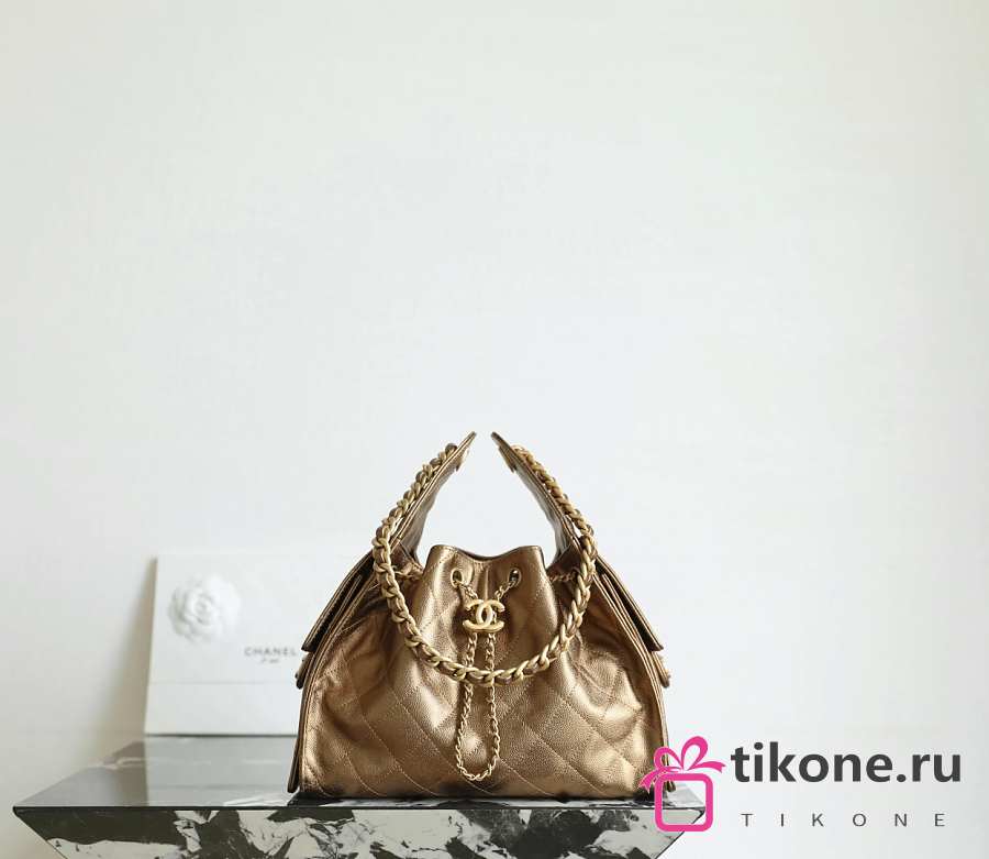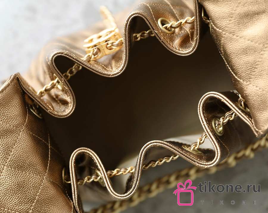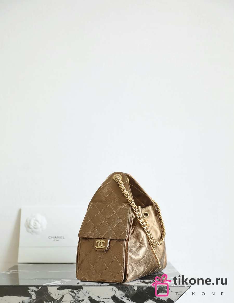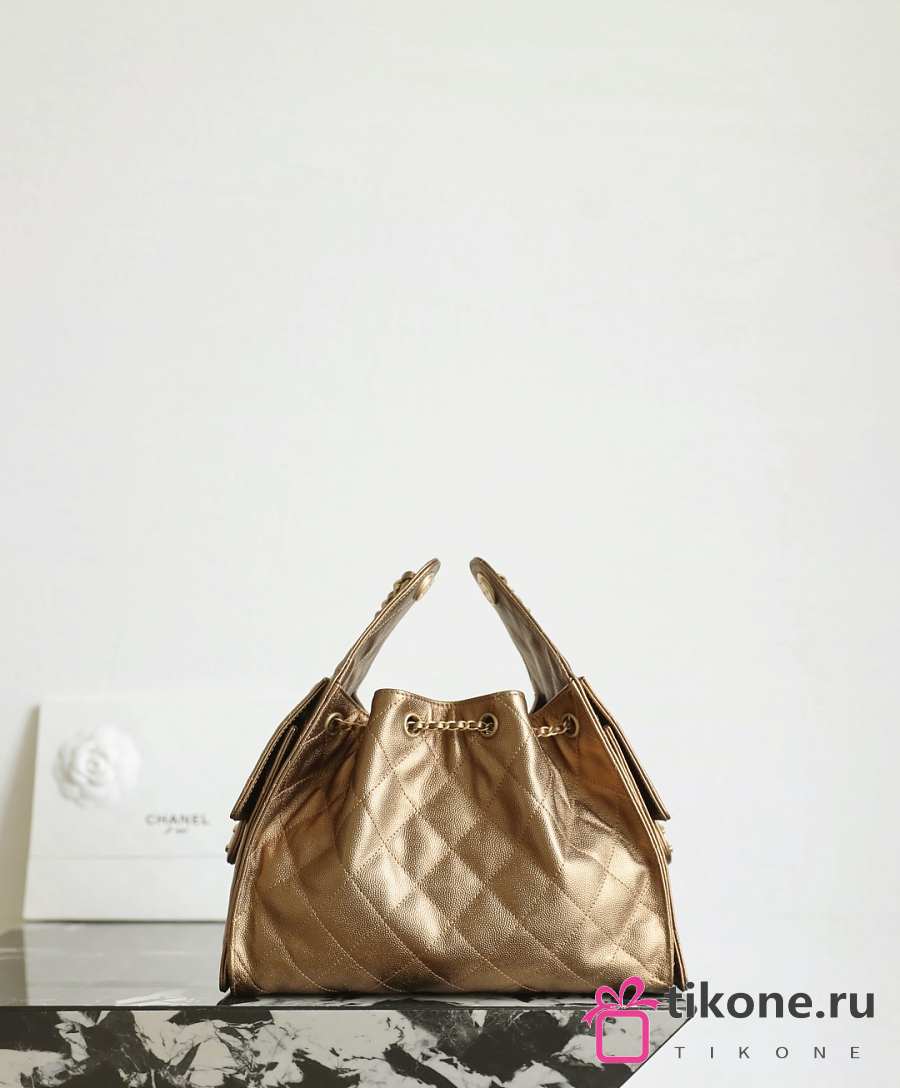 Chanel 25 Handbag Small Metallic Grained Calfskin & Gold Metal Dark Gold - 30x26x14cm