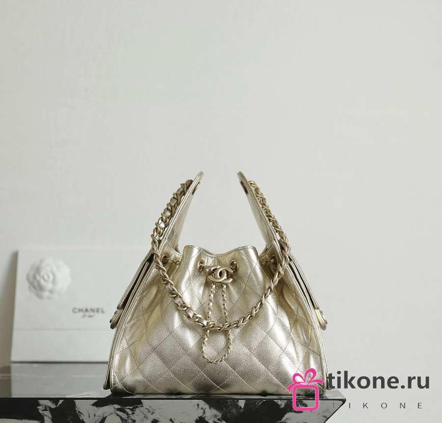 Chanel 25 Handbag Small Metallic Grained Calfskin & Gold Metal Light Gold - 30x26x14cm