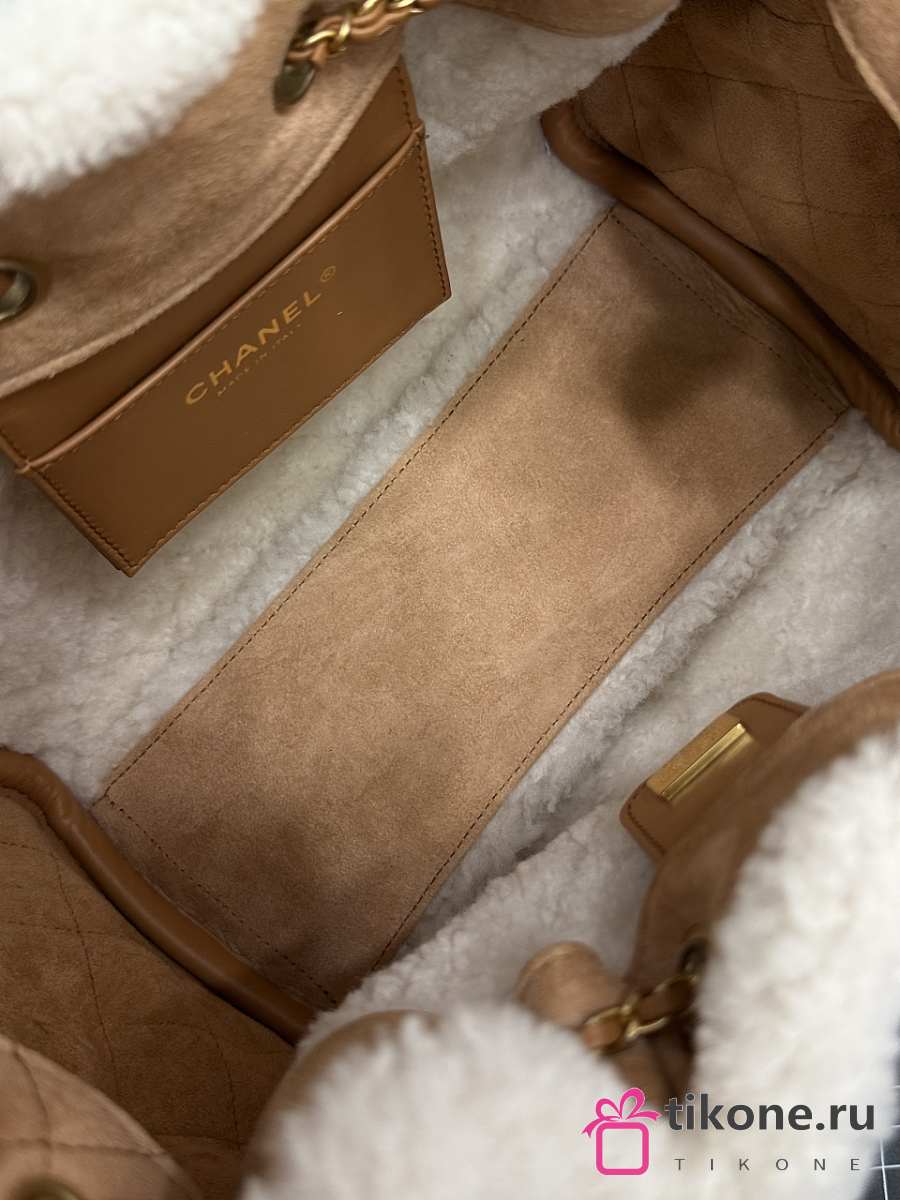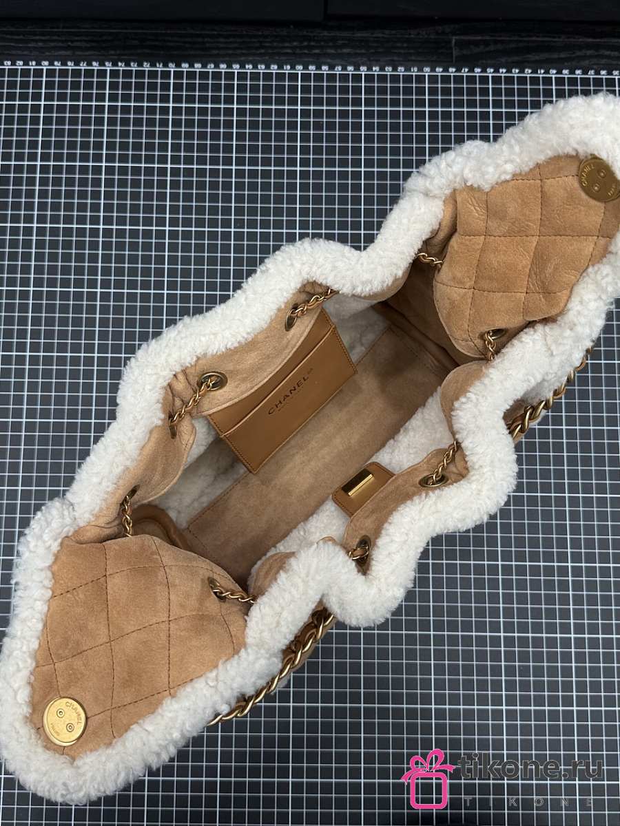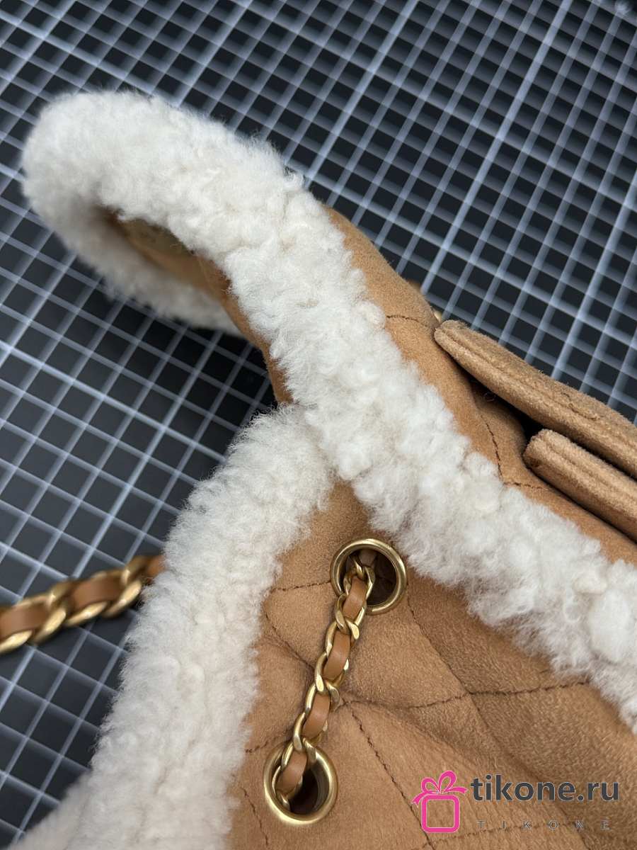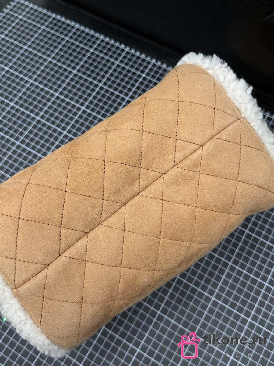 Chanel 25 Handbag Small Shearling Gold Metal Beige - 30x26x14cm