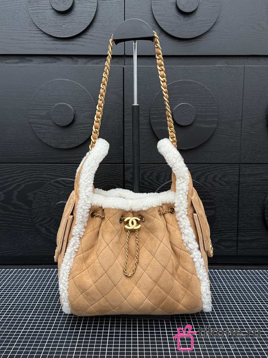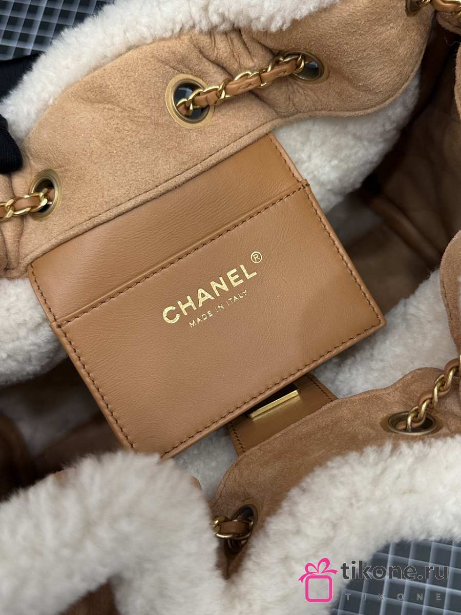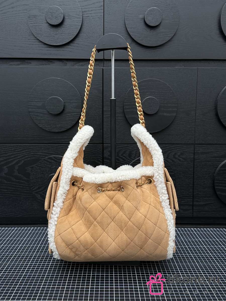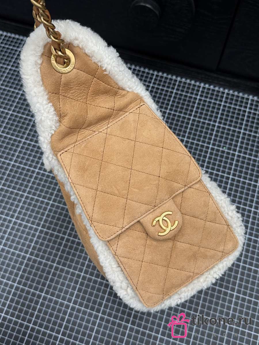 Chanel 25 Handbag Small Shearling Gold Metal Beige - 30x26x14cm