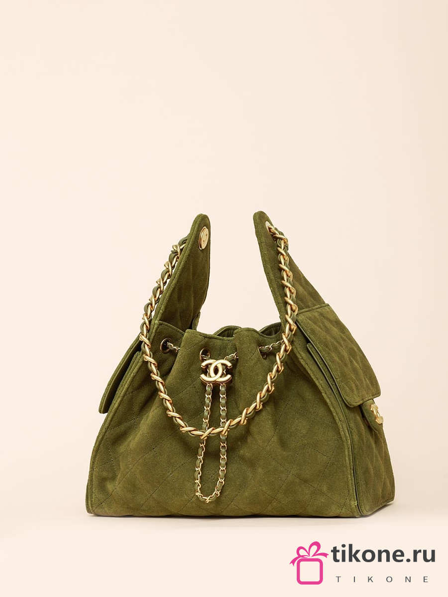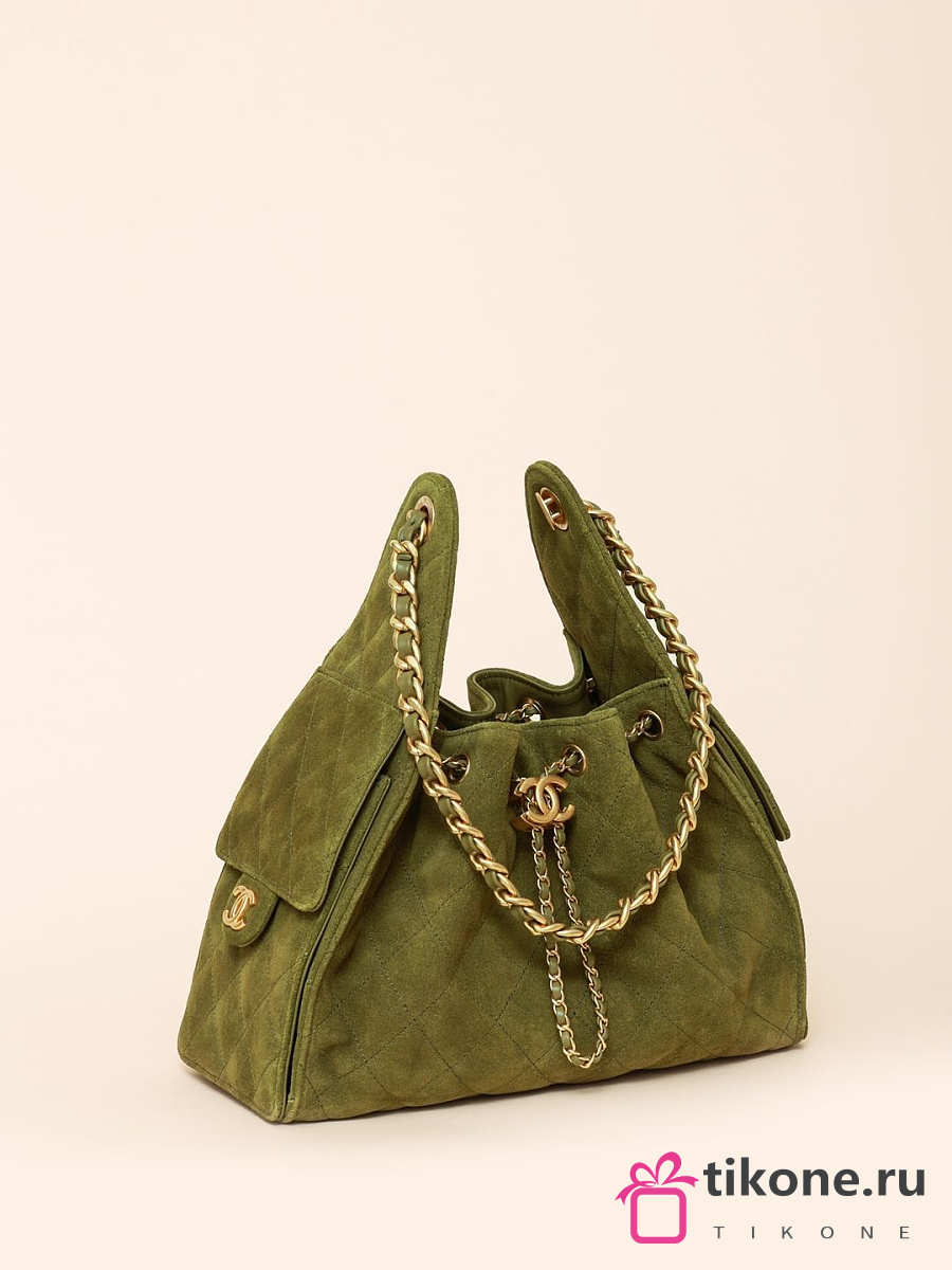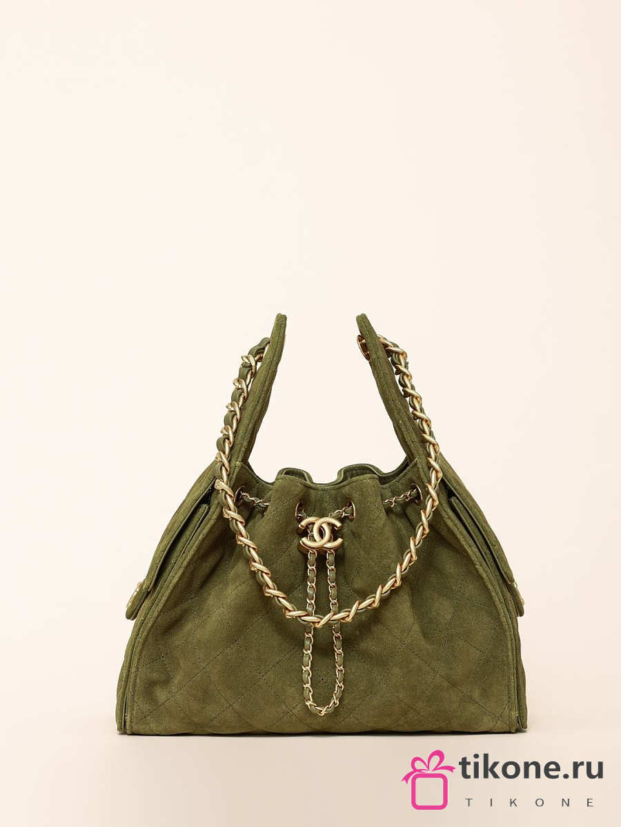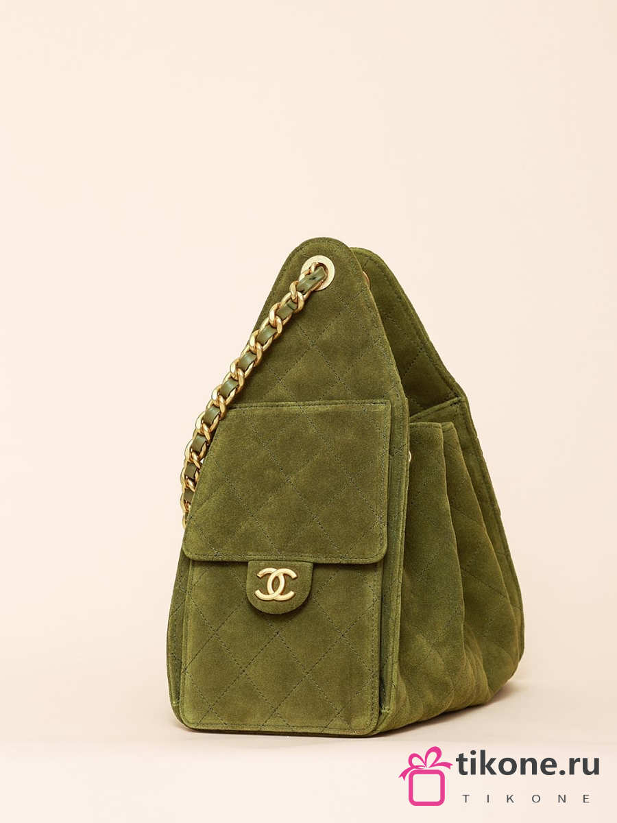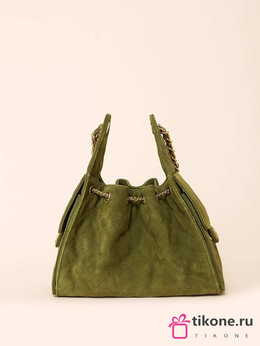 Chanel 25 Handbag Small Suede Calfskin & Gold Metal Green - 30x26x14cm